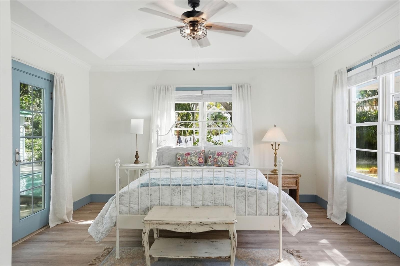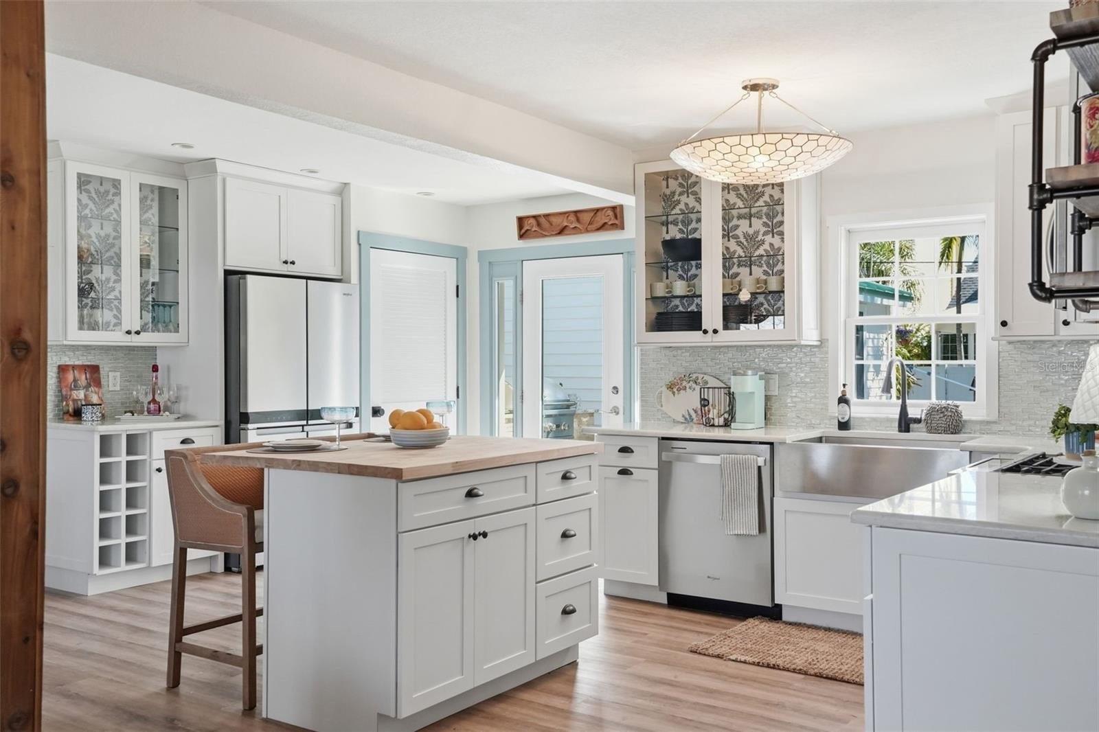 Live the ultimate beach lifestyle just three blocks from the white sands of Clearwater Beach, nestled in the delightful Old Florida atmosphere of North Beach. Charming and fabulously updated pool home boasting 1,869 sq.ft. with 3 bedrooms and 3 full baths, plus a guest cottage with kitchenette and 2-car garage on a premium home site! Whether you prefer biking along the shore, sunset walks on the beach, hopping on the trolley, or enjoying nearby dining and activities, this location offers it all or simply stay home and relax in your magnificent private oasis. Set on an oversized lot rarely found on North Clearwater Beach (a full lot and a half), this property features a recently transformed backyard designed for entertaining and relaxation. Enjoy expansive travertine-covered pool decking, an extended outdoor living area, a stone-built kitchen with a Coyote gas grill, fire pit, Zen-style outdoor shower, and thoughtfully designed landscape lighting that highlights the lush, private setting for your serene pool and hot tub… fully fenced for ultimate privacy! Adding incredible flexibility is a detached guest cottage/cabana complete with a kitchenette and full bathroom with walk-in shower—perfect for guests, a home office, fitness or yoga studio, or multigenerational living. The main residence has 3 bedrooms and 2 handsomely updated baths. The home showcases a modern coastal vibe with its brilliant updates and finishes. The primary suite features a lovely tray ceiling with crown molding accents, a sizable walk-in closet, a spa-like ensuite and enchanting French doors opening directly to the pool and backyard, creating seamless indoor-outdoor living. Light wood-look ceramic tile runs throughout the home. The kitchen shines with quartz countertops, shaker cabinetry with crown molding, designer glass tile backsplash and newer stainless-steel appliances. A dedicated dining area and the main living area are open to the kitchen. The gathering area showcases the striking architecture and features a mood setting fireplace. Additional features in this ADA compliant home include a gas tankless water heater, saltwater pool with Dolphin Nautilus cleaner, a durable sea-green metal roof, and a generator dedicated to the guest cottage for peace of mind during outages and a sizable laundry room with extended counter space and cabinetry. Completing the property is a detached two-car garage with an additional rear door—ideal for storing a boat, golf cart, and all your beach toys. This is a rare find offering space, privacy, and versatility in one of Clearwater Beach’s most desirable communities. Opportunities like this don’t come often… better hurry!