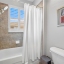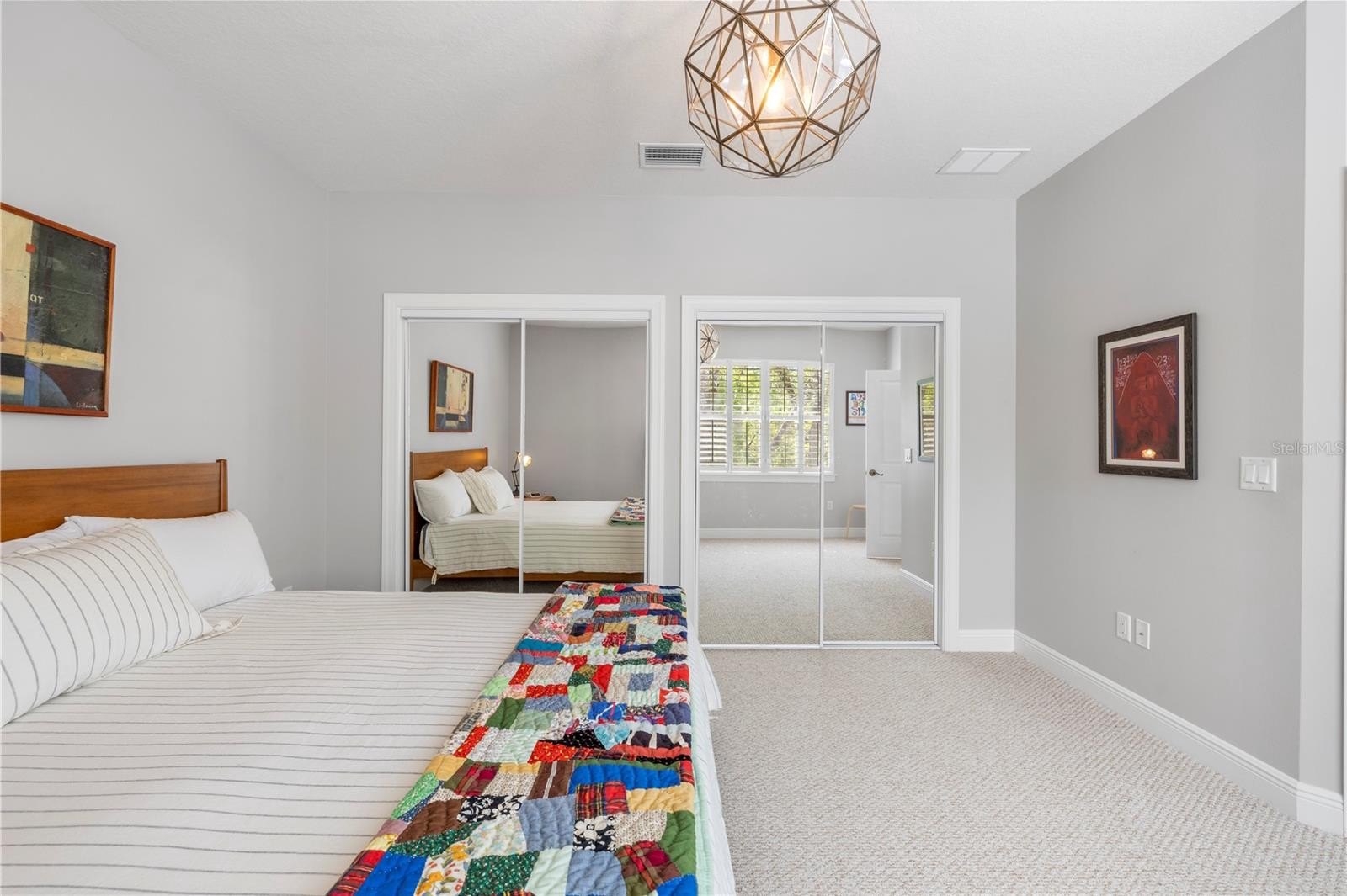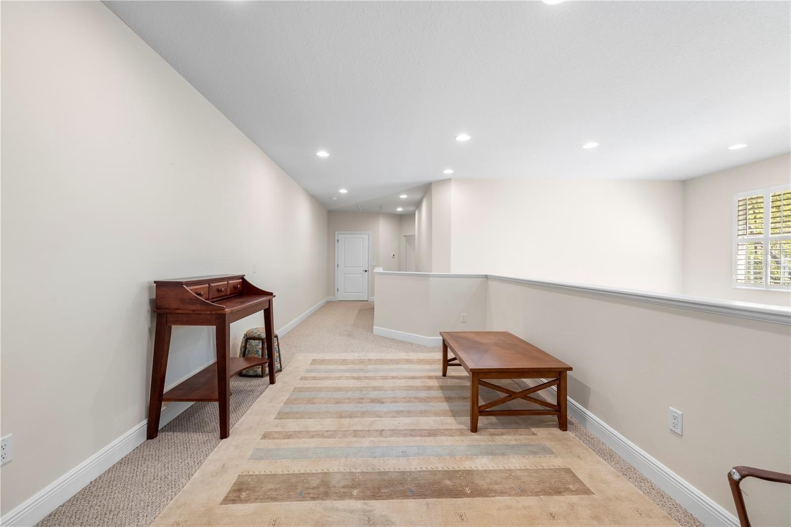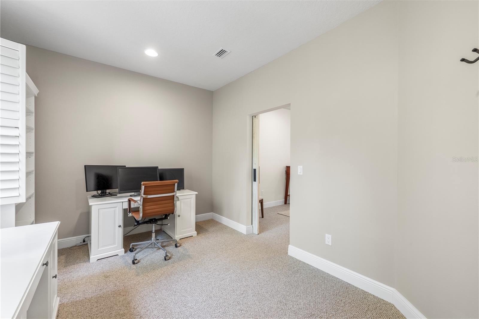 Upstairs, a versatile loft provides additional living space ideal for a media room, office, or flex area. Two additional bedrooms are notably spacious and provide excellent storage, including one with a walk-in closet and another with an extended closet configuration. Both bedrooms provide plenty of space for larger furniture arrangements. A thoughtfully designed shared bath features a separate vanity area and tub/shower combination. Decorative barn doors enhance the character of the flexible front room, perfect for a home office, library, den, or additional bedroom setup.