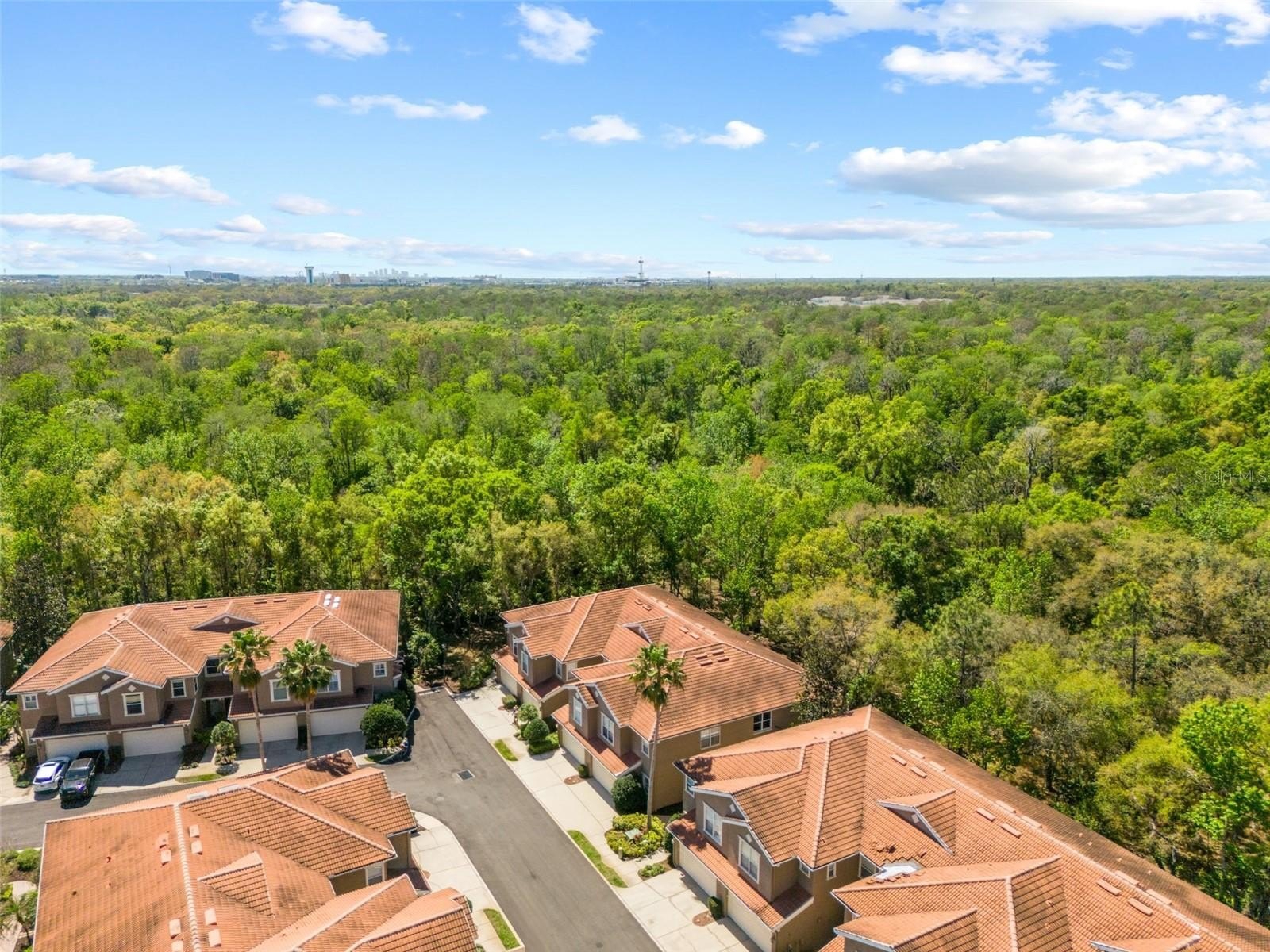 Welcome to this beautifully maintained 3-bedroom, 2.5-bath end-unit townhome with a 2-car garage, ideally located within the gated Palma Vista community of Tampa Palms. Positioned toward the rear of the neighborhood and backing to lush conservation, this home offers a rare combination of privacy, natural views, and exceptional outdoor living space.