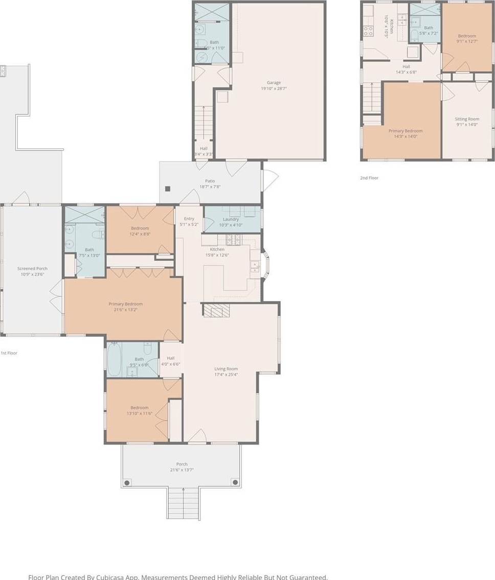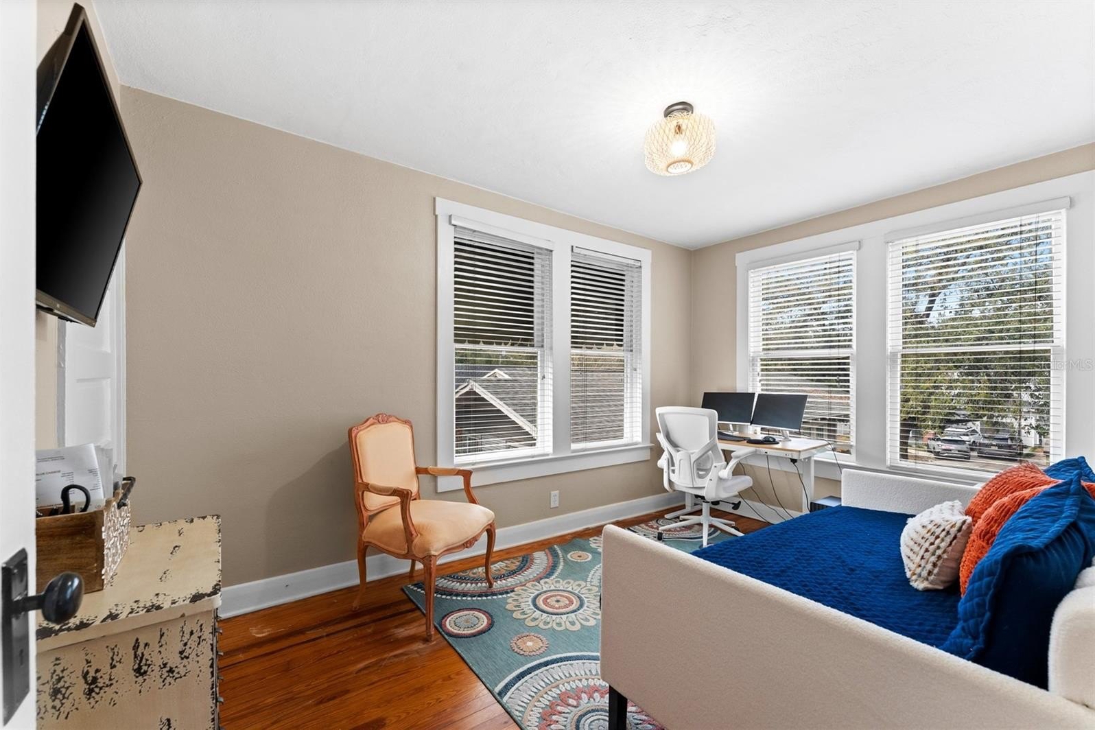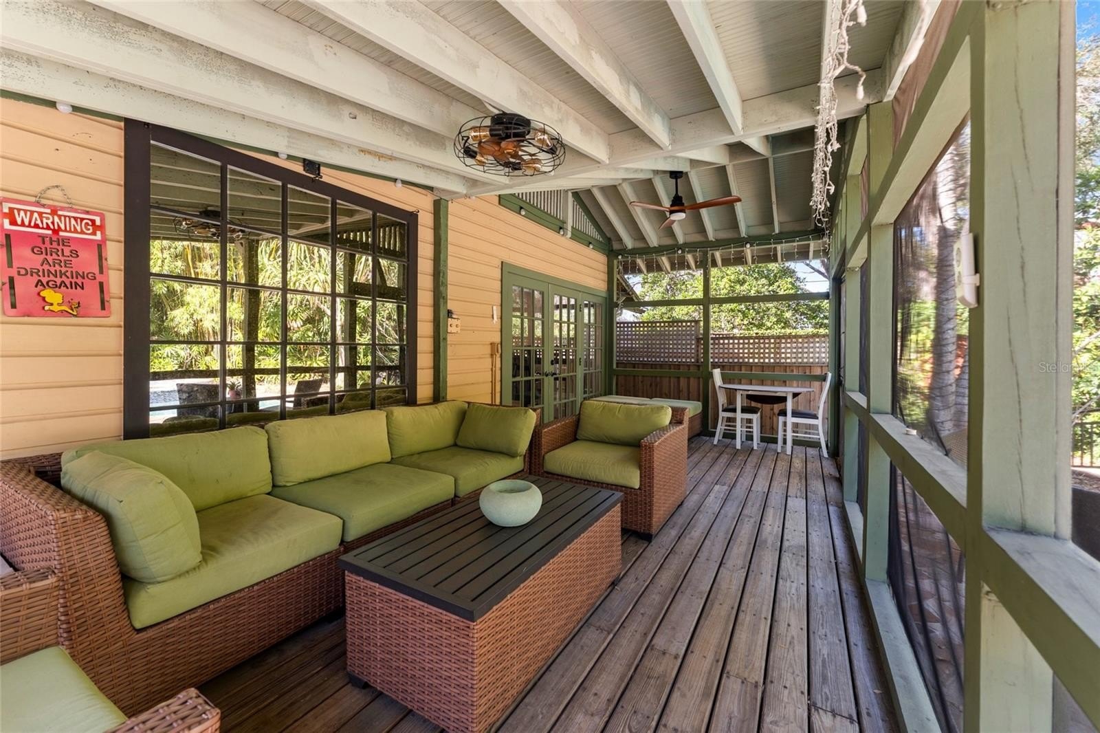 The layout offers two light-filled secondary bedrooms, a charming vintage-style guest bath, and a private primary suite complete with a cozy sitting area, access to a screened porch and garden, and a spa-like bath with dual vanities and a steam shower.