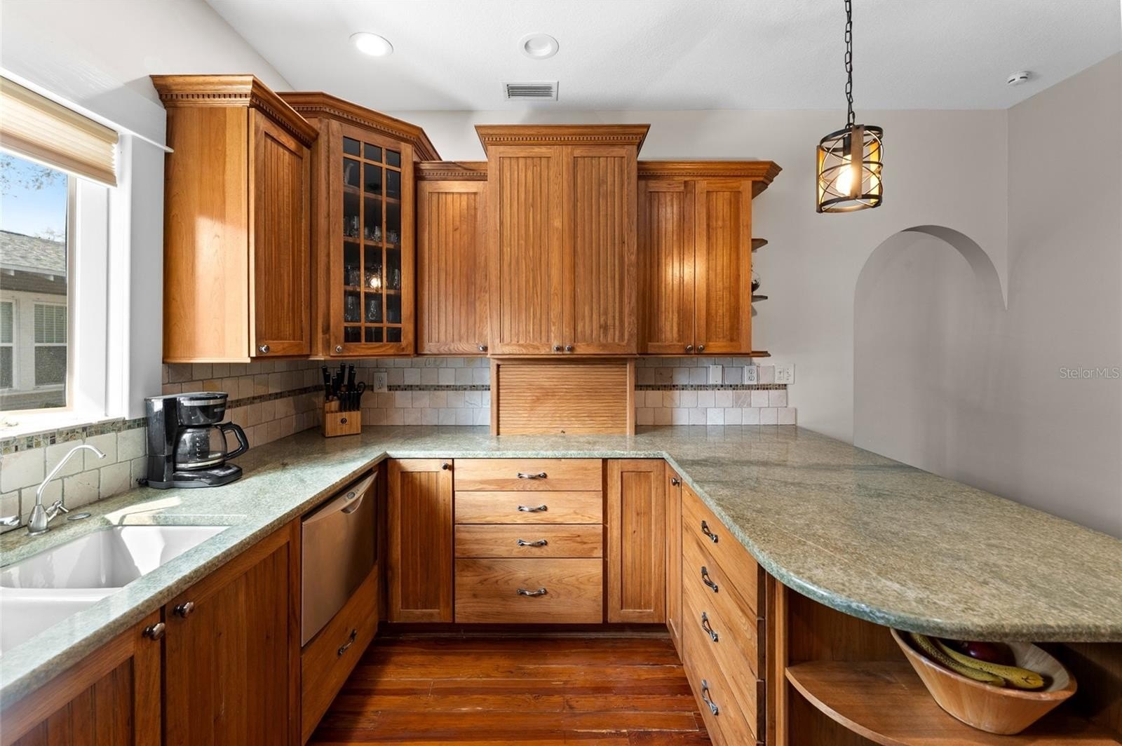 From the moment you step onto the classic front porch and enter inside, the home’s authenticity shines through. Original details like rich restored hardwood floors, wood-paneled doors, glass and brass hardware, and detailed trim create a timeless foundation, while carefully selected updates keep everything feeling fresh and functional. The kitchen is both beautiful and practical, featuring warm wood cabinetry with beadboard accents, stone countertops, stainless steel appliances, and a standout gas range with double dishwashers—perfectly blending style with everyday usability.