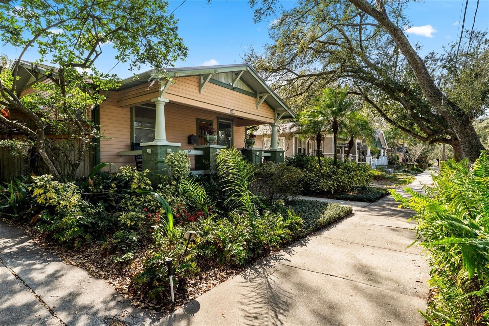 This is easily one of the most captivating and unique homes you’ll find in Tampa—full of character, warmth, and thoughtful detail at every turn. Set on an elevated double lot in the heart of Seminole Heights, this 1920s Craftsman bungalow sits along a charming, tree-lined street with wide sidewalks and a welcoming neighborhood feel. Located in historic Evelyn City, the setting is as special as the home itself, with FOUR tucked-away riverfront parks just a short stroll or bike ride from your front door.