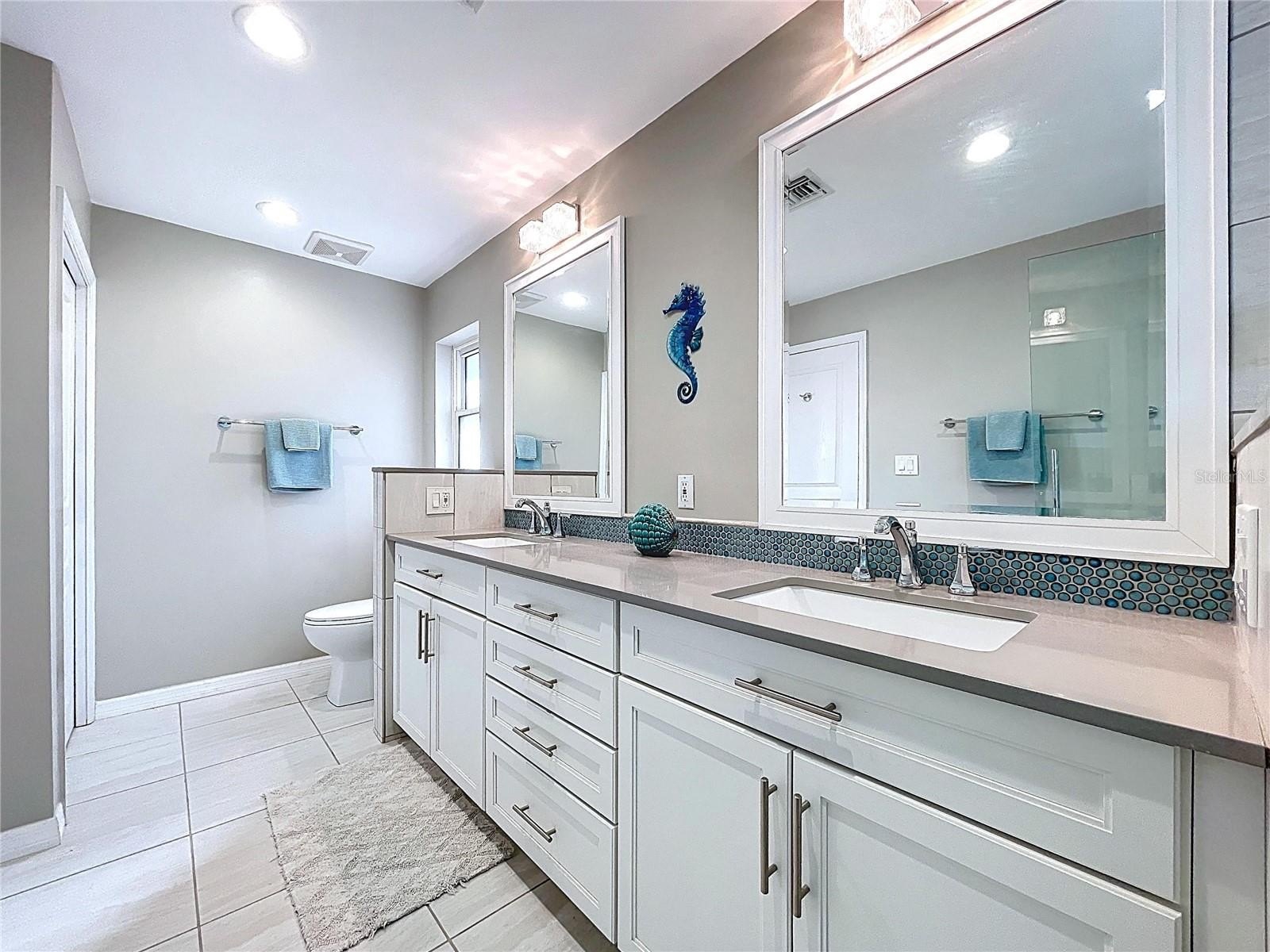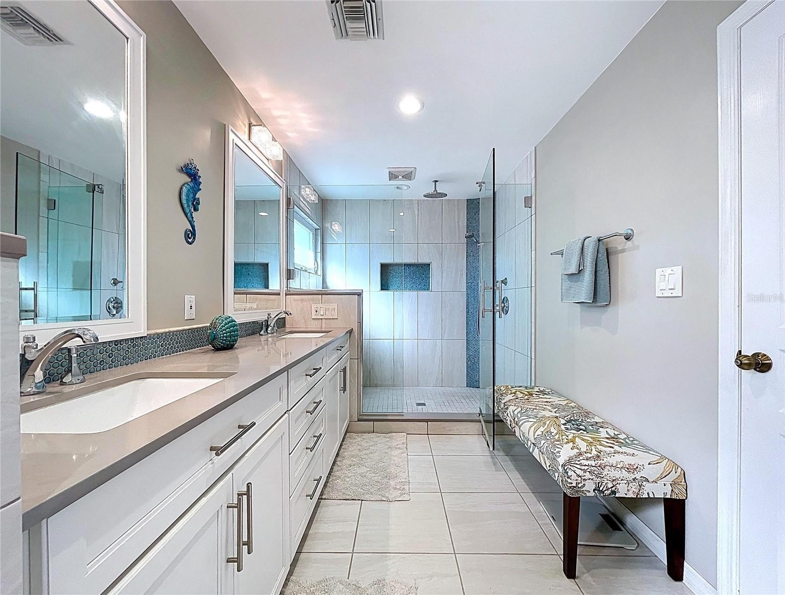 The waterfront outdoor space is truly special, featuring a 16x32 gas-heated pool and spa, a beautifully landscaped yard, and a 45-foot dock with water and electric offering excellent fishing and immediate boating access to both the Gulf and Intracoastal Waterway. A unique stairway leads down to a sandy private beach along the waterway during lower tides, adding to the property’s charm.