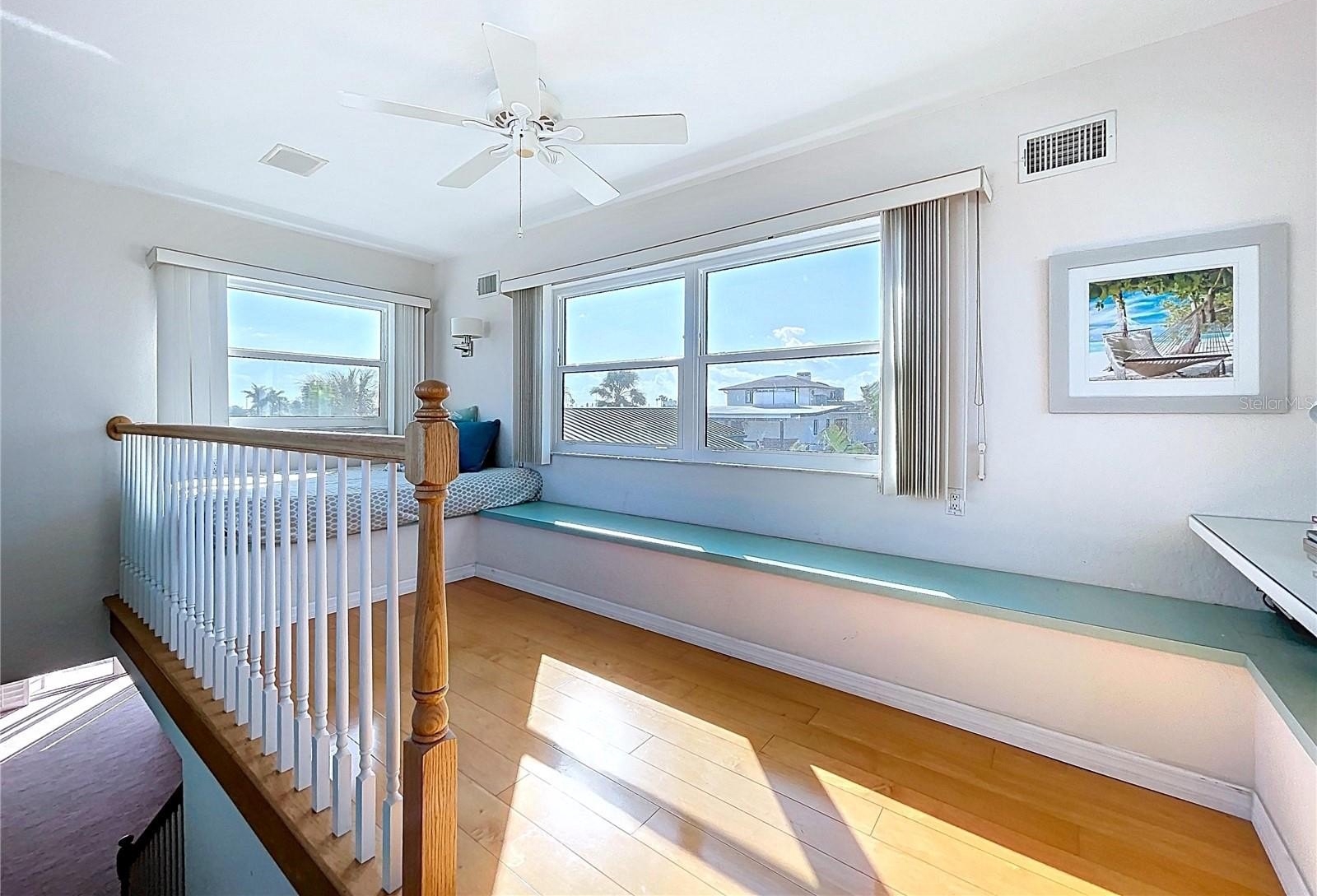 Upstairs, the primary suite enjoys stunning water views from a private balcony and includes a generous walk-in closet and additional flex space ideal for a desk or reading area.