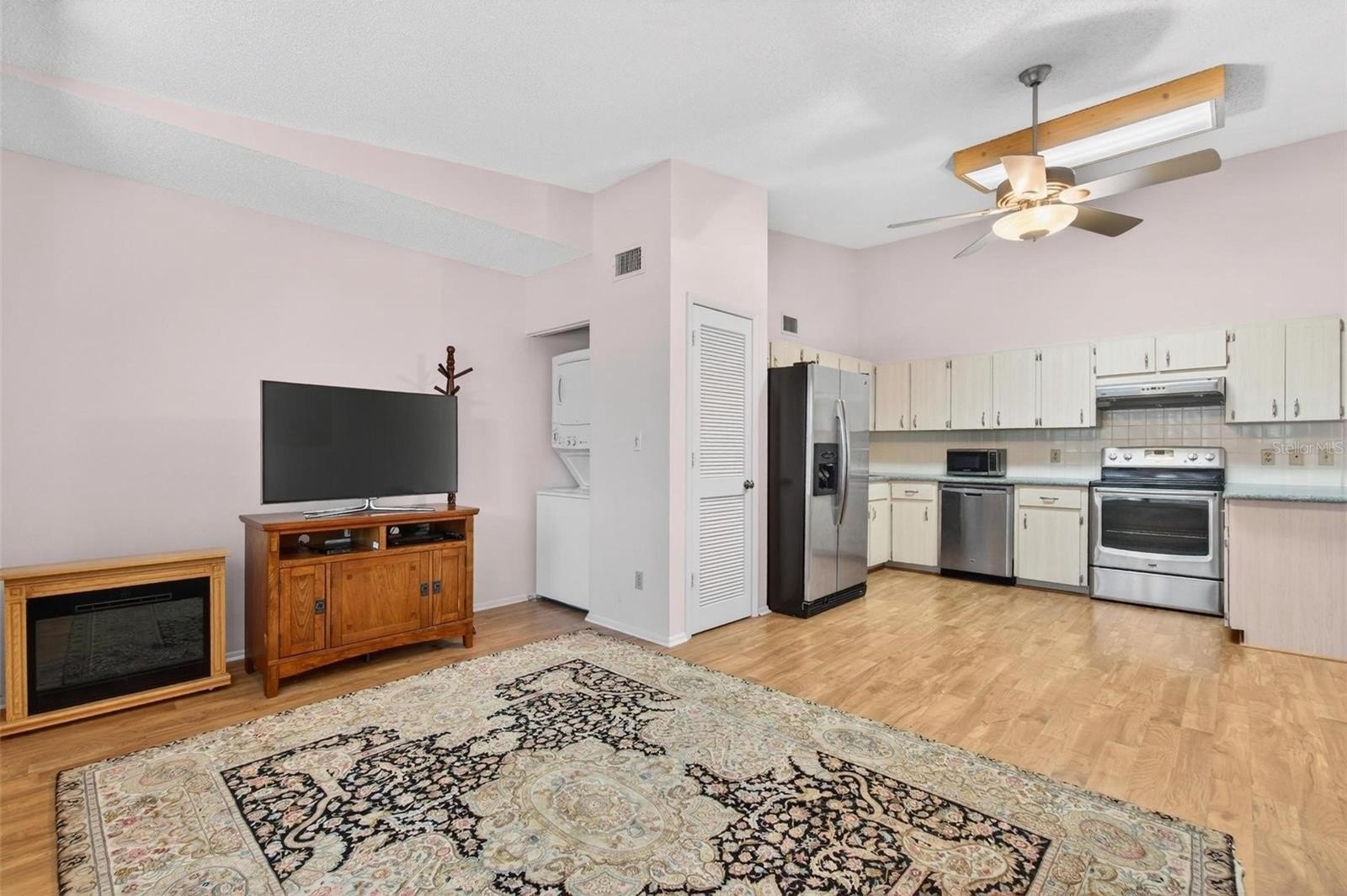 Discover this Well-Maintained home Located on the desirable West Side of On Top of the World - Clearwater's 55+ Premier Golf Community Step into this 2nd-floor condo that features soaring cathedral ceilings that enhance the spacious feel of the open kitchen and gathering-room concept—perfect for everyday living and entertaining. The 2-bedroom, 2-bath layout includes easy-care laminate flooring, an in-unit washer and dryer, and a solid foundation ready for your personal touches. Just steps from an aerated pond and Harbor Lake, the setting offers a peaceful backdrop for morning walks and sunset views. An elevator in the building adds convenience, making this a comfortable and accessible home in a vibrant 55+ community. Experience this vibrant, amenity-rich lifestyle the community is known for. This building's central features include an elevator, additional washers and dryers, and secure storage for owners. Community & Location Living in this gated community provides access to extensive resort-style amenities, many of which are included in your monthly fees: Free Golf: Resident owners enjoy access to two private golf courses (9 and 18 holes) at no extra cost. Active Lifestyle: The nearby East Activity Center features a fitness center, heated swimming pools, tennis and pickleball courts, and over 175 social clubs. Prime Convenience: The building is close to the East Activity Center for easy access. On-site services include a cafe, dog park, woodworking shop, and even free shuttle bus service to major shopping malls and grocery stores. Central Location: Just minutes from the award-winning Clearwater Beach, top-tier dining, and healthcare facilities. Experience maintenance-free 2026 living in one of Florida's