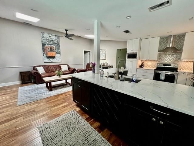 This move-in ready beautifully updated 4-bedroom, 2-bath home features an open floor plan with wood flooring throughout and a bright, inviting family room enhanced by skylights. The Front double entry doors lead into a spacious L-shaped living and dining area, ideal for both everyday living and entertaining.