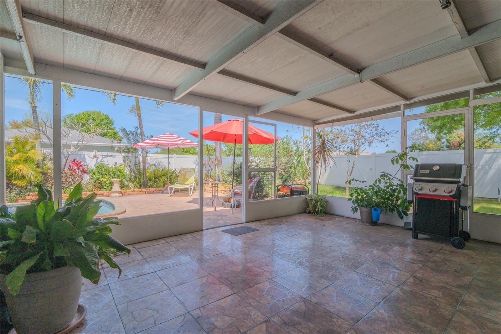 Gorgeously landscaped, corner lot residence with 1 car garage and beautiful in ground swimming pool. This 2 bed PLUS large den home with terrazzo floors throughout has an updated kitchen with granite counters, huge counter bar for casual dining and stainless steel appliances. Updated hurricane rated windows and garage door for your comfort and security. Full bath with tub off the bedrooms and an additional toilet/shower and separate sink next to laundry area in garage. Enjoy the mature landscaping and beautiful flowering plants as you stroll through the numerous pathways and trails of this property. In addition to the large pool, the backyard also features a fish pond with more than 20 goldfish. Irrigation system with a well for easy watering of all the yard and plants. Fantastic location in beautiful neighborhood convenient to beach(15 minutes), Gulfport, DTSP and Mazzarro's Italian Market