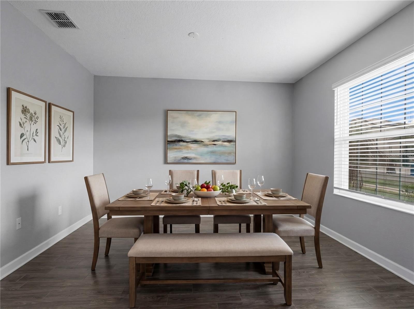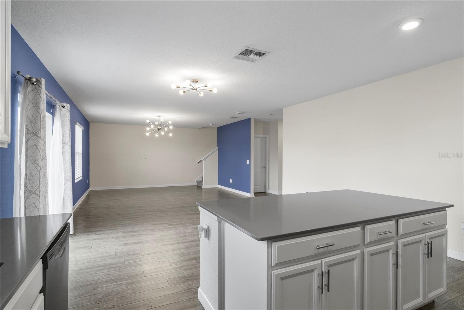 Step inside to a bright open floor plan where the kitchen, dining, and family room flow seamlessly together—ideal for everyday living and hosting gatherings. The modern kitchen features quartz countertops, slate appliances, and a large center island, perfect for meal prep, casual dining, or entertaining guests. A versatile flex room on the main floor can easily serve as a home office, study, playroom, or additional living space.
