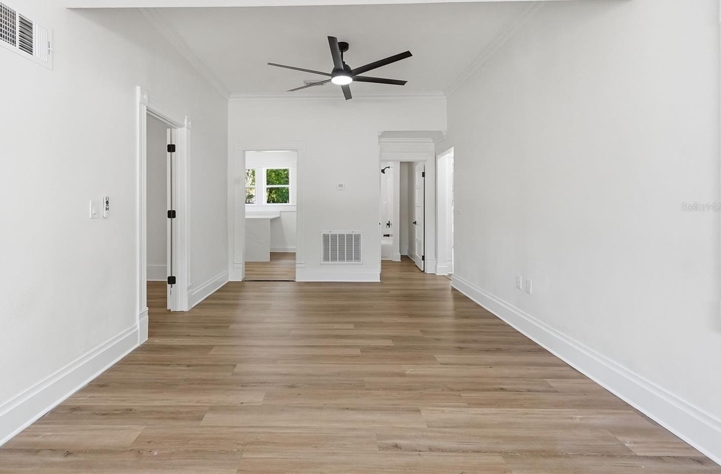 Fully renovated and move-in ready, this beautifully updated home offers modern finishes and functional living throughout. The property has undergone a complete renovation, featuring new vinyl flooring, fresh interior paint, updated lighting, and new ceiling fans throughout. Additional interior details include crown molding around the windows and wide baseboards, enhancing the overall finish.
