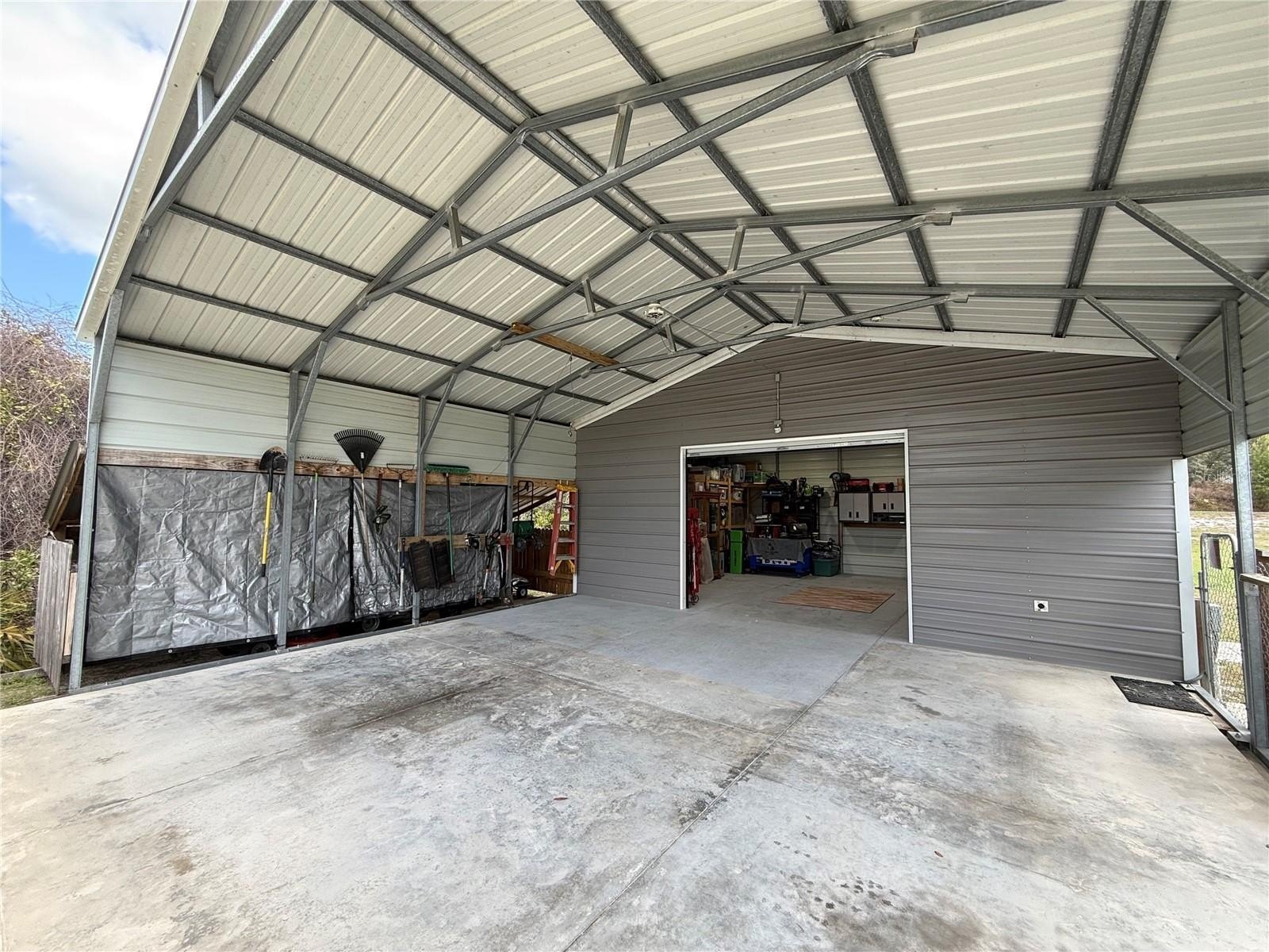 3 Bedroom, 2 Bath Home on over an Acre in a quiet cul-de-sac Built in 2021, this beautifully maintained home offers modern living on a spacious 1+ acre lot, perfectly situated in a peaceful cul-de-sac. The property includes an impressive, detached metal building with a two car carport, ideal for storing vehicles, equipment, or creating the ultimate workshop space. Step inside to an inviting open-concept living and dining area featuring neutral tones, abundant natural light, and stylish tray ceilings. The eat in kitchen offers a cozy dining nook with bay windows, white cabinetry, granite countertops, and plenty of workspace. The split-bedroom floorplan provides privacy, with the primary suite tucked away from the additional bedrooms. The spacious primary suite includes an oversized walk in closet and a master bath with dual sinks and a walk in shower. Enjoy outdoor living year round in the enclosed screened porch, perfect for relaxing or entertaining while overlooking the fully fenced backyard. A custom fire pit area adds even more charm and functionality for gatherings. Royal Trails Subdivision allows 2 horses an acre and deeded access to Lake Norris and Lake Marion within the community. Bring your RV and Boat and start enjoying your new home. The HOA is $92 a YEAR.