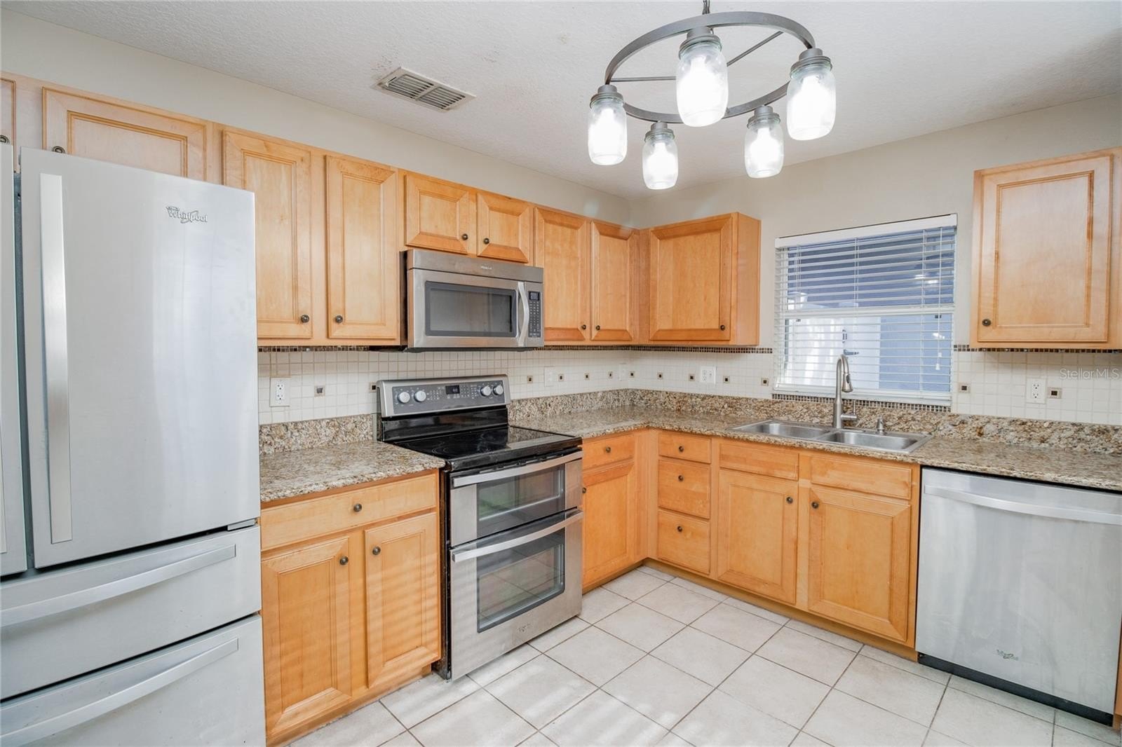Inside, you’ll find a functional and inviting layout featuring stone countertops in the kitchen and bathrooms, along with tile flooring in all wet areas. The kitchen comes fully equipped with refrigerator, microwave, double oven with electric range, and dishwasher, while the washer and dryer are also included—making this home truly move-in ready.