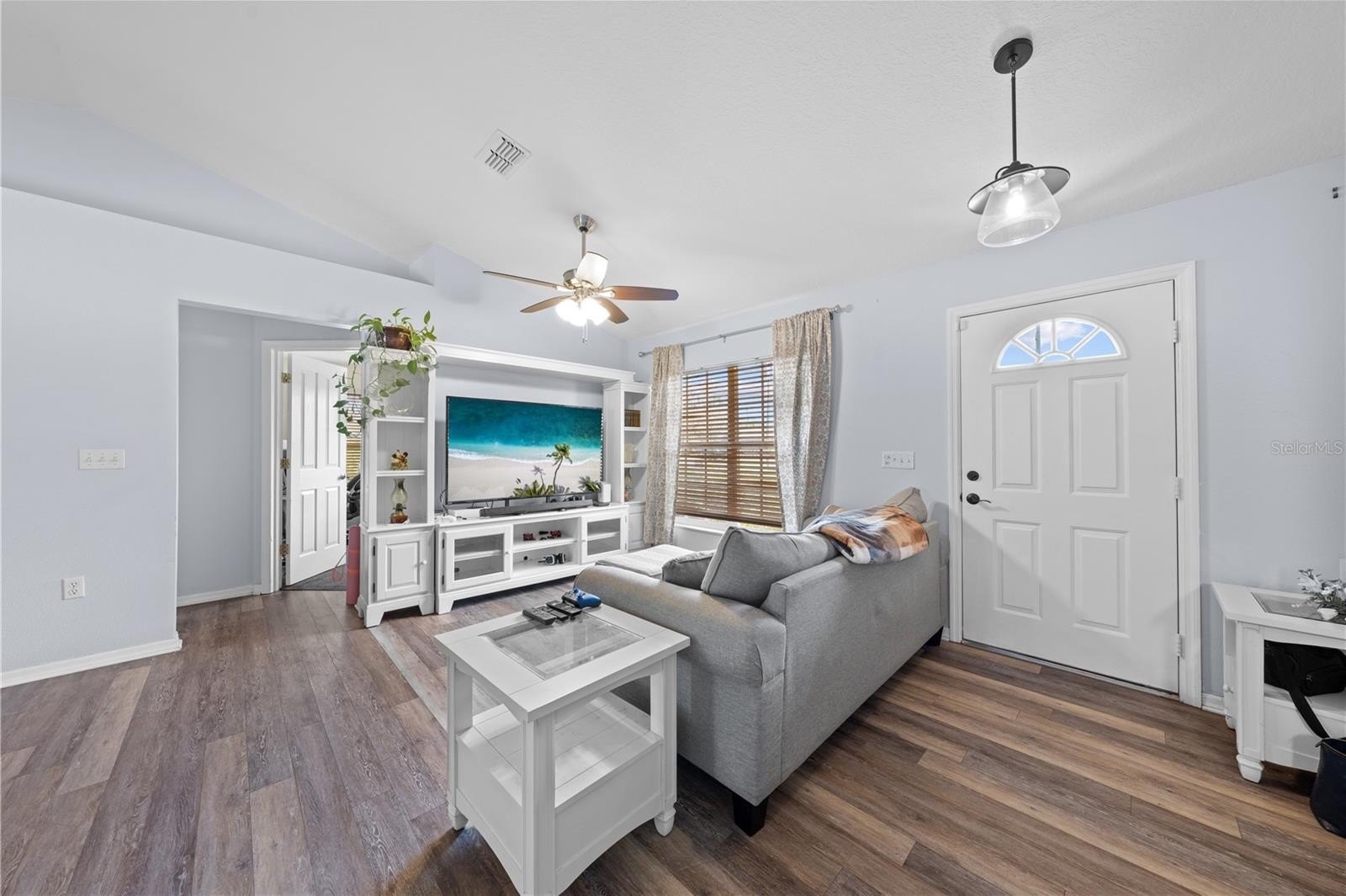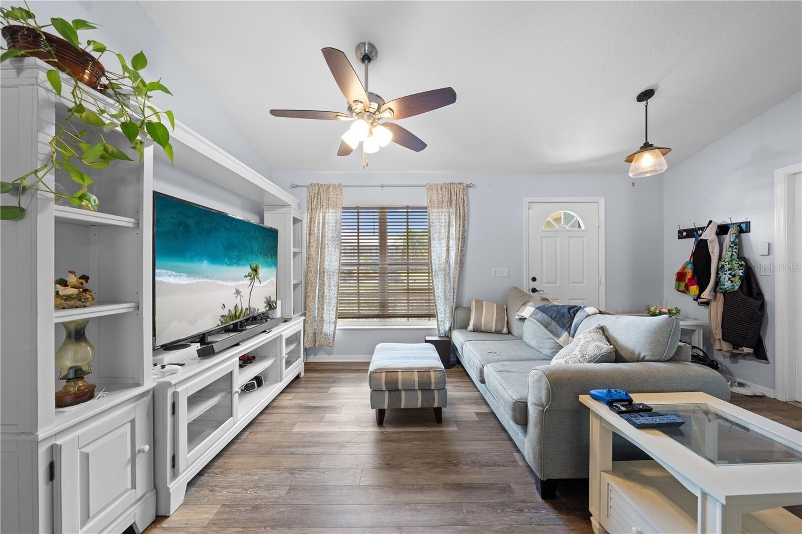cabinet, a large deep double sink and newer appliances. The primary suite offers a walk in closet, ceiling fan,