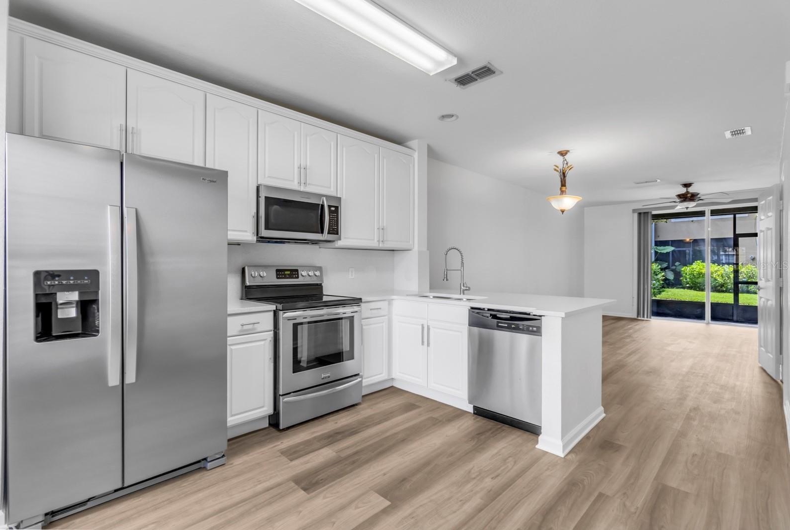 Step inside to discover an open-concept floor plan featuring a remodeled kitchen with brand-new stainless steel appliances, Quartz countertops,