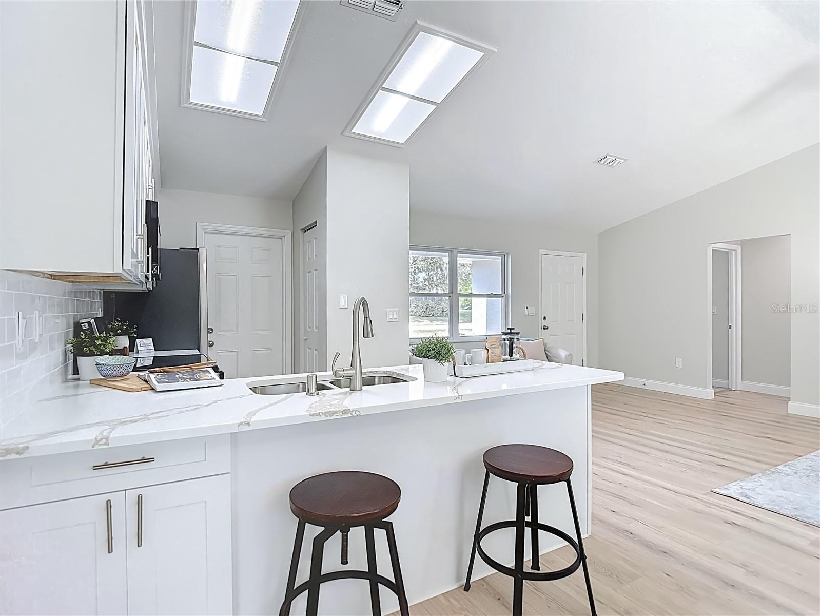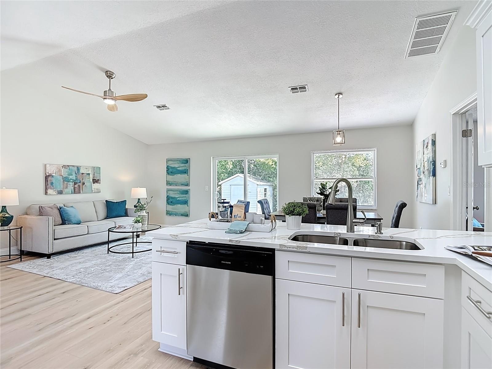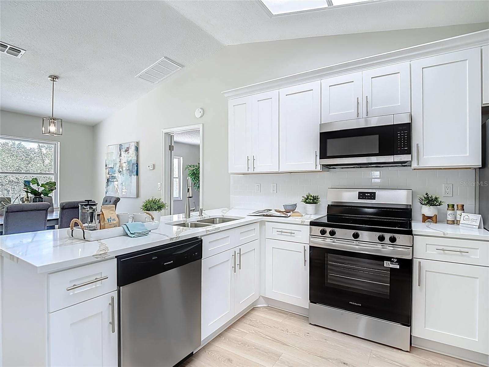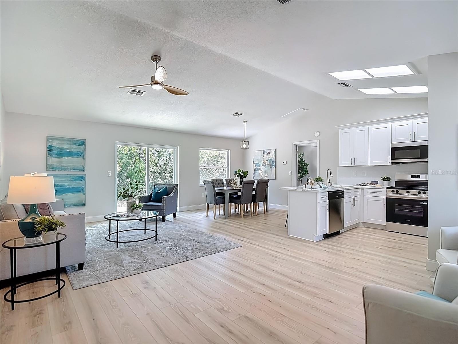 Must see this great deal! Rare, completely remodeled 3-bedroom, 2-bath, 2-car garage home on just under a quarter of an acre, offering 1,305 square feet of updated living space in the heart of Spring Hill. This move-in-ready property features a brand-new roof and hot water heater, fresh interior and exterior paint, and new laminate wood flooring throughout. The open-concept layout is complemented by vaulted ceilings, a split bedroom floor plan, brand new laminate wood floors, new carpet, a fully renovated kitchen with beautiful quartz countertops, new cabinetry, and stainless steel appliances. Both bathrooms have been completely remodeled including all new fixtures, finishes, and lighting. The spacious primary suite includes a walk-in closet and an en-suite bath with dual sinks and a walk-in shower. Exterior highlights include a large, fully fenced backyard with a storage shed, providing plenty of space for outdoor enjoyment. Conveniently located near shopping, dining, and entertainment. A fantastic opportunity you won’t want to miss!