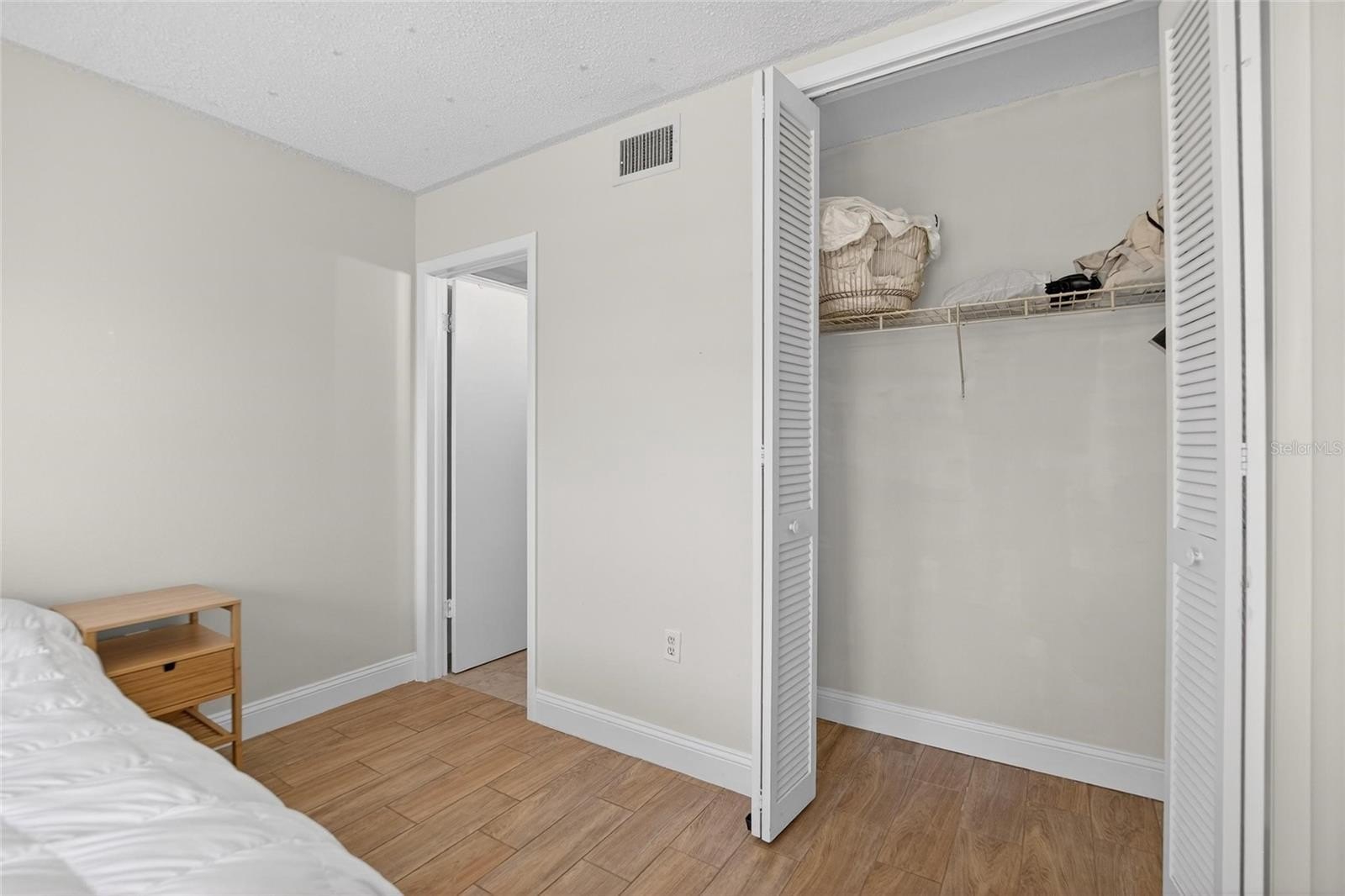 The primary suite includes an en-suite bath and built-in closets, while the second bedroom offers a walk-in closet and easy access to a full guest bathroom.