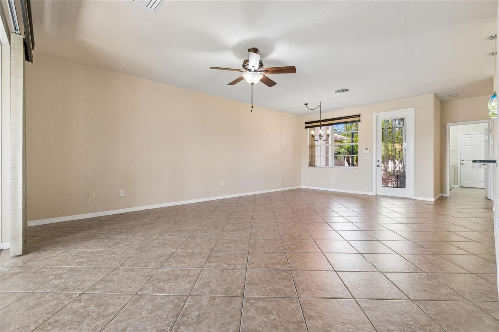 This lovely home is located just steps away from the Valencia Lakes clubhouse and all the amenities! From the moment you arrive, you will fall in love with this Cristina Model Villa with a magnificent water view! A lovely front yard wrapped in ornamental borders leads to the generous-sized screened front patio which provides a peaceful seating area adding to the comfort and serenity of the house providing an additional private outdoor space to relax/entertain on lovely Florida days. Upon entering through the full panel front glass door, you are greeted with a spacious open floor plan with 9 ft. tall ceilings and panoramic views of the pond. High quality ceramic tile flooring, laid diagonally, was installed in all the main areas, bathrooms and utility room. There is brand new carpet in both bedrooms and the interior was just freshly painted. All rooms including the lanai are equipped with quality fans. A gourmet kitchen is upgraded with 42” white wood cabinets with a pantry, upper and lower lights, 2 glass front top panels, pull-out shelvings in lower cabinets. There are granite countertops with an extended breakfast bar for additional seating. The countertop is complemented with an infusion glass mosaic style backsplash. All kitchen appliances are stainless steel style and are upgraded with a Whirlpool dishwasher and French-door refrigerator. There is also a breakfast area in the kitchen by the window with ample space for informal dining. The master ensuite, with a bedroom window overlooking a pond, features a very large walk-in closet and a double vanity with upgraded high quality glass bowl sinks. A glass door shower has floor-to-ceiling tiles installed with a decorative listello. There are grab bars on each shower wall. Bathroom/shower faucets are upgraded. The location of the 2nd bedroom and bathroom creates a feel of a separate private suite - perfect for the comfort and privacy of guests. The 8 ft. sliding door off of the great room leads to a screened back lanai with pond views capturing the beauty of Florida living – water reflecting the colors of the sky changing throughout the day with frequent sightings of wildlife. The outside of the villa was painted last year (this service along with power washing of the exterior and the pavers are included in the HOA fees). Valencia Lakes is a 55 and better active adult golf cart community, 40-acre waterfront outdoor recreation area with resort-style heated pool, lap and resistance pool, 40,000 sq. ft. clubhouse, deluxe restaurant led by Chef Paul Mattison, arts and crafts studio, har-tru tennis courts, gym, half-court basketball, pickleball, bocce courts, dog park, baseball park, community garden, hundreds of clubs and activities, RV/boat parking. Over 100 acres set aside as nature preserves; enjoy the quiet and solitude of peaceful views, birds & wildlife by the water. Great sense of community with great friendly neighbors. Tampa, St. Pete and Sarasota 30-45 minutes away. Close to the airport, medical facilities, shopping and golf.