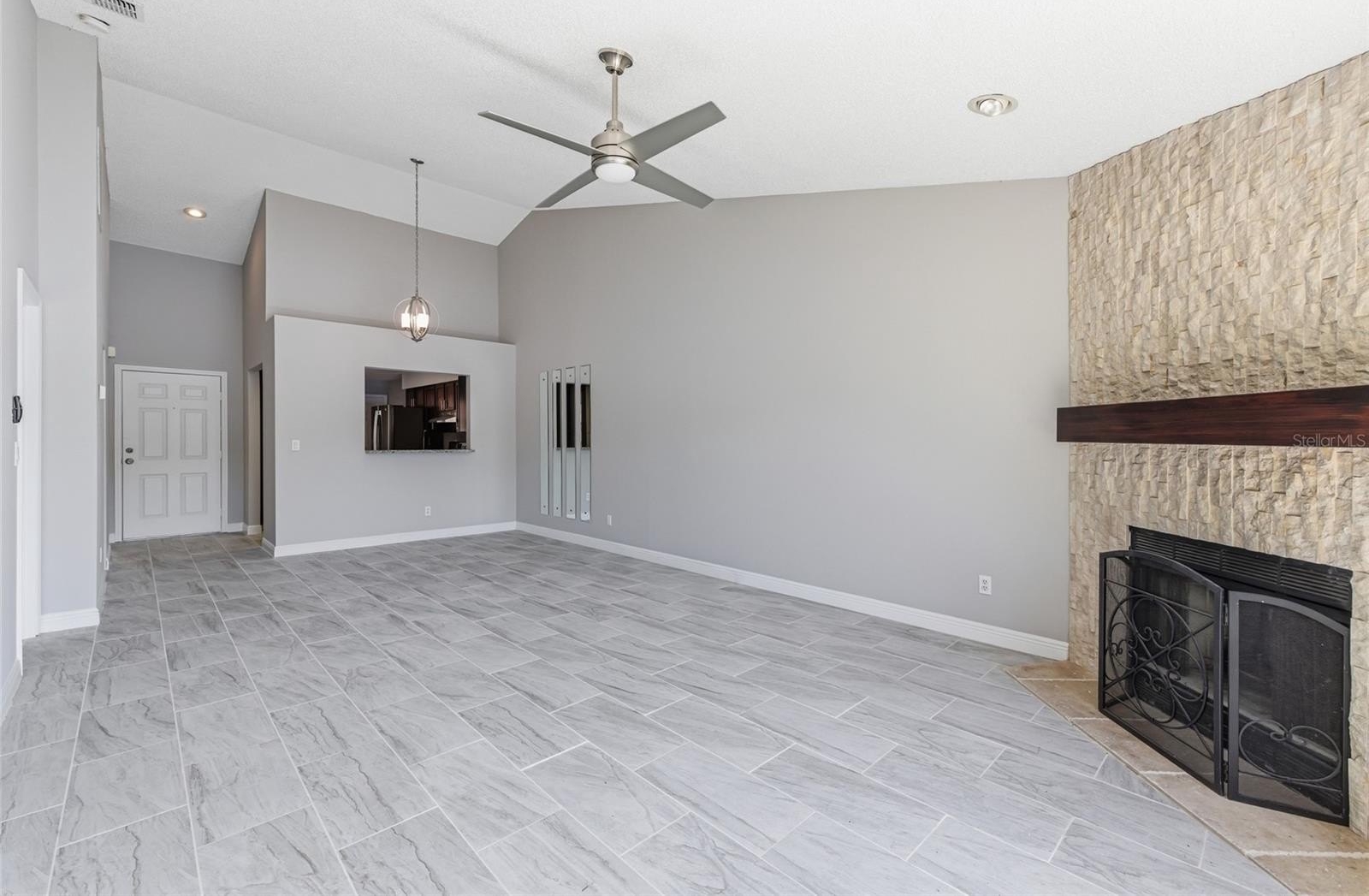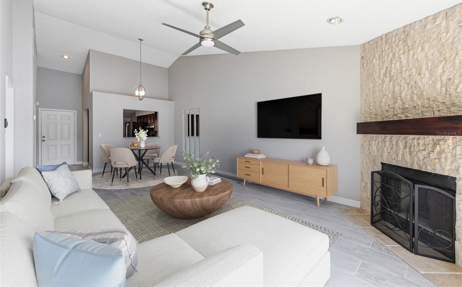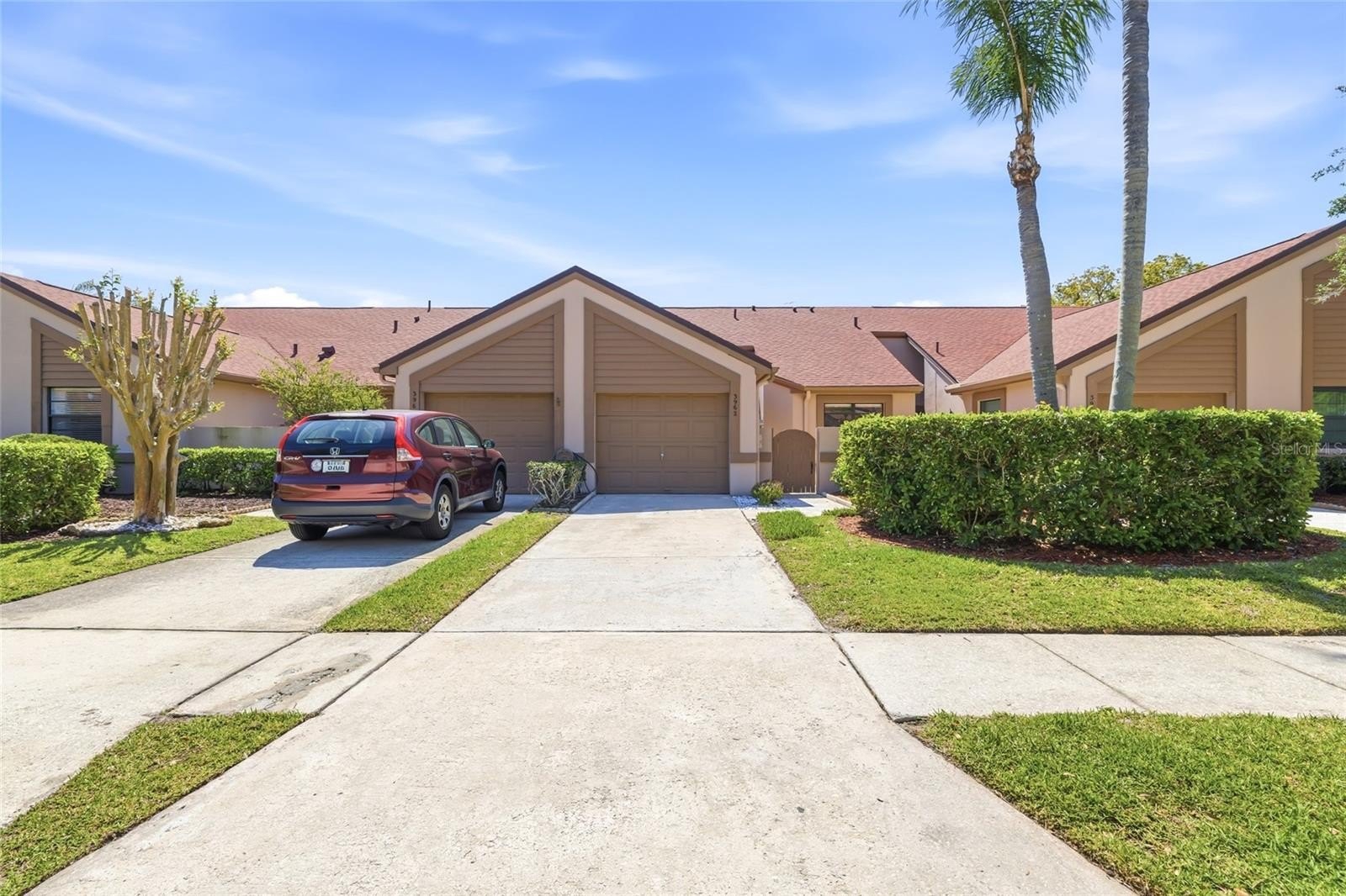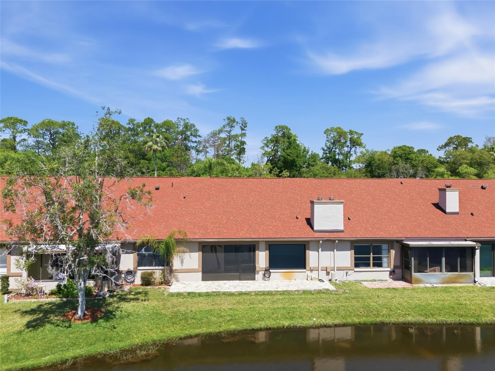 One or more photo(s) has been virtually staged. Must see pond view! Charming single-family home offering 2 bedrooms, and approximately 1,280 square feet of comfortable living space. This well maintained property features a vaulted ceiling that creates an open airy feel throughout the main living area. The living room is highlighted by a cozy fireplace enhanced with new stone work, a new large pictue window in the living room fills the space with natural light, and new window treatments throughout. The home also boasts upgraded carpeting in the bedrooms, beautifully updated outdoor spaces including new pavers in the front courtyard and the backyard patio-perfect for relaxing or entertaining. Additional highlights include a single car garage with a brand new acces ladder providing easy access to extra storage and a convenient indoor washer and dryer, adding everyday ease and functionality. Enjoy peace, expansive pond views that create a serene setting right from your own backyard. Located in a beautifully maintained, park like commununity, residents enjoy access to a community pool area and seperate playground along with pickle ball, tennis,and basket ball courts- offering an active lifestyle. Conveniently located near shopping, dining, and everyday amenities, this move in ready home offers both comfort and convenience in a desirable setting.