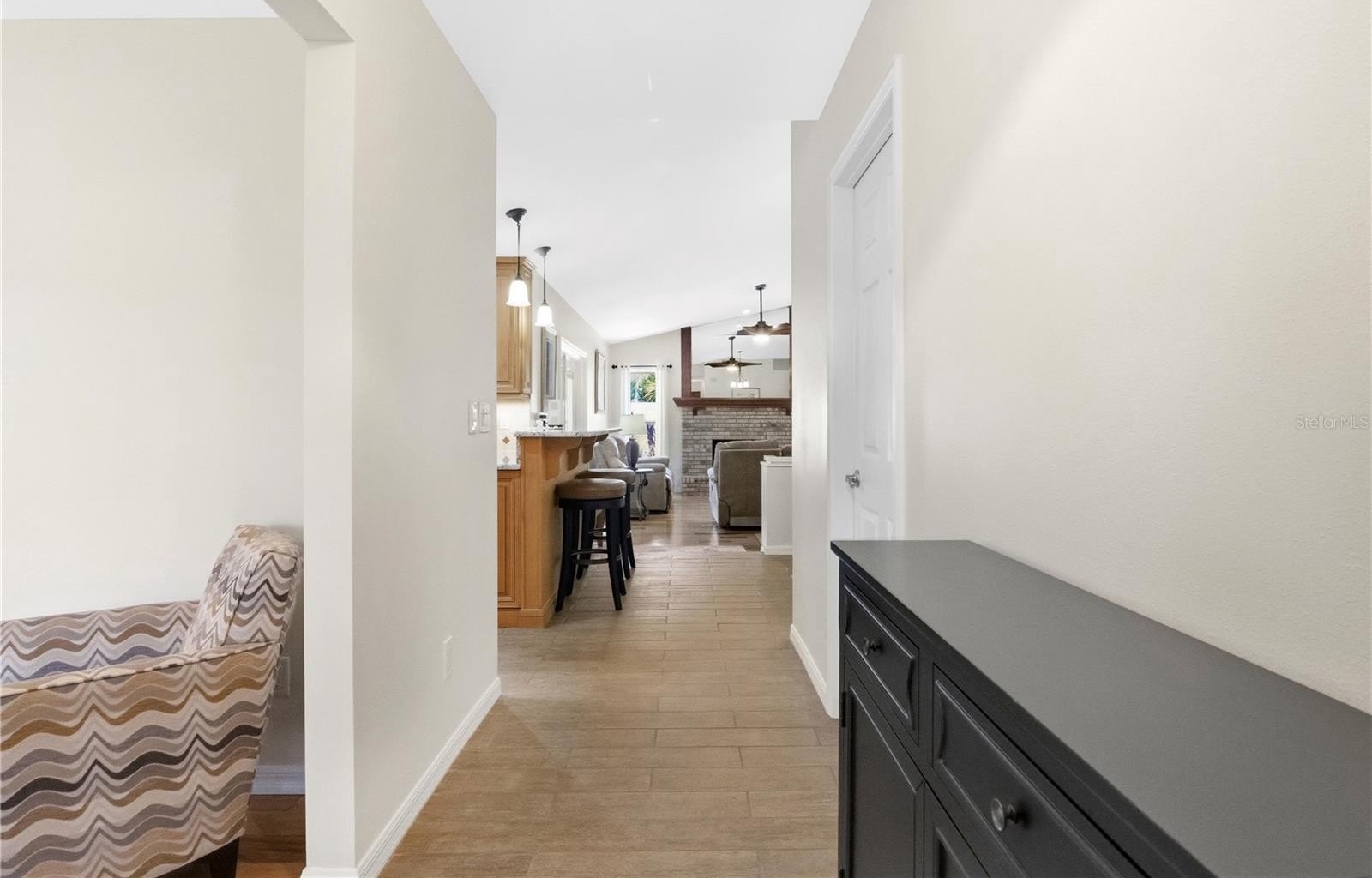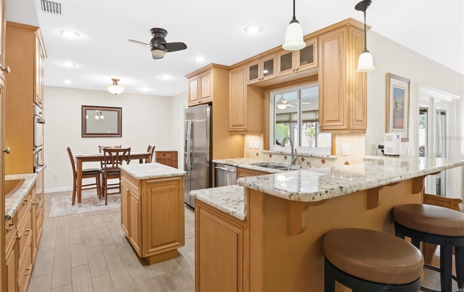 Welcome to the quaint Greenview at Dover community. A peaceful and serene community of 65- homes that sits along oak lined streets. This 1,915-square-foot, 3-bedroom, 2-bath pool home is full of charm. The remodeled kitchen features beautiful cabinetry, granite countertops, a sleek induction stovetop, GE stainless steal appliances, and a central island. Enjoy both a formal living room and a family room with a cozy fireplace. French doors from both the family and dining rooms lead to the sunroom, which opens to your private pool and Jacuzzi. This floor plan offers a split bedroom set up. The primary suite includes a walk-in closet, dual sinks, a tub-shower combo, and built-in cabinetry, while the second bathroom boast a glass walk-in shower. All bedrooms, living room, family room and sunroom have ceiling fans. The versatile flex space is perfect for an office. Throughout, the home features a blend of engineered wood flooring and tile planks. Some of the notable features of this home is a two-car garage equipped with an 8,000-watt power transfer switch for those stormy nights, a fenced yard, a termite bond, a new roof in 2021, this home truly has it all. Just minutes from grocery stores, the 408, I-4, the 417, the 528, Downtown Orlando, and Orlando International Airport.