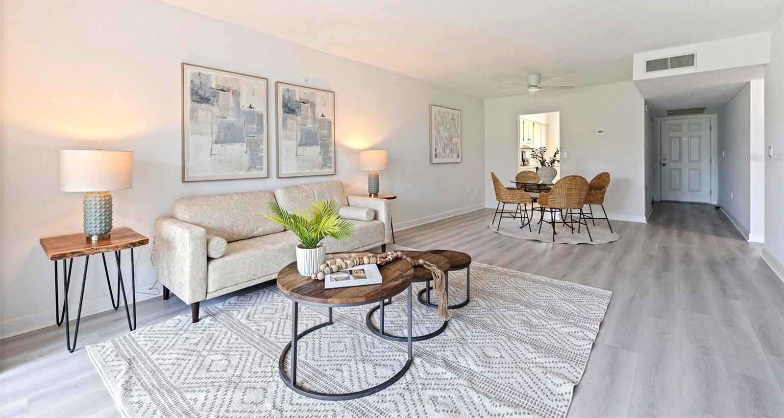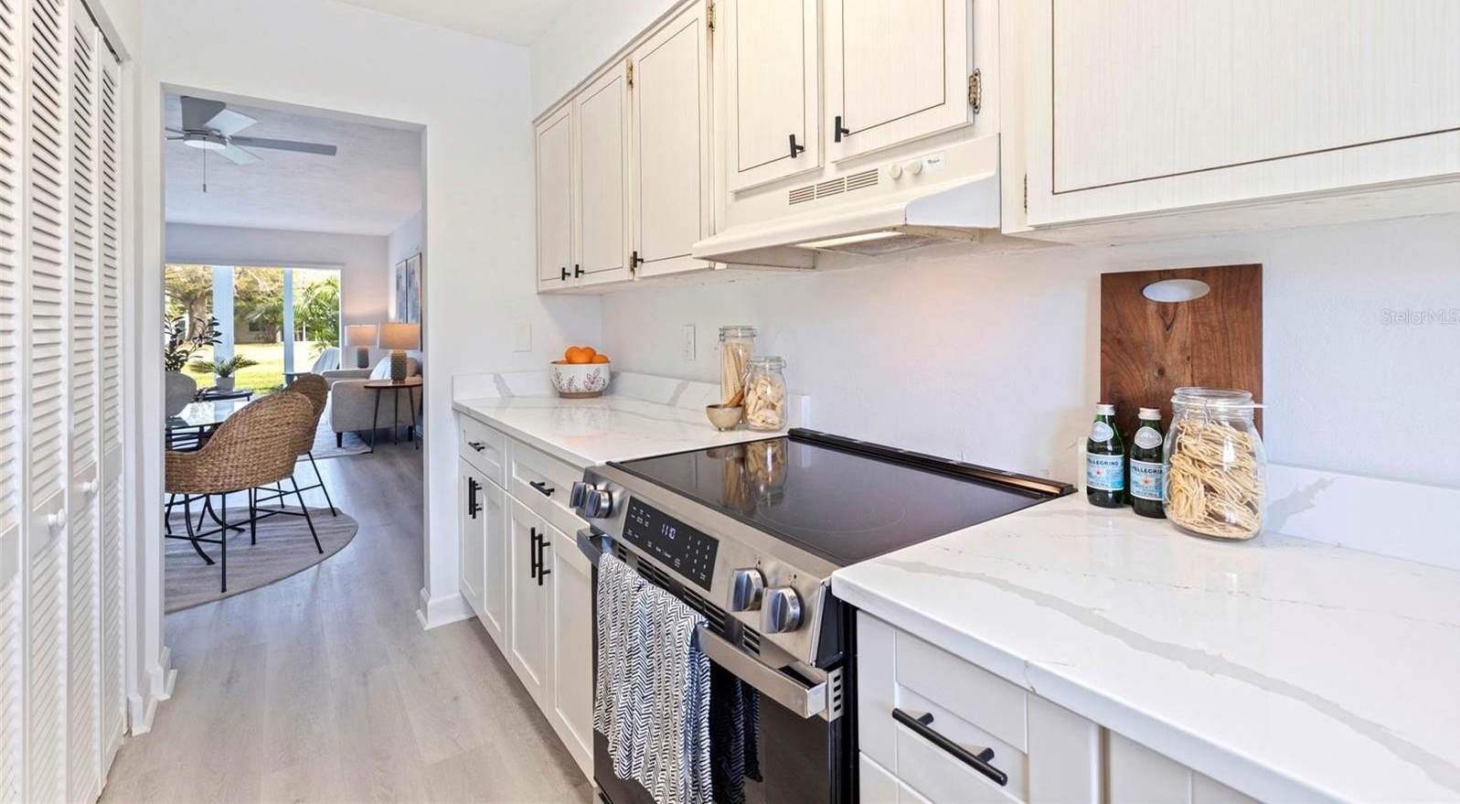 A standout feature of this unit is the OPEN FLORIDA ROOM, fully incorporated into the living space to create extra flexibility for relaxing, entertaining, or working from home. The interior features NO CARPET — with luxury vinyl plank and laminate flooring throughout — offering both style and easy maintenance. Assigned parking and private storage add everyday convenience.