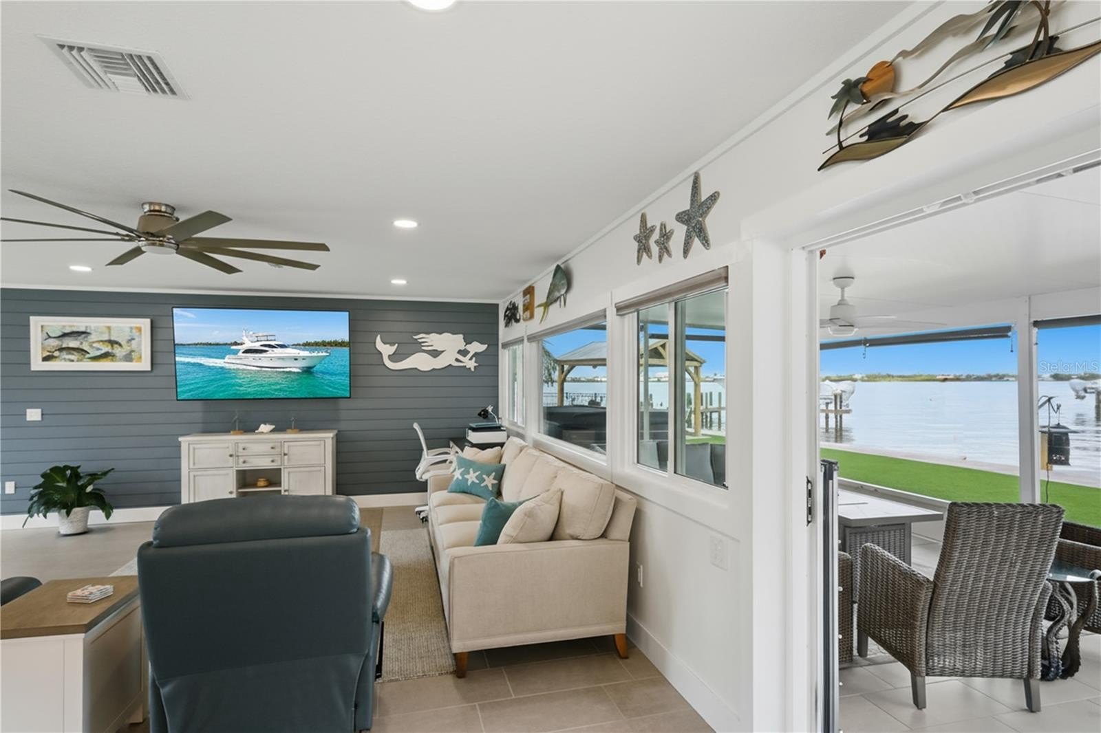 Experience true Florida waterfront living on the Manatee River, where boating and fishing opportunities are right outside your door. Enjoy effortless access to Tampa Bay and the Gulf of Mexico, making this home a dream for water enthusiasts. This beautifully updated, single-family home has been completely renovated with no detail overlooked. The interior and exterior was freshly painted in 2024 and enhanced with classic Bermuda shutters, adding charm and coastal character. Inside, the open-concept floor plan showcases a bright, airy design with LED ceiling lighting throughout and stylish shiplap accents for a subtle nautical touch. The fully updated kitchen features all-new lower cabinetry, sleek quartz countertops, and a complete stainless steel appliance package (2024). Step outside to a stunning backyard with low-maintenance, lush Astroturf—perfect for relaxing or entertaining while taking in the serene water views. A/C 2020, Roof is 12 years old. Feature sheet available.