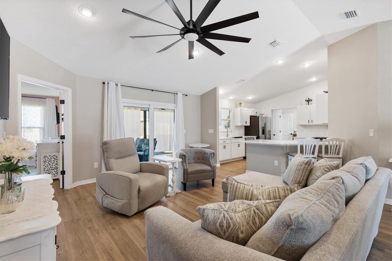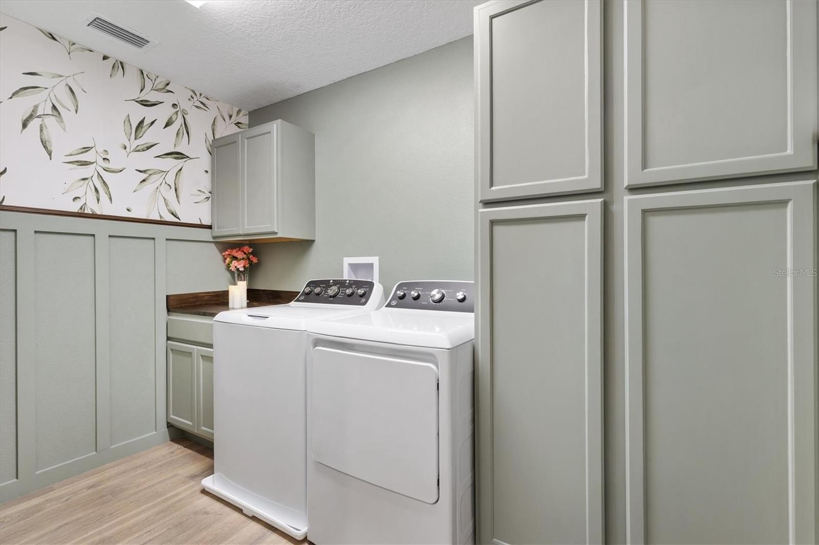 I have an INTERIOR laundry room, that is functional and looks great with extra storage cabinets. My lanai is oversized and ready for whatever you are bringing, morning coffee, book club, happy hour, all of the above. My 2-CAR GARAGE has an EPOXY floor clean enough to eat off of, not that I am recommending it, but the option is there. My landscaping makes the whole corner lot look intentional, because it is.