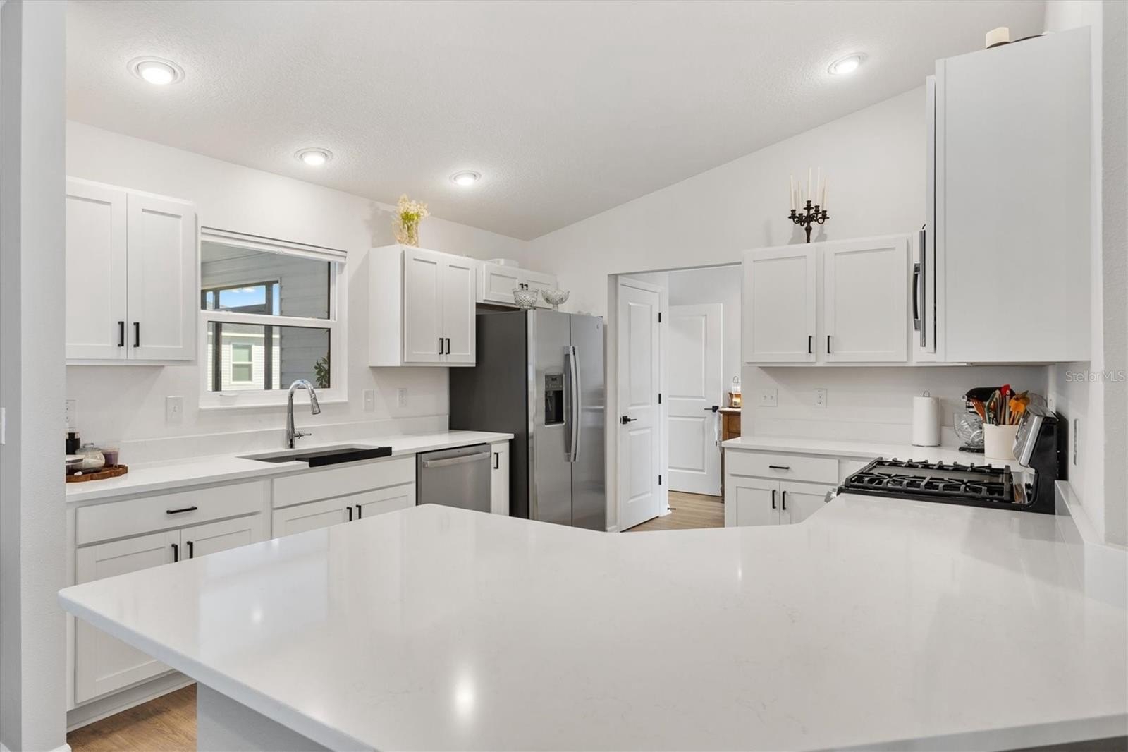 My kitchen is not messing around. QUARTZ Countertops, a full PANTRY, and enough CABINET STORAGE that you will actually be able to find things. My bathrooms are dressed with new mirrors and updated lighting because details matter and I take mine seriously.
