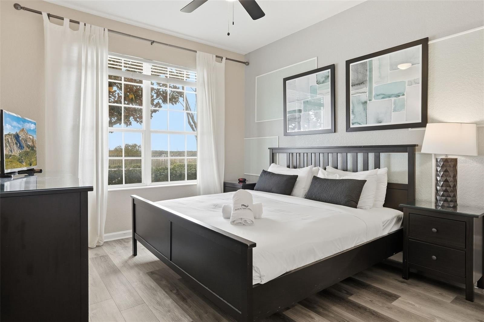 The HOA fee includes lawn service, irrigation maintenance, daily valet trash pickup, internet, basic cable and a 24/7 manned guard gate. Community amenities include a large clubhouse, tropical setting community pool with water park slide, zero entry pool, open air lounge center, convenience store, fitness center, movie theater, billiards/game Room, table tennis, lighted basketball & tennis courts, sand volleyball court, putting green, RV/Boat parking area, two kiddie park/playgrounds. Located just minutes from Disney parks, major attractions, dining, shopping, championship golf courses, major airports, and Florida’s famous beaches, this is an exceptional opportunity to own a turn-key home in one of Central Florida’s most desirable resort communities. This home is sold fully furnished and ready for you to move in and make it your own. 2026 upcoming bookings may convey to the new owner if the current property manager is retained. Excellent opportunity for a primary residence, vacation home, or income-producing property. Schedule a Viewing today, don't miss out on this opportunity!