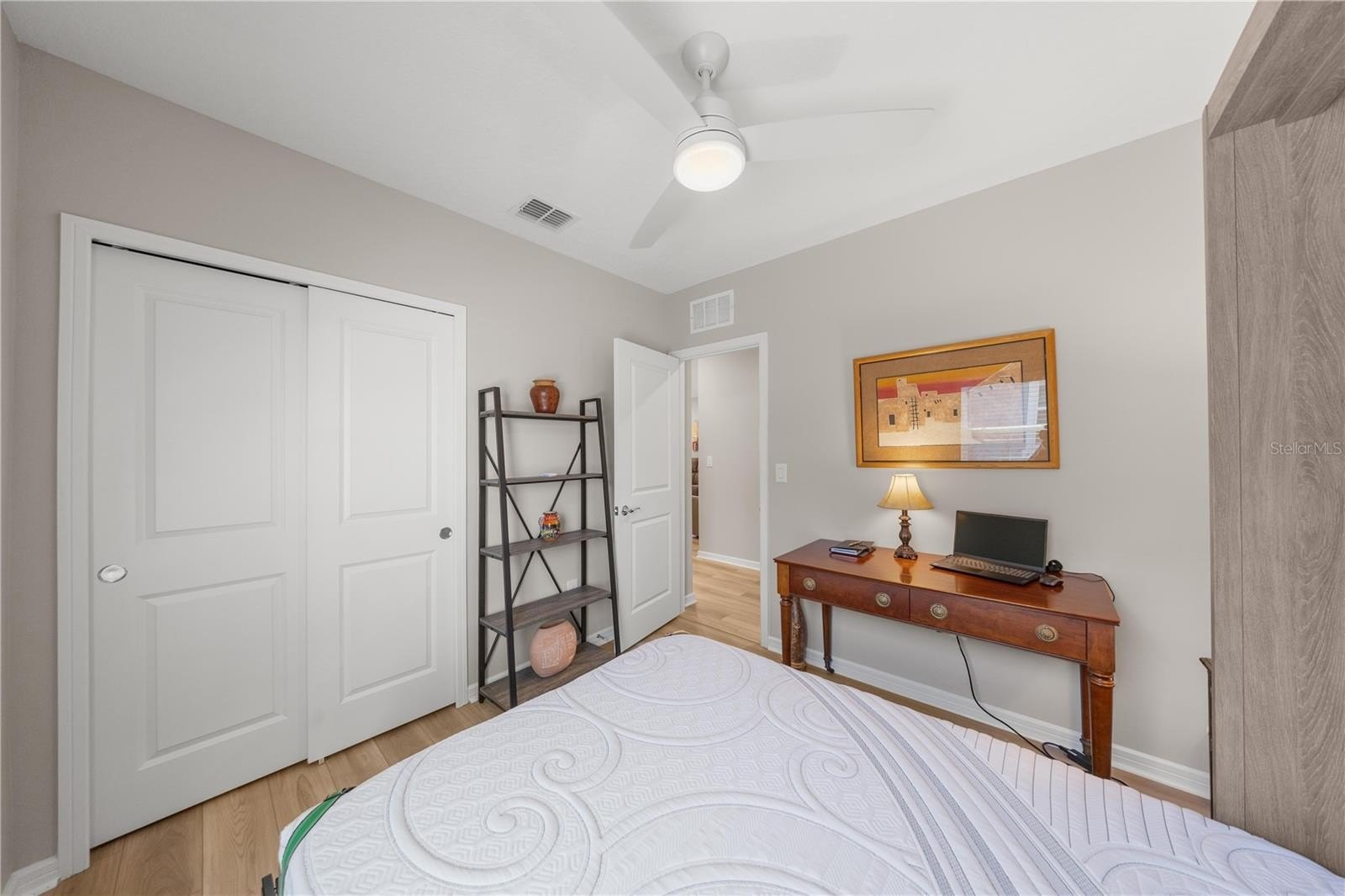 Welcome to your new sanctuary in the highly sought-after Stone Creek community. This pristine, newly constructed home blends modern sophistication with everyday functionality, offering a lifestyle defined by convenience and luxury. Residents here enjoy access to an impressive suite of world-class amenities, all while being just moments away from the area’s premier shopping destinations and vibrant dining scene. Inside, the home radiates a home not a house, highlighted by upgraded luxury vinyl flooring that flows seamlessly through every bedroom. The kitchen is a standout feature, boasting a stylish tiled backsplash and a commitment to organization with custom pull-out drawers integrated into all cabinetry. Enjoy extra space with an oversized room, where the possibilities are endless. However, the true showstopper is the outdoor living space; an extended patio with custom pavers and a protective birdcage enclosure offers the perfect, airy retreat for relaxing or entertaining in the fresh air.