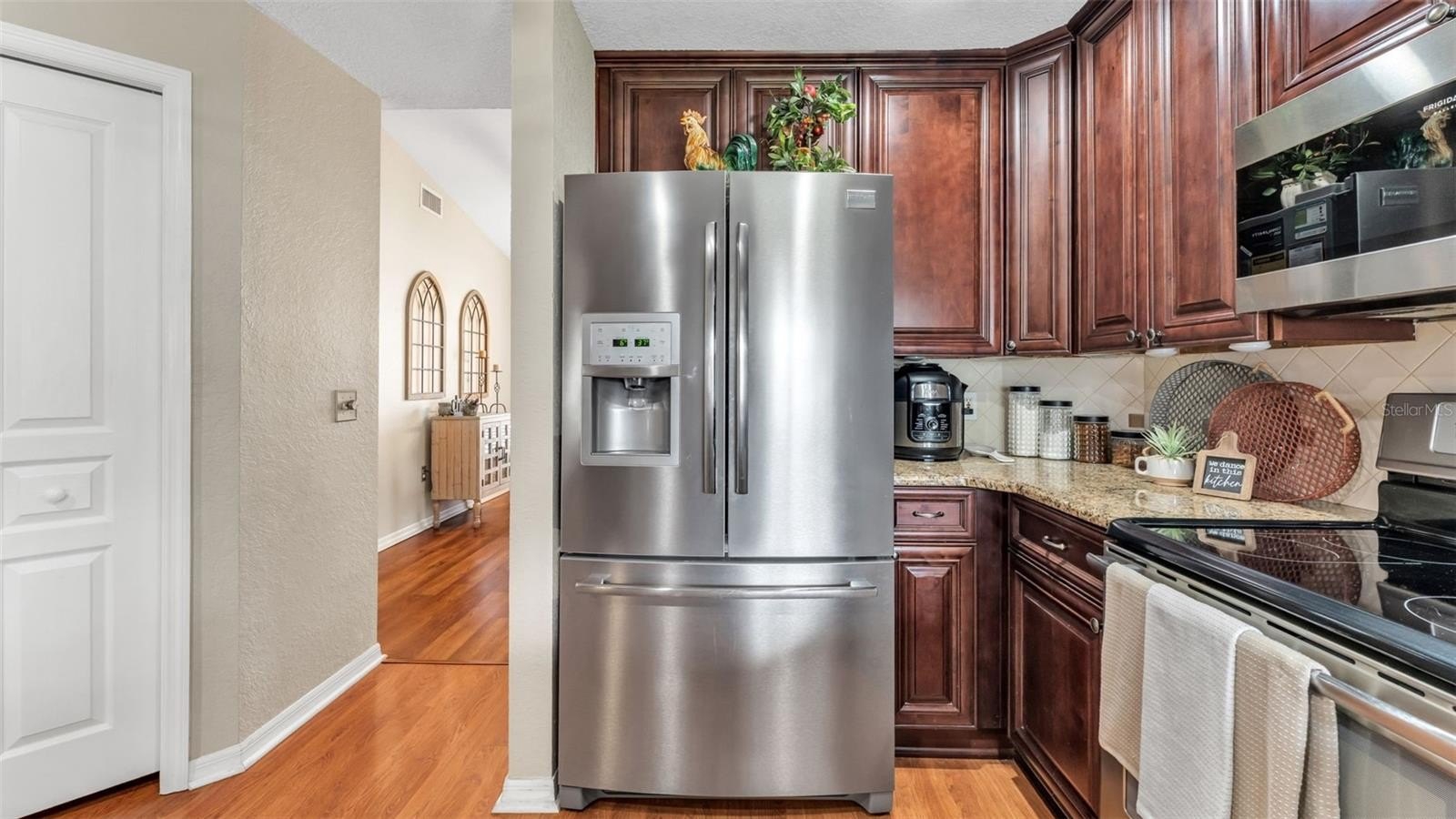 If you are searching for your “forever” home or have multi-generational needs, finding a house with flexible spaces and room to grow is key - and this high quality, custom construction, 5 bedroom home offers all of this and more! Situated on a large lot in the lovely Hunters Run neighborhood, you will love coming home each day to this peaceful setting and community. This lovingly maintained home is impressive, with finishes and upgrades that feel refined and luxurious, yet are warm and welcoming. A crisp exterior makes a great first impression, and the same is true from the moment you walk inside. Formal living and dining spaces frame the foyer, with plant shelving, attractive paint colors and updated fixtures. The kitchen is stunning, with upgraded wooden cabinetry, stainless appliances, granite countertops, closet pantry, and breakfast bar. There is a large informal dining area adjacent to the kitchen, and a spacious family room, as well. The primary suite includes a very large bedroom, walk-in closets, and an en-suite bathroom with split vanities, granite countertops, water closet, shower and tub. There is a bedroom next to the primary suite that could also function well as an office or nursery. On the other size of this triple-split floor plan, there is a guest wing with two bedrooms and a full bathroom, as well as a HUGE 5th bedroom with its own en-suite bathroom. This is a perfect space for an in-law suite, but could also serve as a game room, office, gym…the opportunities are endless, and can change with your needs for years to come. With a half bathroom on the screened and covered back porch, the fully fenced yard would be ideal for adding a pool in the future, and offers plenty of space for outdoor recreation. Located between Tampa and Orlando, this wonderful, move-in-ready home combines convenience, thoughtful design, and Central Florida living at its very best.
