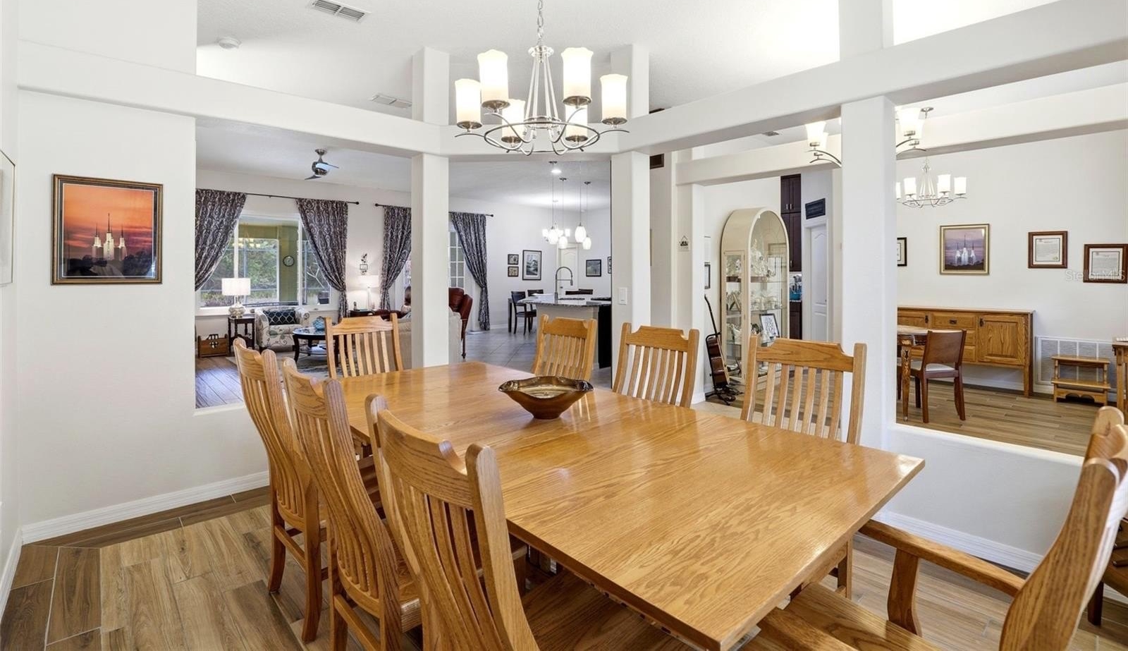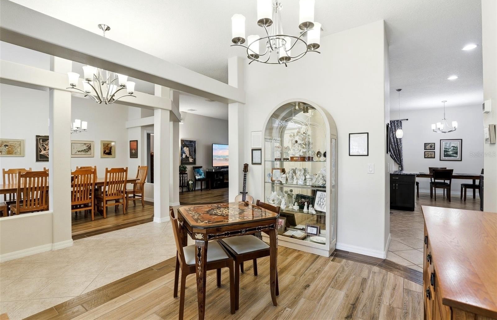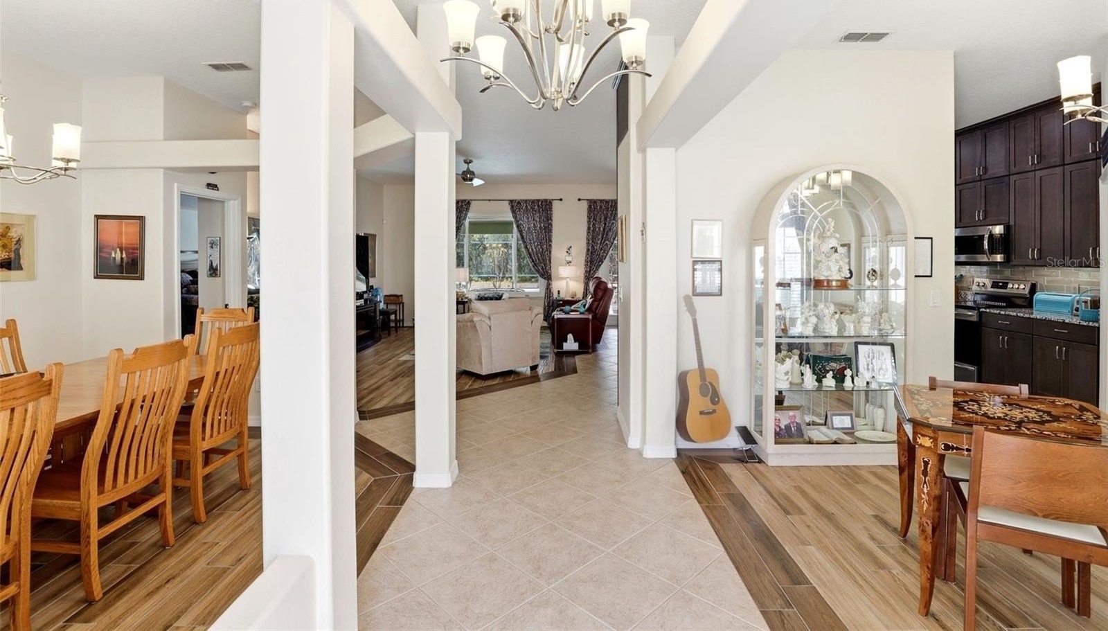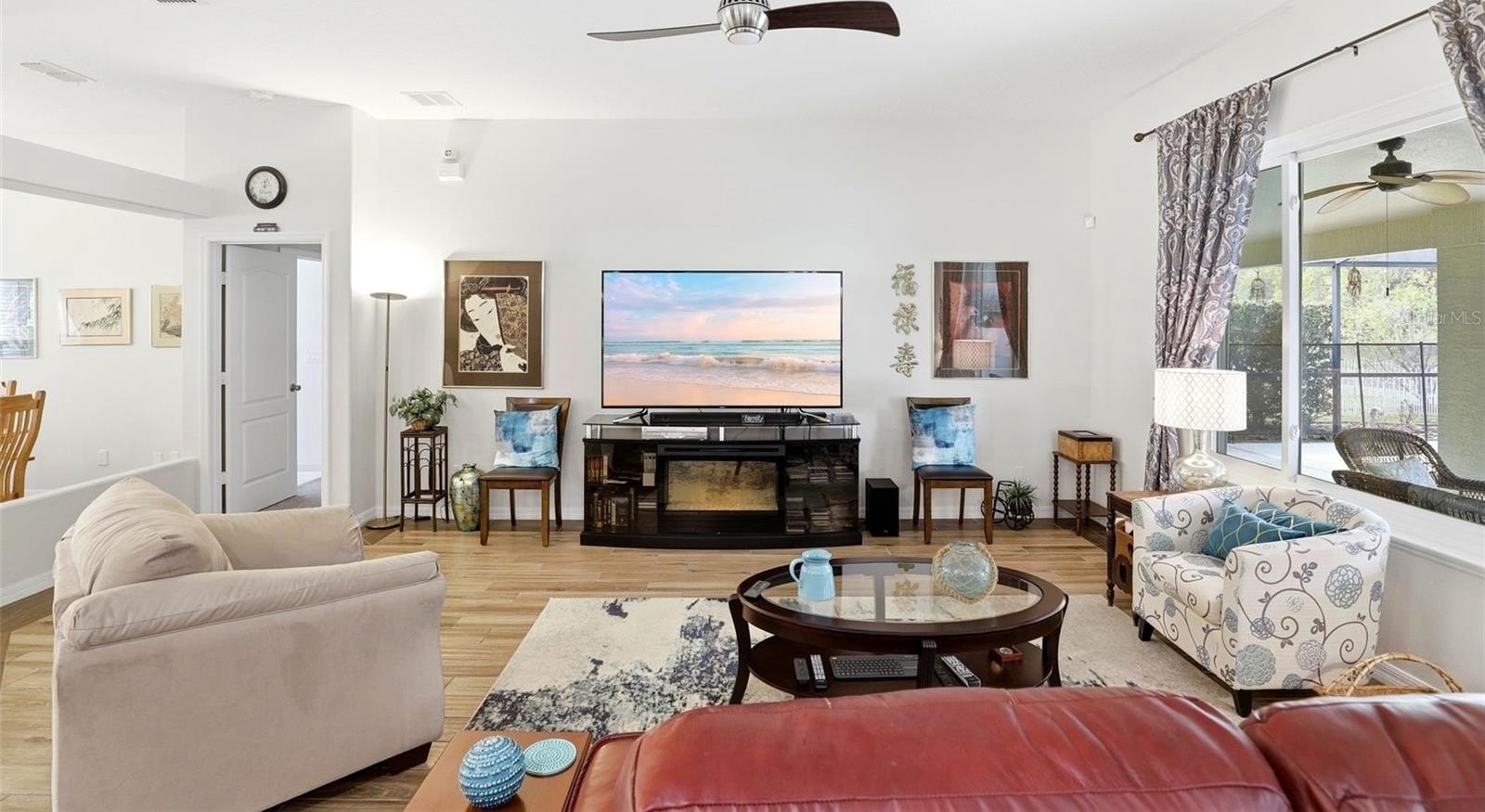 GATED COMMUNITY, PRIVATE POOL, CONSERVATION AND POND VIEW, NO REAR NEIGHBORS. This gorgeous pool home is located in the desirable gated community of East Lake Cove in beautiful St Cloud. You’ve found everything you desire in this 5 bedroom, 3 full bath home with over 2,700 square feet, a large lot with a covered lanai and a screened in private pool overlooking a pond and conservation area. This spacious home features a three way split floor plan with wood look tile flooring throughout the main living areas and one of the bedrooms, creating a warm and modern feel. Upon entering, you’ll find formal living and dining rooms that lead into a bright and inviting family room with beautiful windows overlooking the pool, allowing plenty of natural light to fill the space. The updated kitchen is perfect for entertaining and everyday living featuring 42 inch cabinets with an additional cabinet extension above, granite countertops, stainless steel appliances, and a breakfast area with views of the pool plus a large island with seating capability for bar stools and additional cabinet storage. The downstairs owner’s suite provides a relaxing retreat with tray ceilings, a sitting area, walk in closet, access to the pool and a beautifully renovated bathroom with dual sinks, upgraded lighting, gorgeous tile floor, tile showers to the ceiling and a spacious shower with a relaxing rain shower head. Upstairs, the fifth bedroom or bonus room features plenty of space for your ideas plus vaulted ceilings and a full bathroom, making it ideal for a guest room, home office, or private suite. Step outside through the rear French doors and enjoy Florida living at its best with a screened in pool and large covered lanai with two ceiling fans for your comfort, featuring a solar heated pool and a fully upgraded pool bathroom with a tile to ceiling shower, perfect for convenience after a swim. Additional features include driveway pavers, epoxy coated garage floor, a whole house water filtration system, inside laundry room, and many more. Residents of East Lake Cove enjoy gated security and wonderful amenities, including a tennis/basketball court, a playground, two ponds and a community walking dock with beautiful views of Lake Toho. Conveniently located just minutes from Lake Nona, Medical City, Orlando Airport, VA Hospital, Nemours Hospital, Amazon, shopping, restaurants, Walmart, Publix, and easy access to main highways such as 417 and 528. Home is also located near Narcoossee Elementary and Narcoossee Middle! Come see the rest!