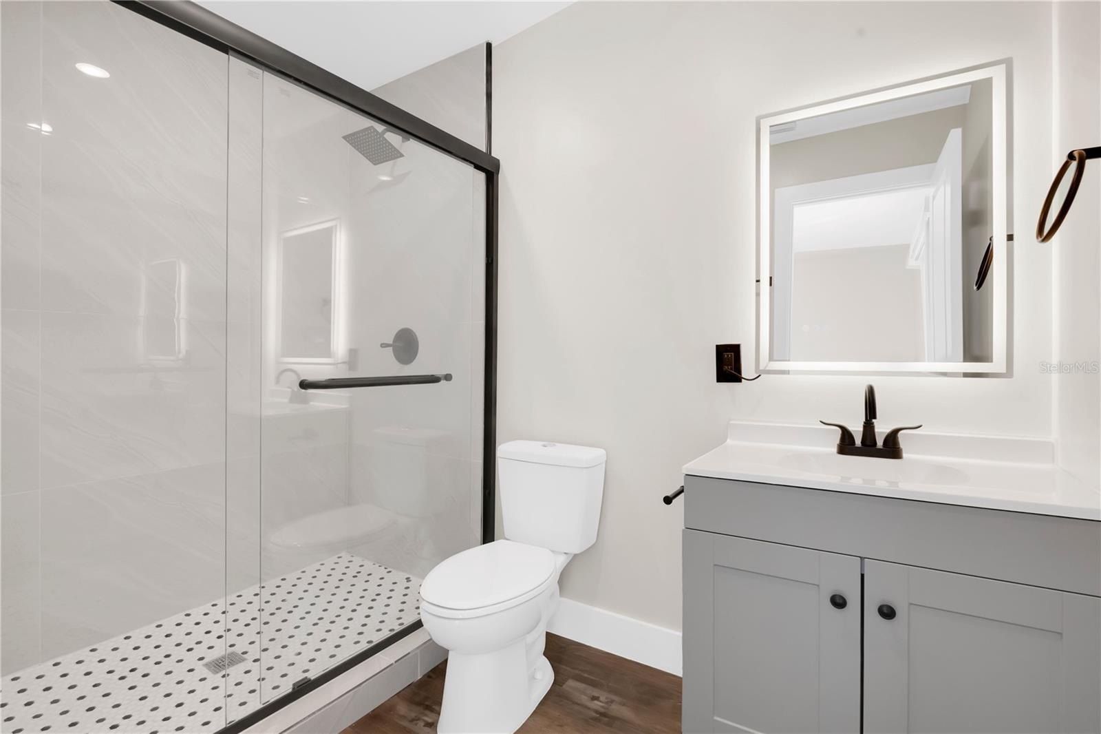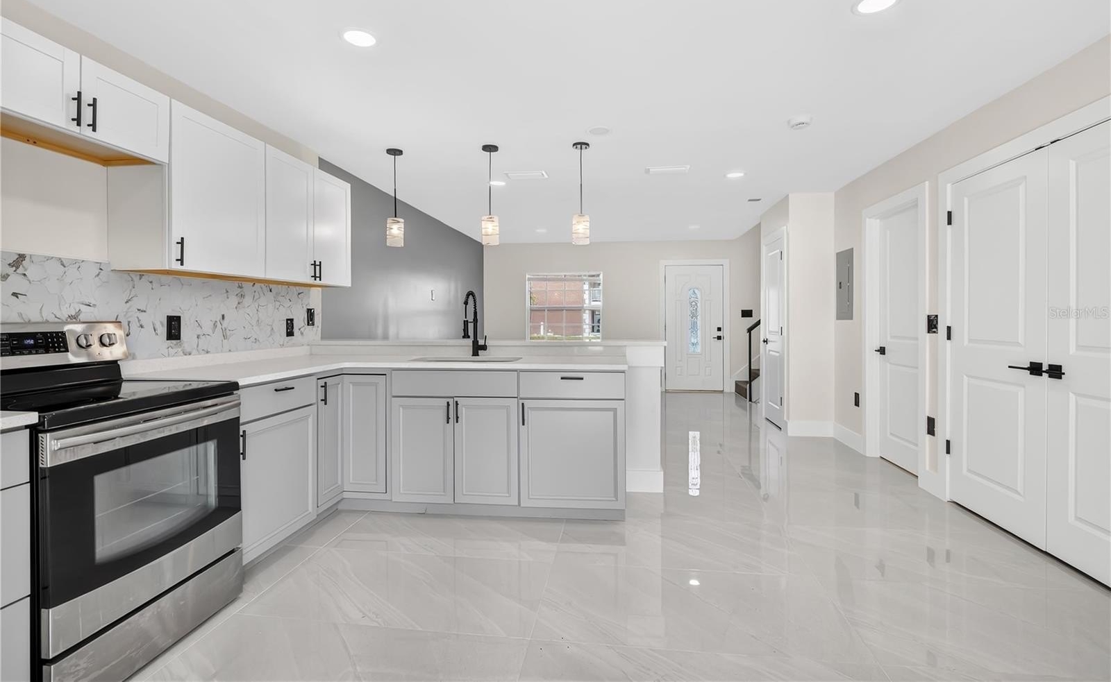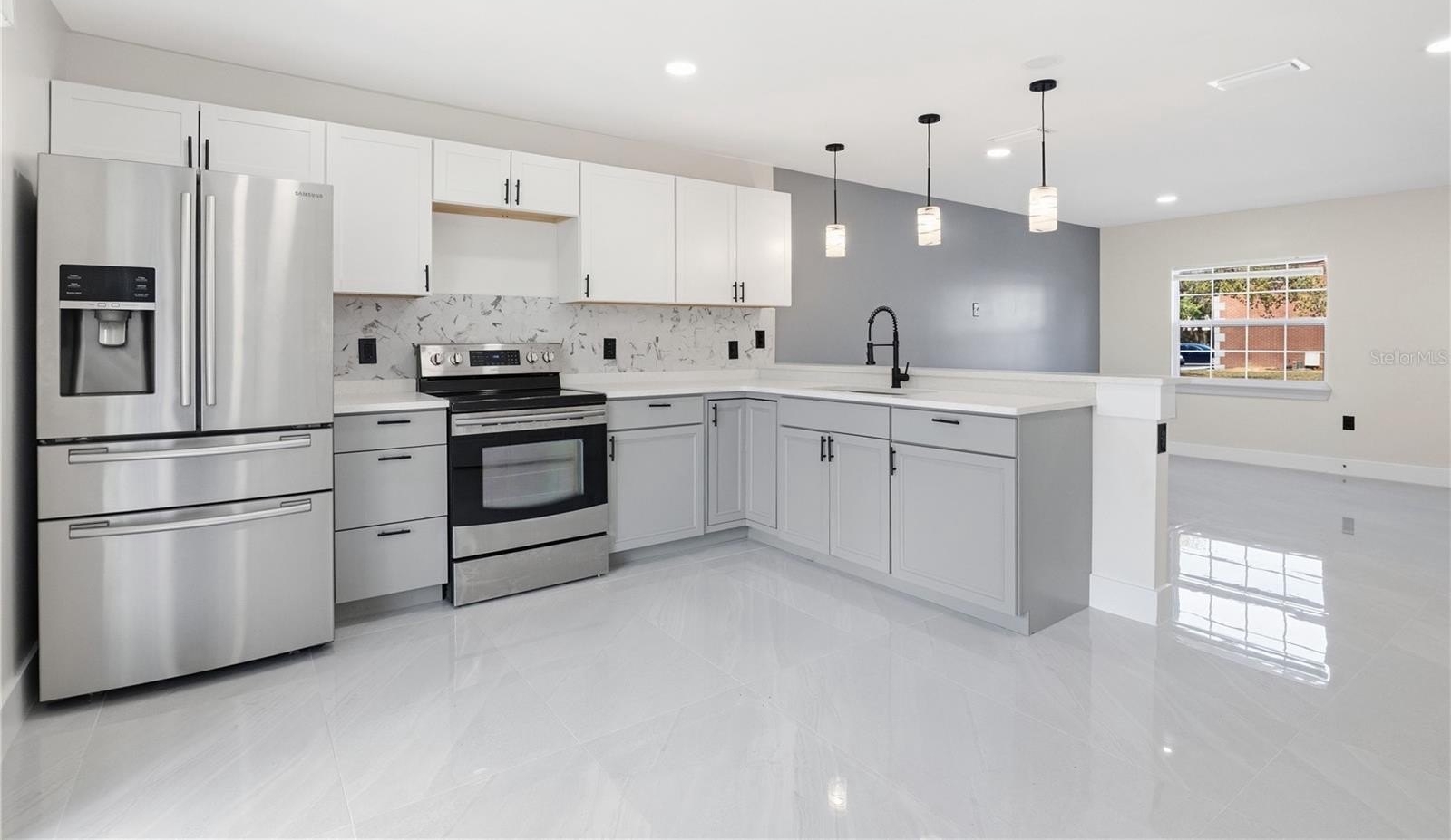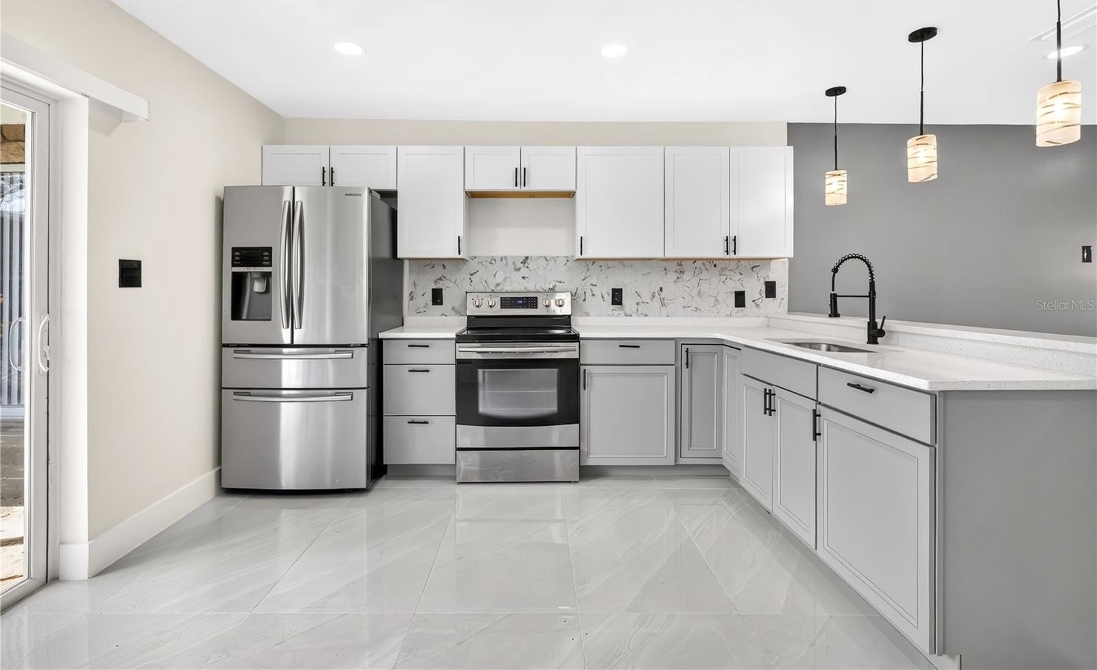The first floor showcases stunning new tile flooring in a striking neutral pattern, creating a modern and inviting living space, while the second floor features durable and stylish vinyl flooring for added comfort. The fully renovated bathrooms boast contemporary designs and quality craftsmanship, and a brand-new AC system ensures year-round efficiency and peace of mind.