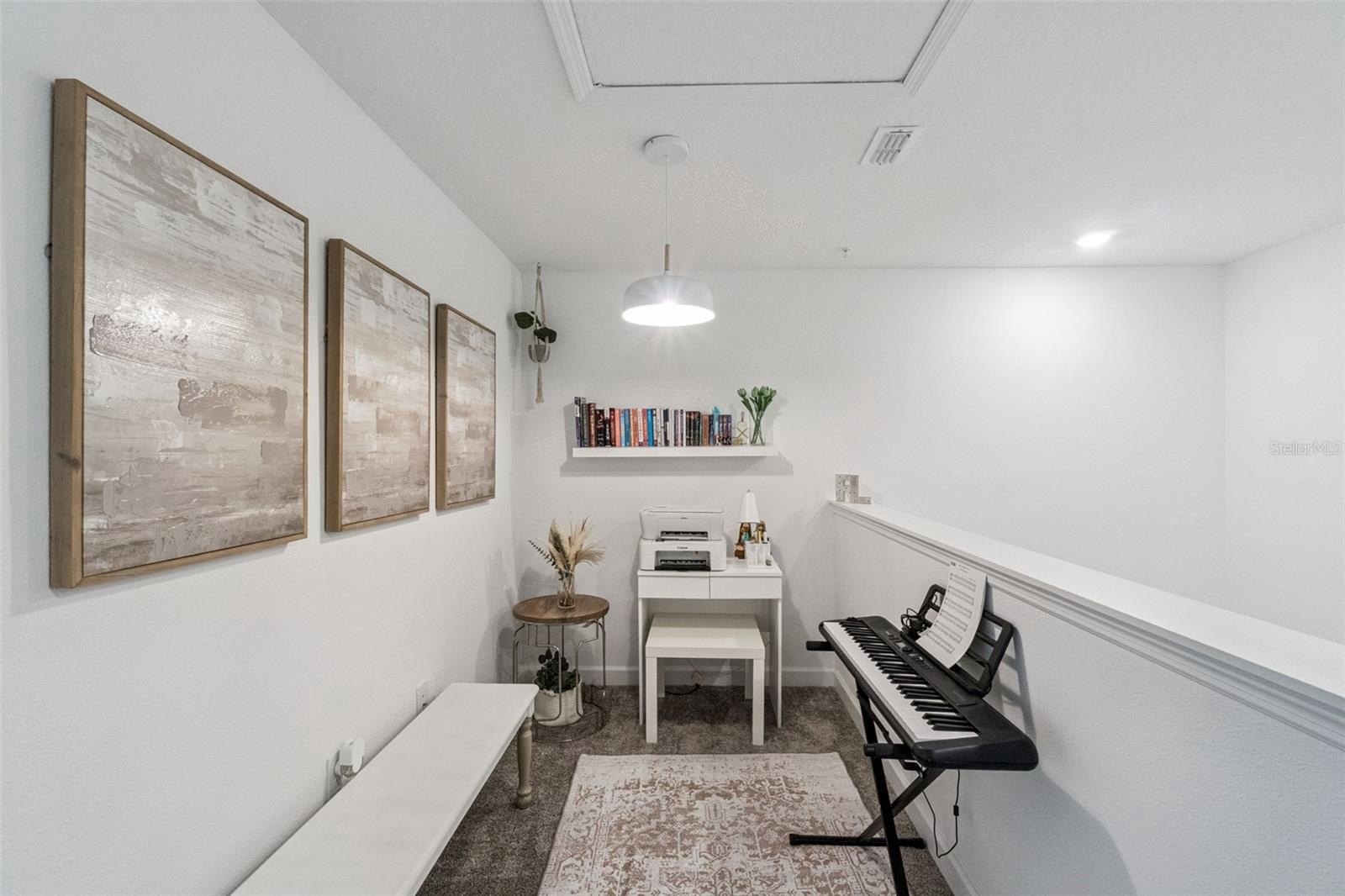 Upstairs, a cozy loft area provides a flexible space ideal for a study area, reading nook, or additional lounge. Three spacious bedrooms and full bathroom offer plenty of room for family, guests, or a home office.
