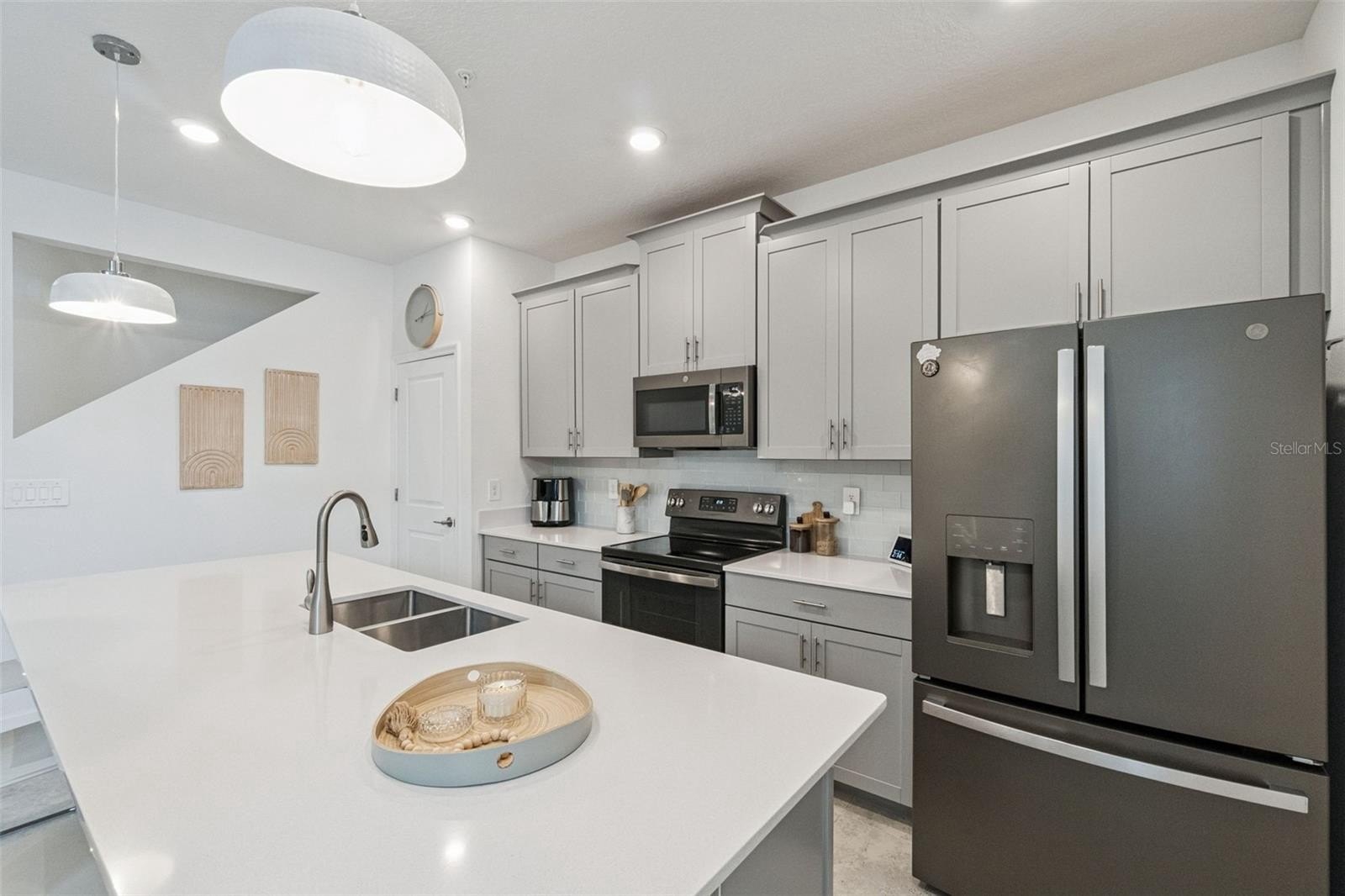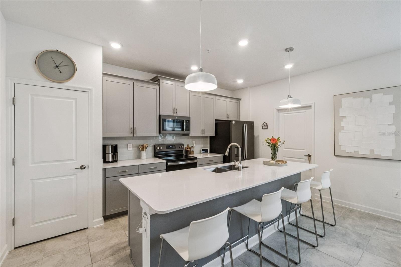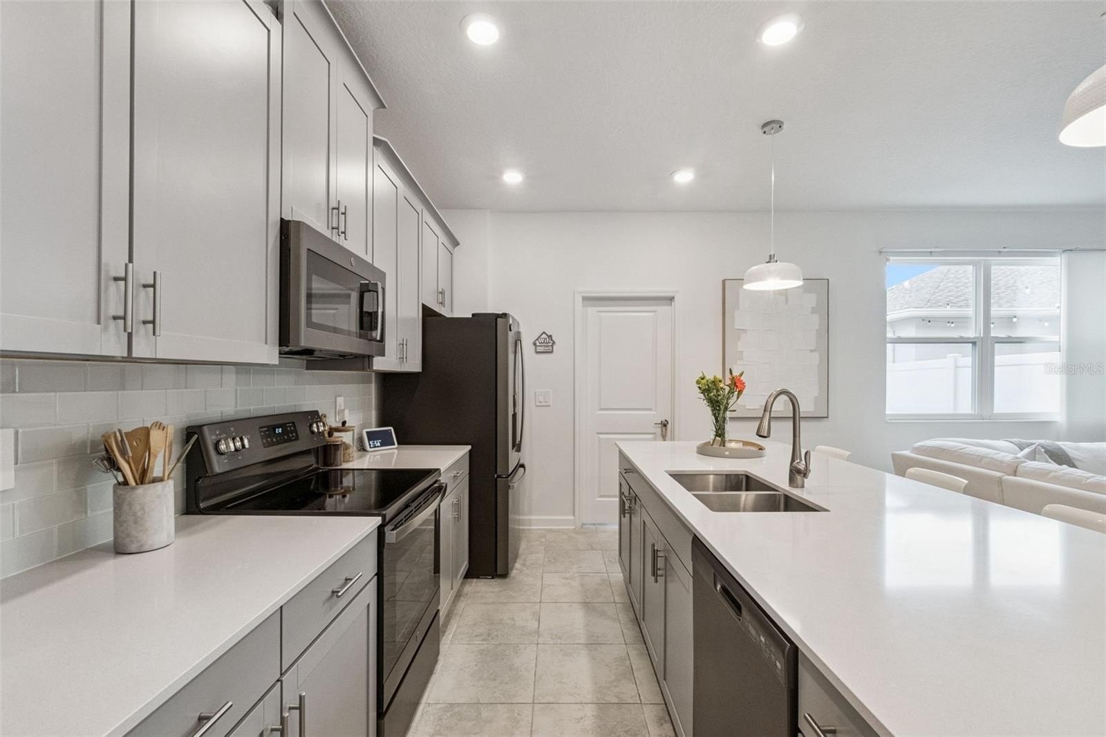 The kitchen features modern finishes and ample space to gather while staying connected to the heart of the home.