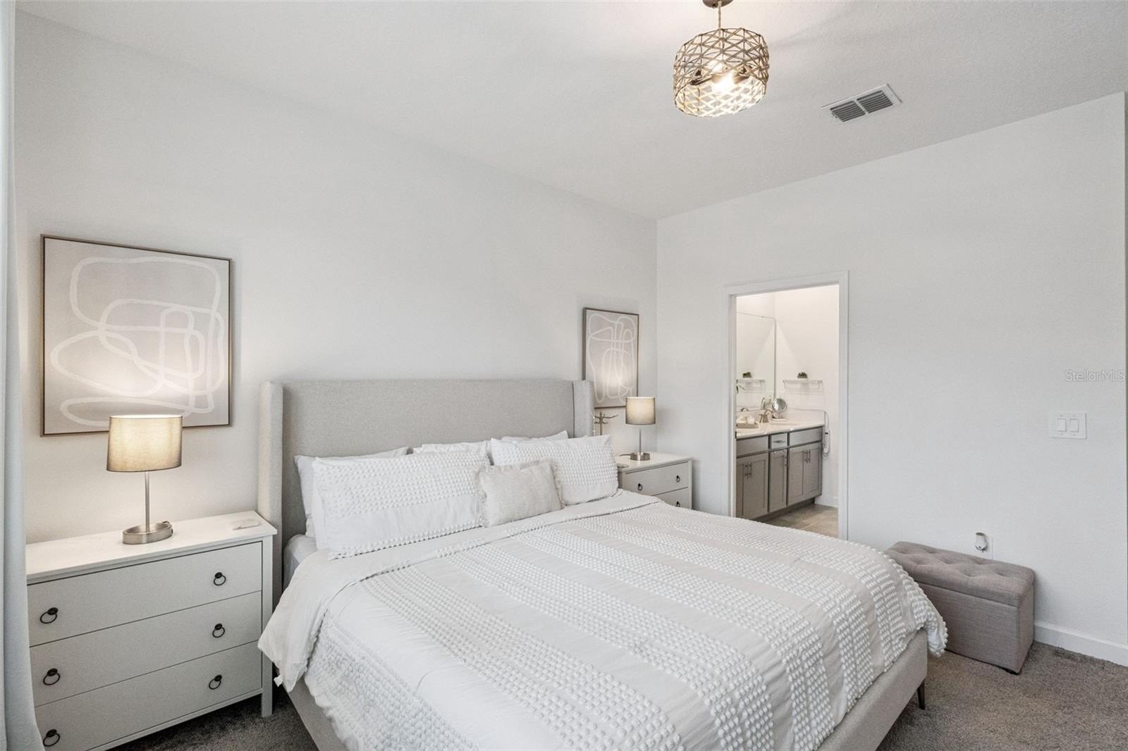 The primary bedroom is conveniently located on the first floor, offering privacy and convenience with a well-appointed ensuite bathroom.