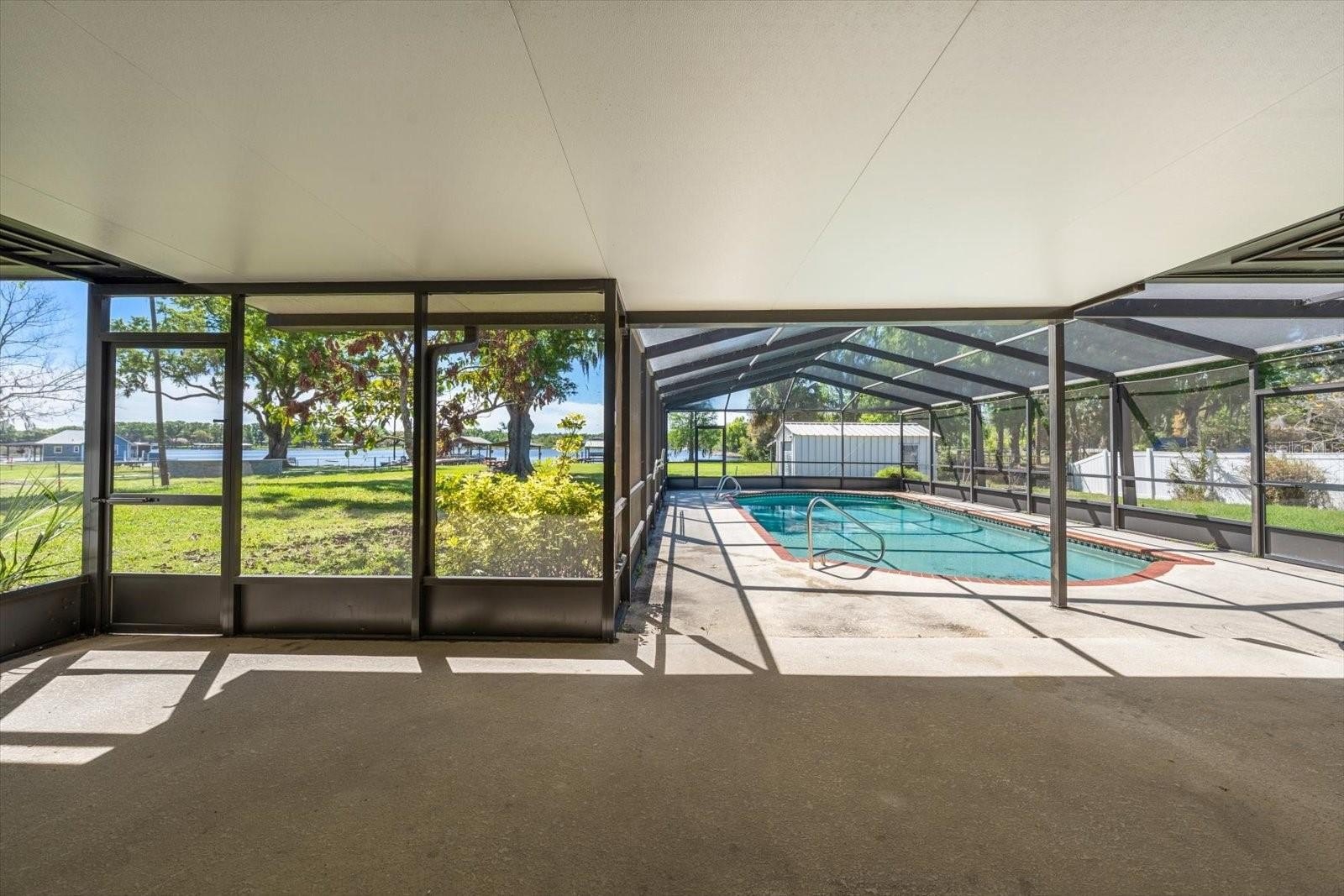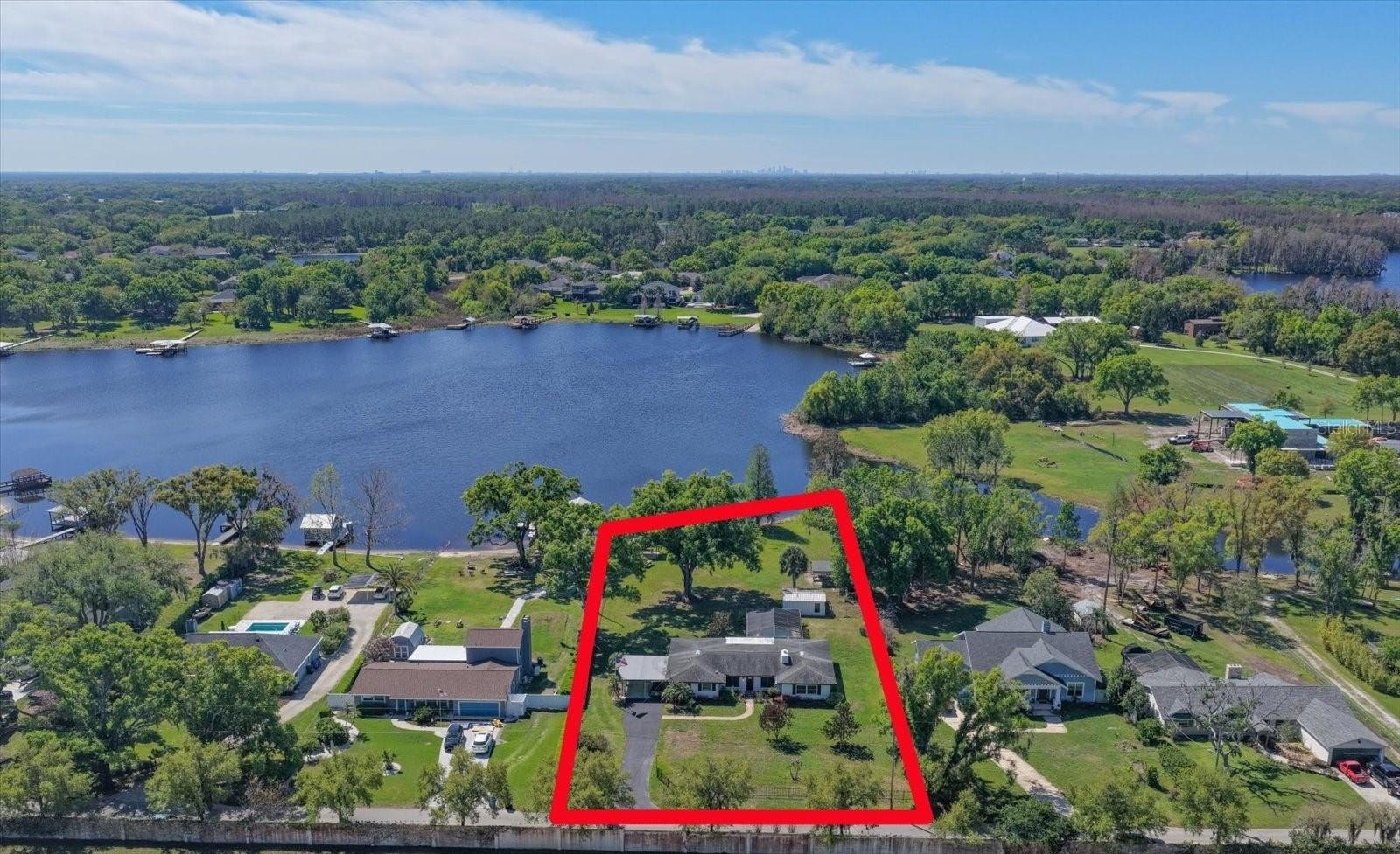 One or more photo(s) has been virtually staged. Lakefront Property on Hogs Lake in Lutz Florida an approximate 48-acre lake! Excellent opportunity to make this well maintained ranch style house has 3-bedrooms, 2-bathrooms, 2-car carport, screened enclosed pool, split bedroom floor plan with just about every room with views of the lake. For those rare cool nights you have a wood burning fireplace in the great room. According to Seller the house has impact windows and sliders, the pool deck and expansive lanai area is great for creating an additional living space that affords you the views of the lake. On the property are 2-open sheds, a shed, a boat port and deck on the lake that truly adds to the overall lake experience. The only way to appreciate this house and the lot is to go and see it, front of the property is walled from County Line Road which buffers the road noise leaving a tranquil and serene sounds of nature as you sit in the back to enjoy the lake. House is being sold AS IS for convenience of the Sellers.
