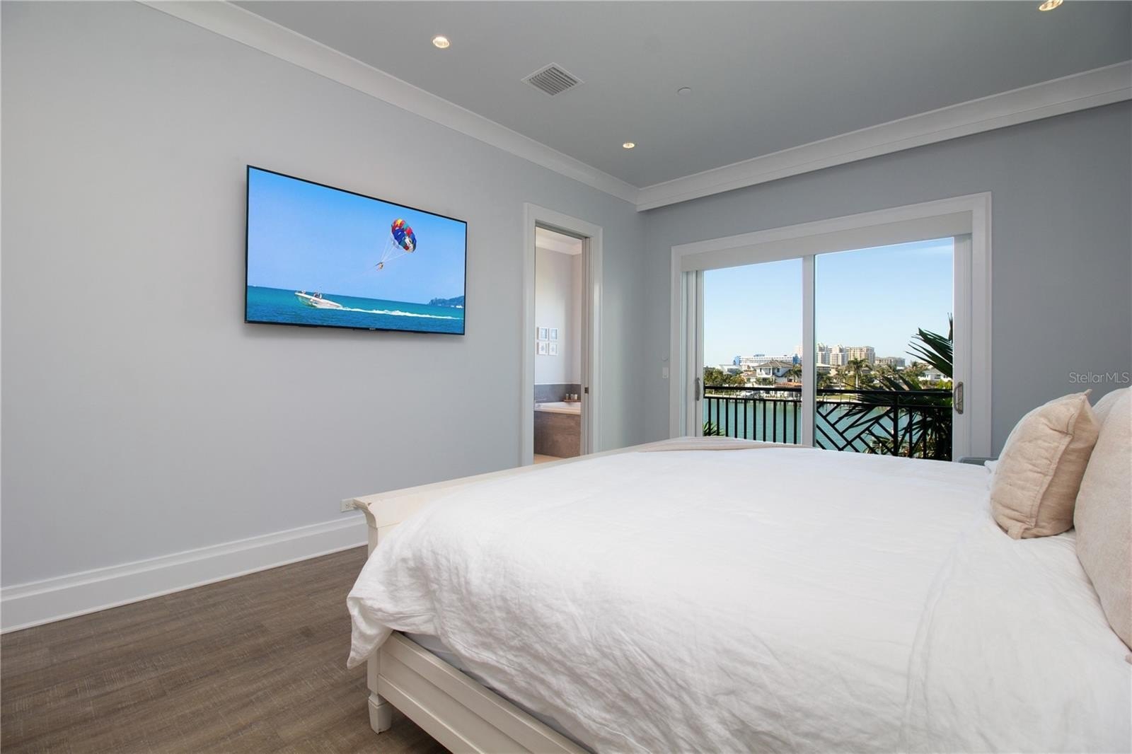 The third floor is highlighted by a luxurious primary suite with breathtaking water views and a private balcony. The spa-inspired ensuite bath includes a double quartz vanity, soaking tub, and separate glass-enclosed shower, along with a spacious custom walk-in closet. Two additional bedrooms and a full bath complete this level.