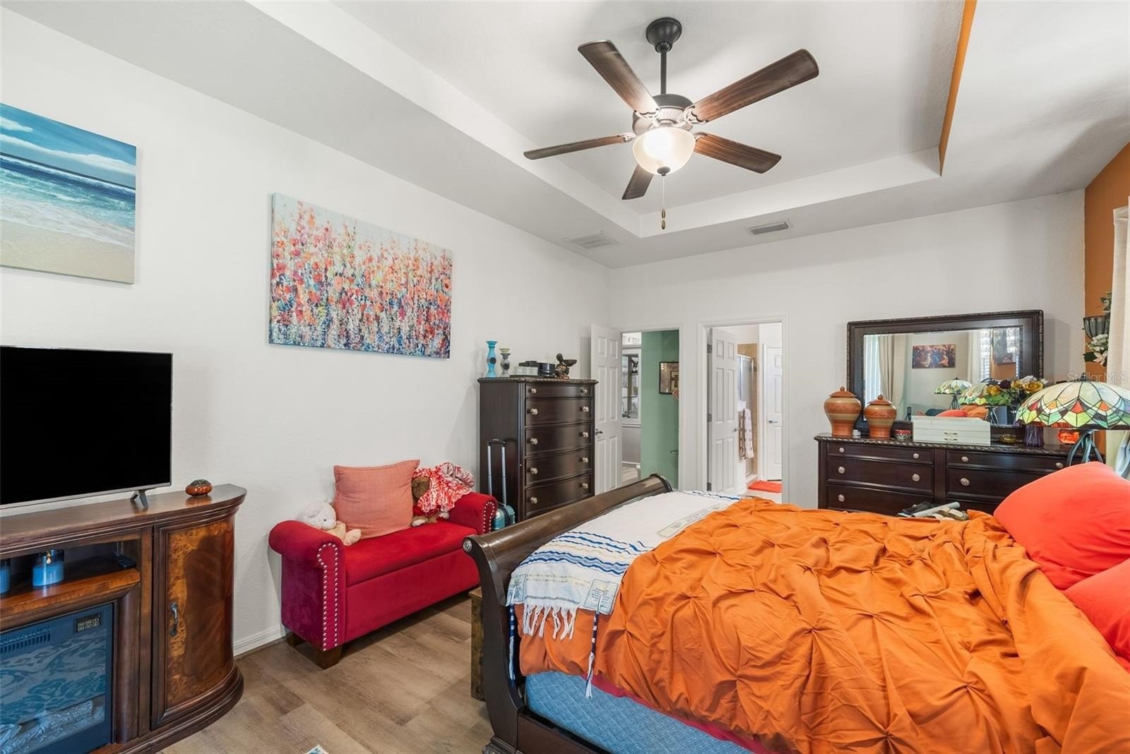 The interior has been thoughtfully upgraded with premium tile flooring, luxury vinyl, and a gourmet kitchen with stainless steel appliances. The primary suite is a true retreat, complete with a jetted spa tub, walk in shower, dual vanities, and expansive walk-in California closets.