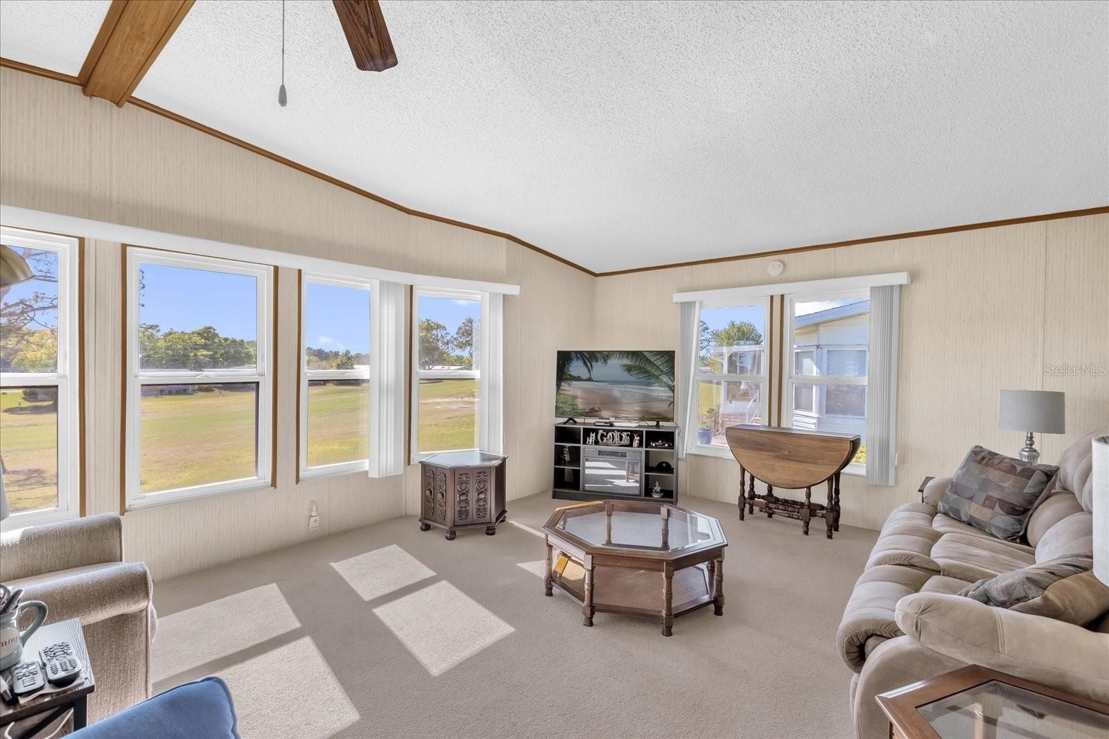 Gorgeous 2/2 On 18th Green/Fairway. Spectacular views from 27x18 Living Room and 12x17 Florida Room. Spacious floorplan ready for your personal touches. 2016 Membrane roof on Main Home plus 2021 Carport/Porch re-roof, 2014 A/C well-maintained. Newer windows in Living/Dining Area and vinyl all-season windows in the Florida Room. Desirable Double Carport and Golf Cart Garage/Storage. Tons of cabinet space in the Kitchen and Inside Laundry. Extra Refrigerator conveys. Located in Prestigious 55 Plus Zellwood Station Golfing Community. More amenities and activities than you can fit into your busy lifestyle. Close to shopping, restaurants, airports, beaches, places of worship, theme parks. 4 Pools, Pickleball, Tennis, Shuffleboard, Bingo, Trivia, Cornhole, Stained Glass, Ceramics, Exercise. Woodshop, RV Parking, FULL SERVICE RESTURANT/BAR ON SITE, 18 Hole Gold Course with Reduced Greens Fees for Shareholders.