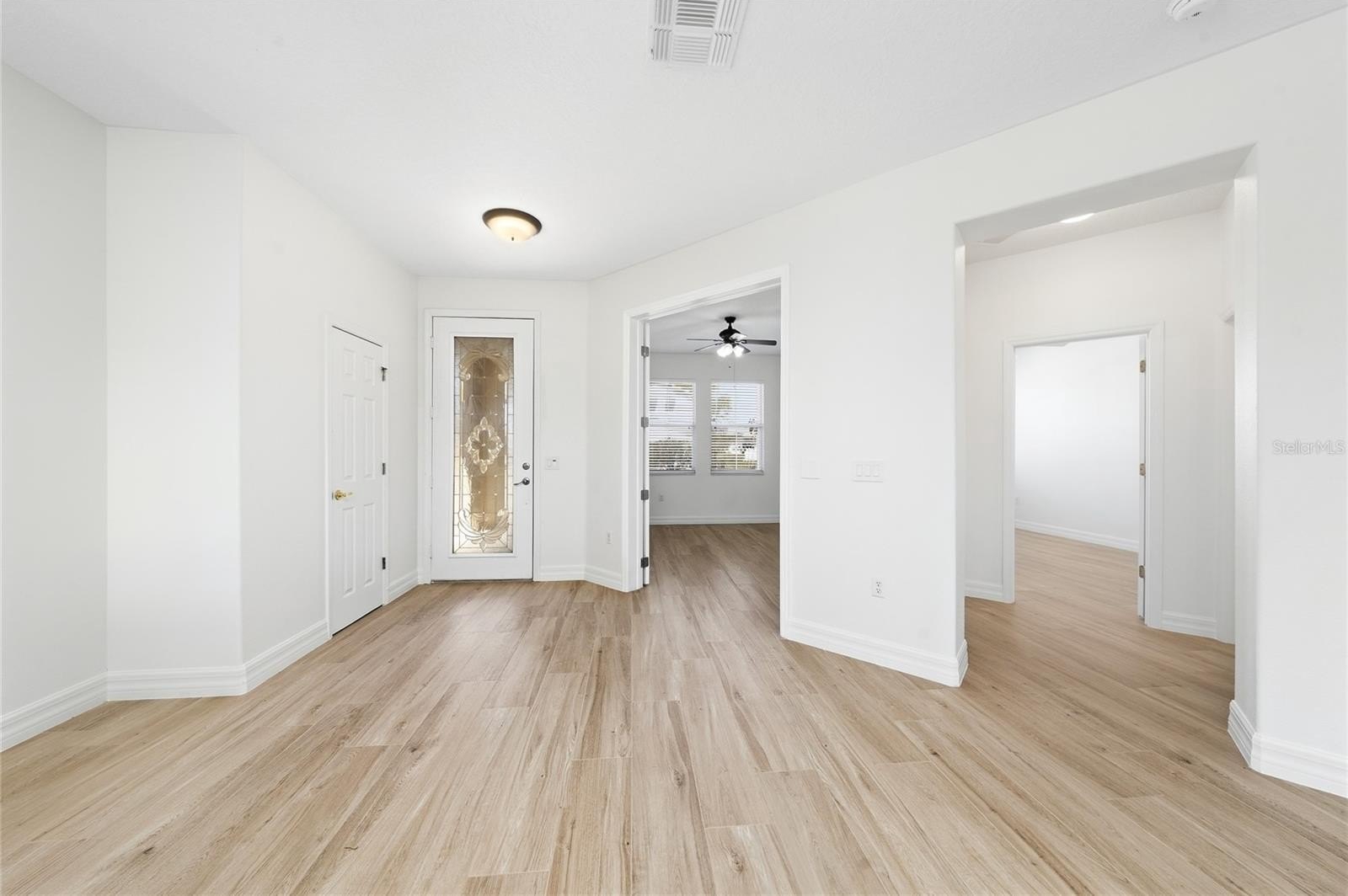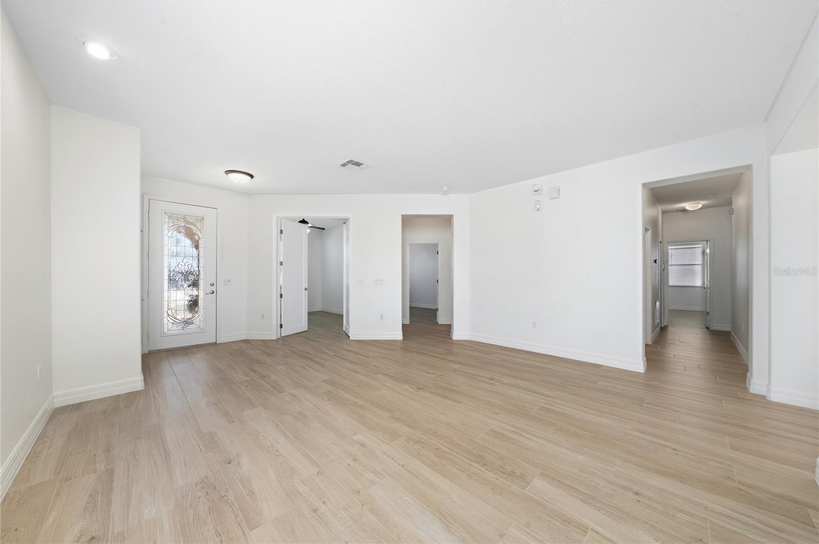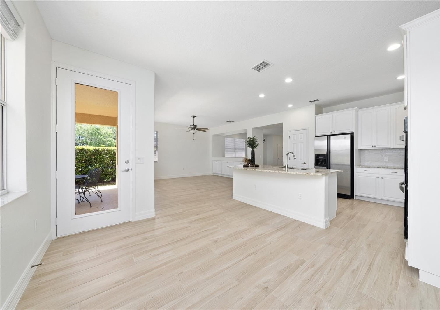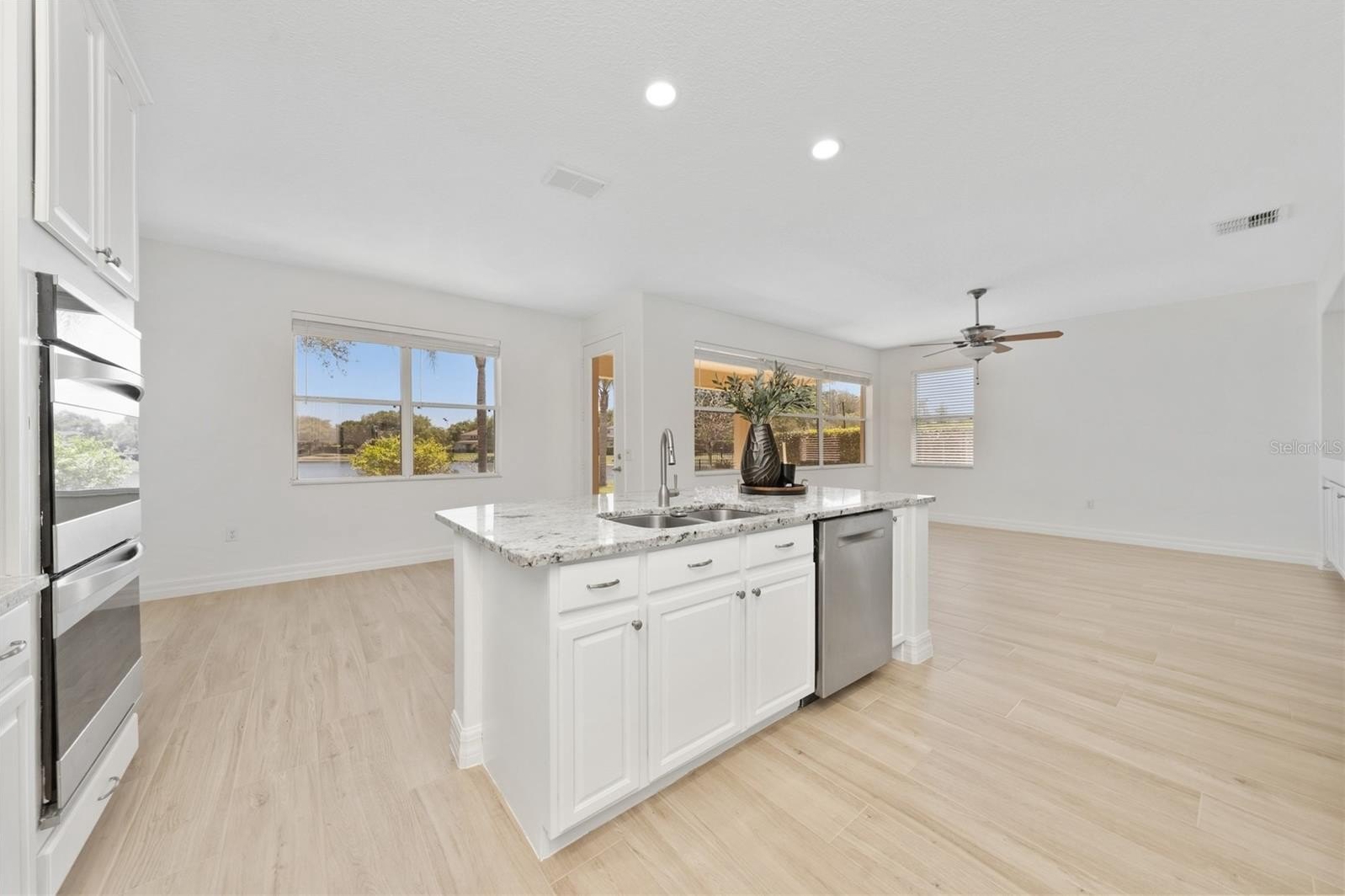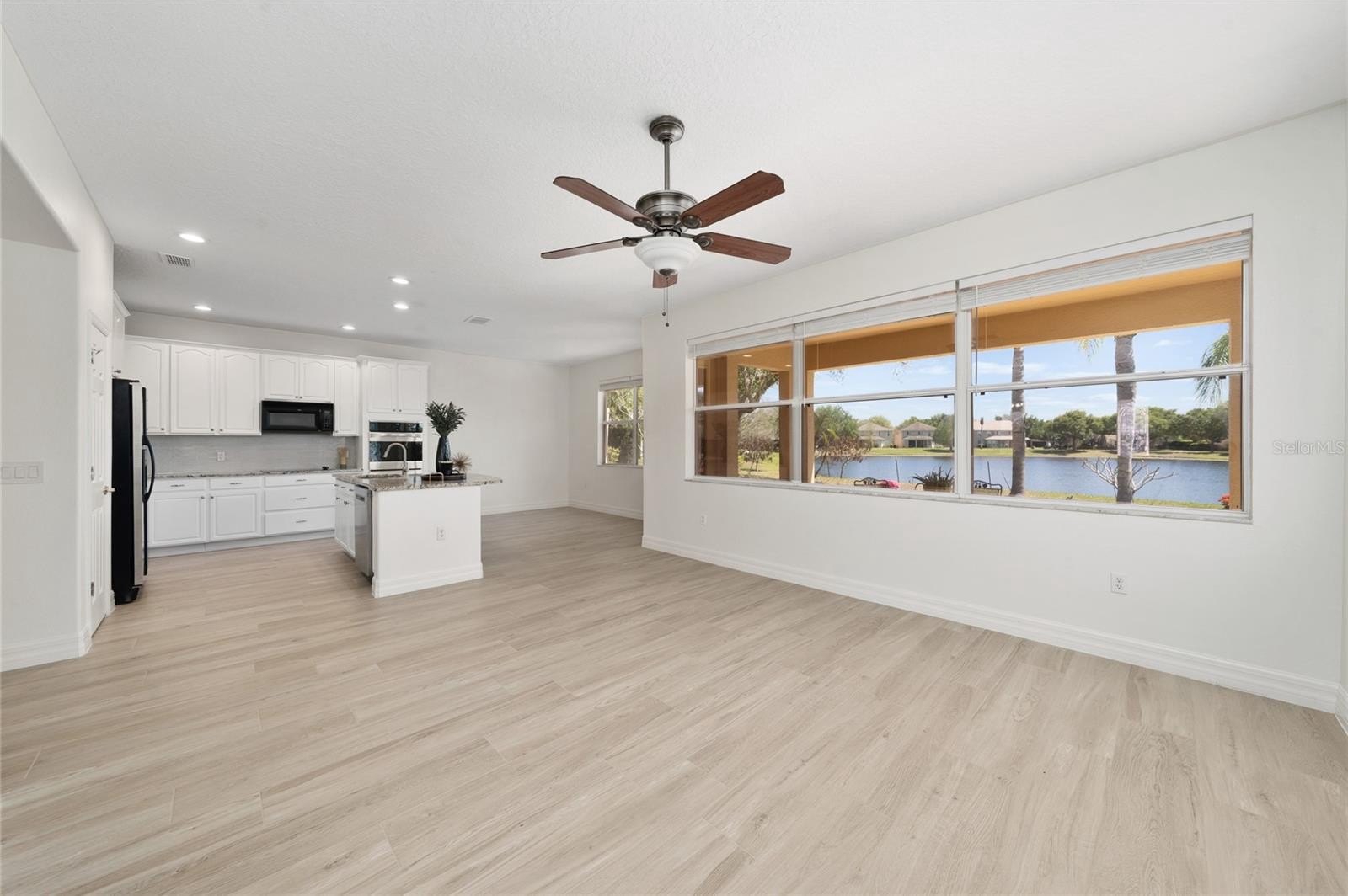 Exceptional residence in the prestigious gated community of Eagle Creek. This home features high-quality finishes and picturesque water views. The property offers a refined atmosphere, beginning with a landscaped entryway and a spacious living room. The modern kitchen is equipped with white cabinetry, granite countertops, a central island, and a double oven. Consistent tile flooring runs throughout the home, including each bedroom. For outdoor living, a large, covered porch overlooks the pond. Situated within an exclusive section of Eagle Creek characterized by oversized sites and custom homes, the community provides 24/7 guard-gated security and access to a premier golf course. Residents also enjoy a fitness center, swimming pool, playground, and walking trails. The location is ideally positioned near schools, shopping, dining, and major highways. A NEW Roof will be install soon.