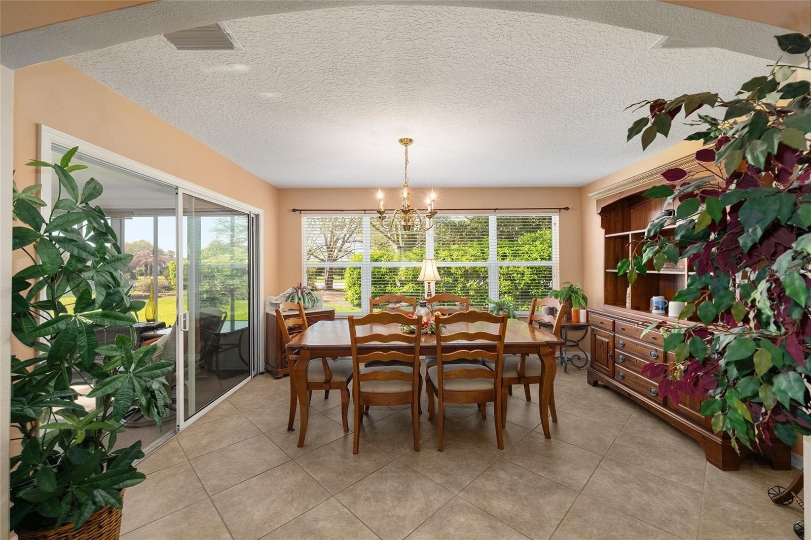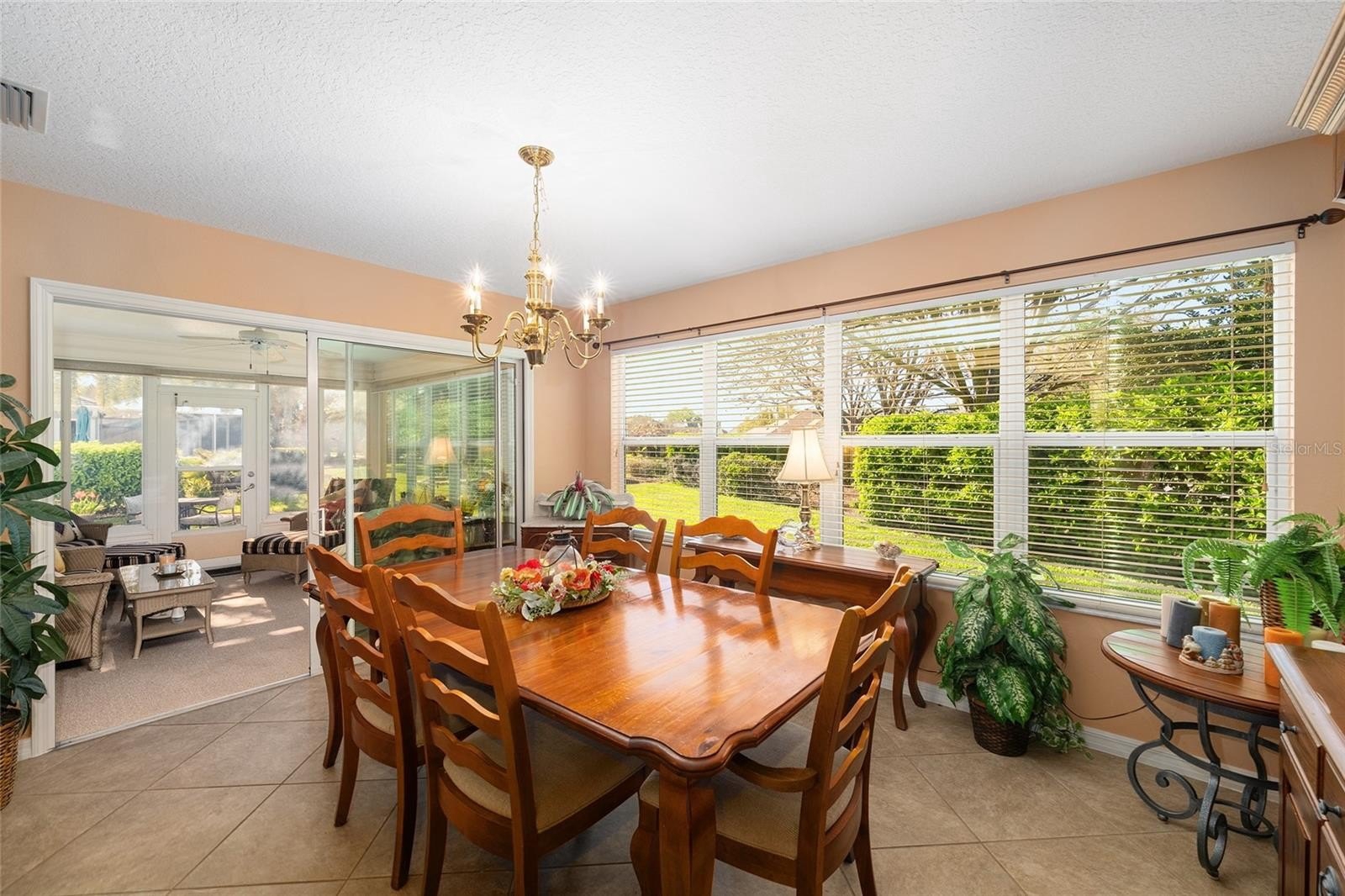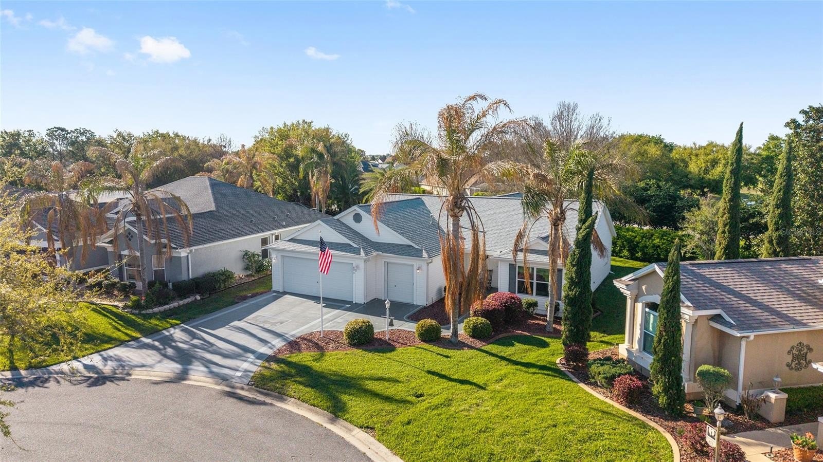 Welcome to The Villages in the desirable Bonnybrook area, ideally located near Lake Sumter Landing and conveniently situated between the 6’s. Tucked away on a cul-de-sac, this well-maintained 3 bedroom, 2 bath home offers 1,527 square feet of comfortable living space and comes TURNKEY for the new owner. The open floor plan with vaulted ceilings creates a light, bright, and spacious feel throughout. The kitchen features new stainless steel appliances, a gas stove, ample counter space, and is perfectly designed for both everyday living and entertaining. The split bedroom layout provides privacy, with a spacious primary suite offering two walk-in closets, dual sinks, a walk-in shower, and a private water closet. The guest wing includes two generously sized bedrooms and a guest bath. Relax in the enclosed lanai with great furnishings already in place, or step outside to the open patio for grilling and enjoying the Florida lifestyle. Laundry is easy in the indoor utility room with sink and storage. The spacious 2-car garage plus golf cart garage add extra convenience. Major updates include a new roof in 2024 and new HVAC in 2024. Located close to shopping, restaurants, recreation, and community pools, this home is a wonderful package in a fantastic location.