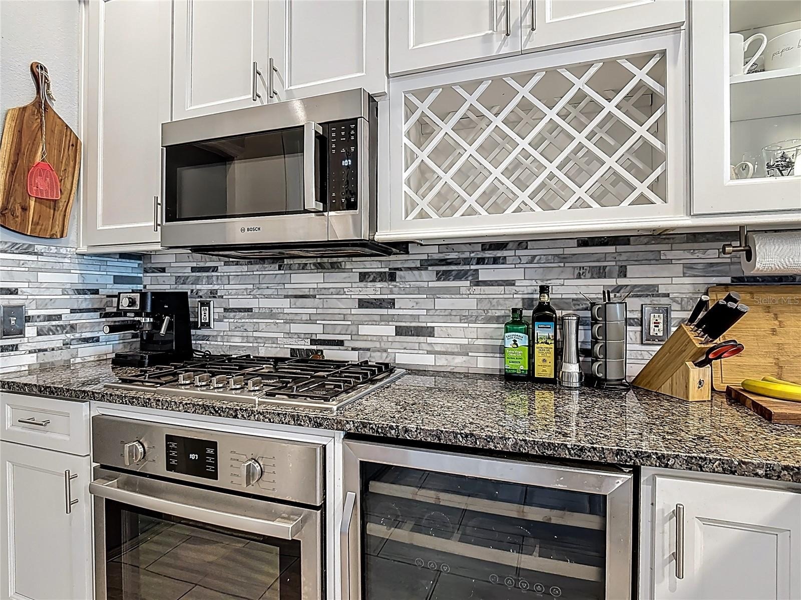 Enjoy modern ceramic tile and luxury vinyl plank flooring throughout—no carpet anywhere. The updated kitchen features tasteful white cabinetry, stainless steel appliances, granite countertops, and even a wine cooler, making it ideal for both everyday living and entertaining. Both bathrooms have also been tastefully updated.