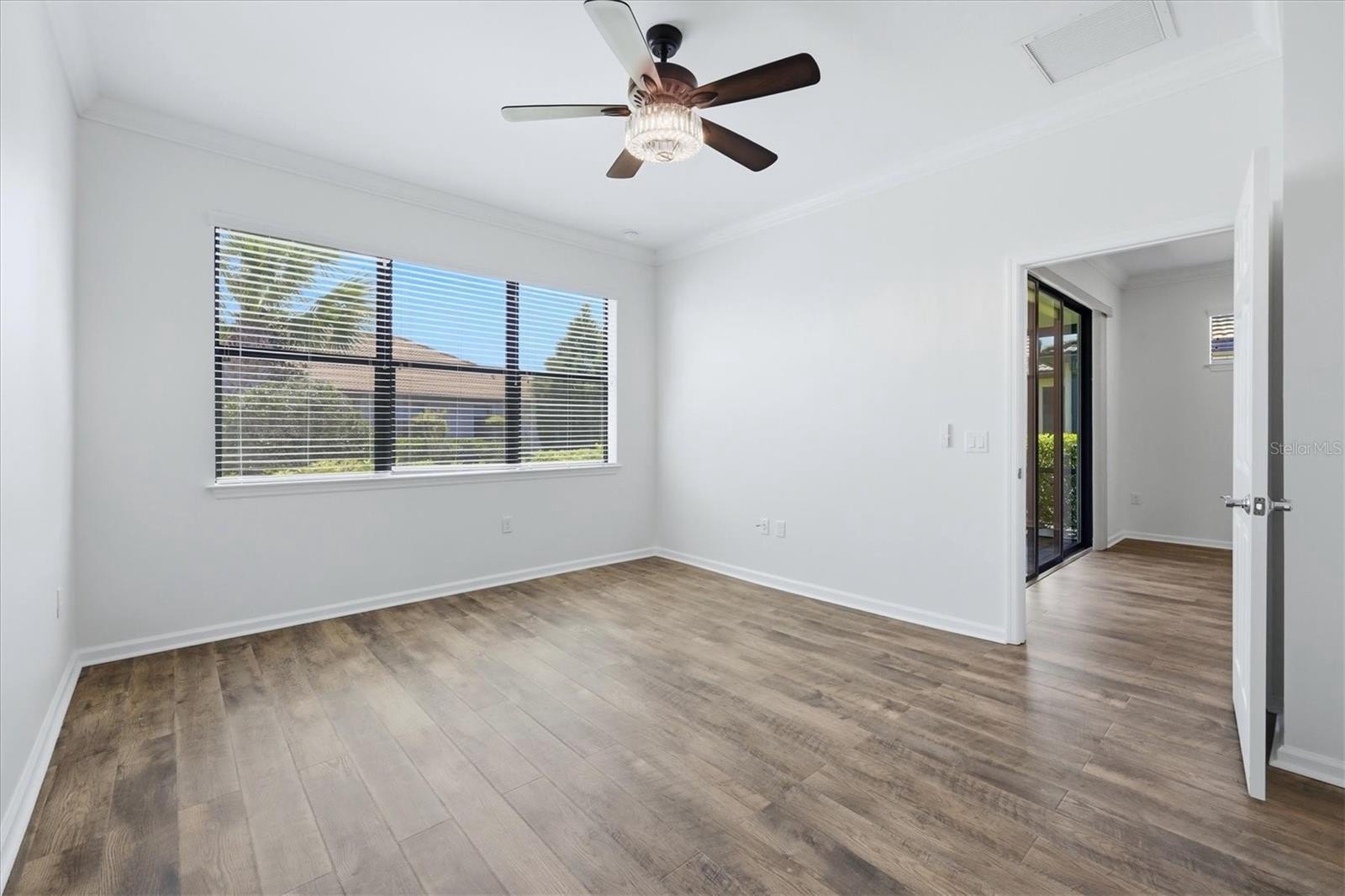 One or more photo(s) has been virtually staged. Welcome to one of the best-kept secrets in the premier 55+ Del Webb community of LAKEWOOD RANCH - where pristine condition, thoughtful design, and an unbeatable location come together in perfect harmony. Just a short stroll or golf cart ride to the amenity center, this beautifully maintained villa offers the ideal blend of privacy, comfort, and connection. This villa offers a flexible floor plan with 2 bedrooms plus a den, complete with solid French doors and a generous alcove-ideal as a third bedroom, office, or hobby space. From the moment you arrive, the curb appeal sets the tone with a paver driveway and walkway leading to a charming gated courtyard - and an inviting and private entry that feels both elegant and welcoming. Inside, the home shines with immaculate, like-new condition and newer waterproof laminate flooring flowing seamlessly throughout. The open-concept design features an extended kitchen, dining, and living space - perfectly arranged for easy everyday living and effortless entertaining. The kitchen overlooks the entire main living area, keeping everything connected and bright. Sliding glass doors lead to a brick paver, screened-in lanai, offering a peaceful outdoor retreat with a glimpse of the lake and a sense of privacy. The primary suite, privately situated at the rear of the home, offers a quiet retreat with an en-suite bath featuring dual vanities, granite countertops, a glass-enclosed shower with dual showerheads, and a spacious walk-in closet. Guests will appreciate the secondary bedroom and full bath located at the front of the home, ideal for visiting family and friends. Additional highlights include: Generac full house generator, Culligan water purification and softener systems, hurricane protection panels, freshly painted garage floor. exceptionally clean, move-in-ready condition. Residents of Del Webb Lakewood Ranch enjoy a vibrant lifestyle with resort-style amenities including a stunning pool, state-of-the-art fitness center, pickleball and tennis, social clubs, dining, and endless opportunities to connect or simply relax. All of this within Lakewood Ranch, the nation's top-ranked multi-generational community, known for its lifestyle, beauty, and convenience. Just a short ride from the renowned UTC shopping and dining complex, downtown Sarasota, and her award-winning beaches... Welcome home!
