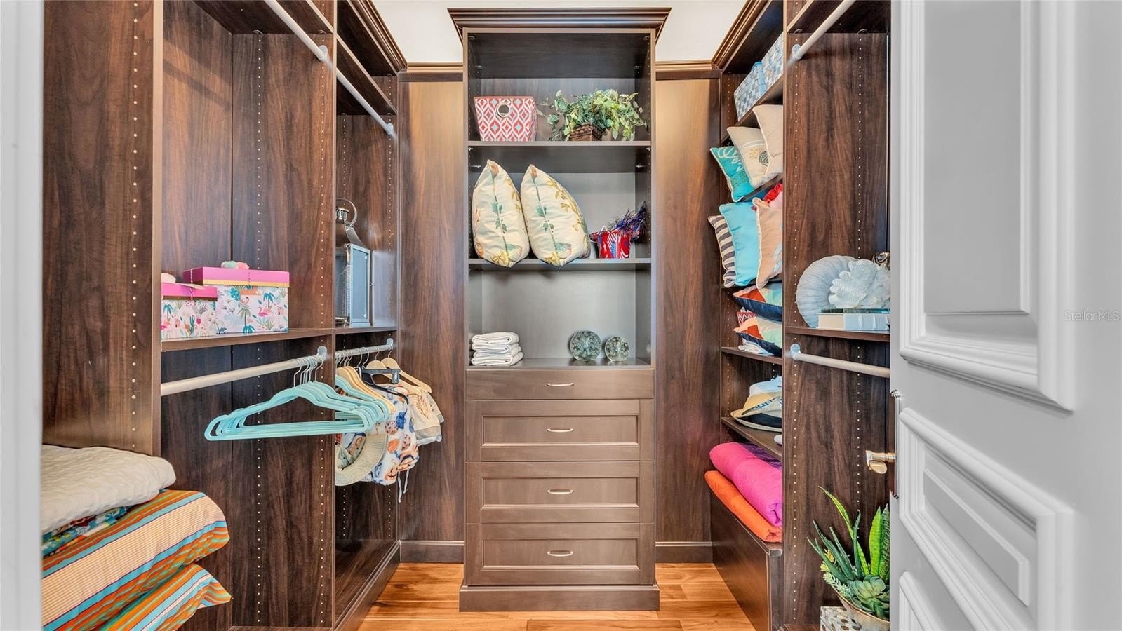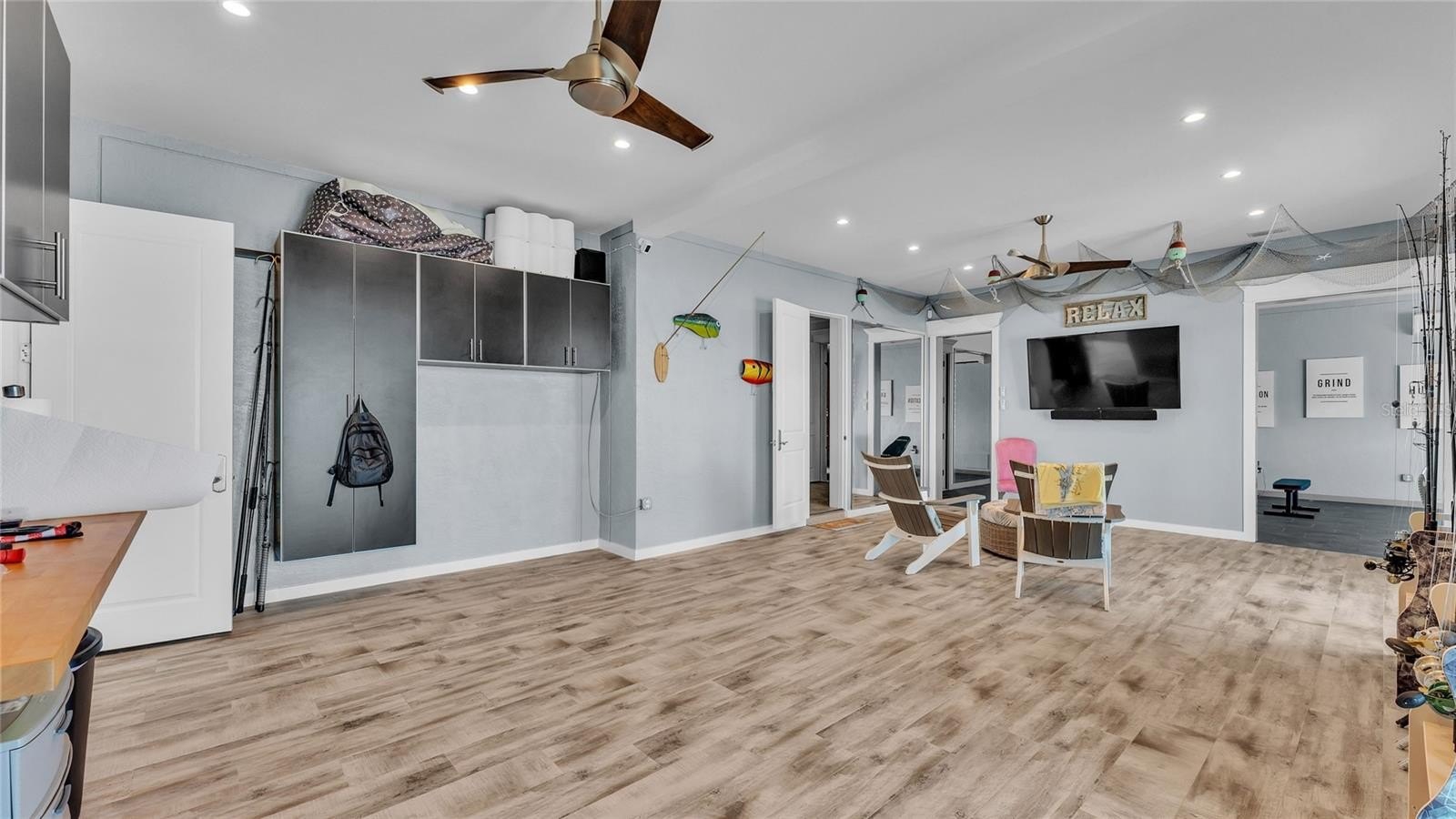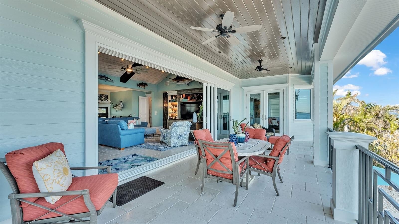Built to the highest standards, the exterior boasts a commercial-grade 24-gauge standing seam metal roof, PGT impact windows and doors, second-floor block construction, poured concrete porches, a Cantera entry door, and Icynene attic insulation. The spacious garage includes insulated doors and durable epoxy flooring.