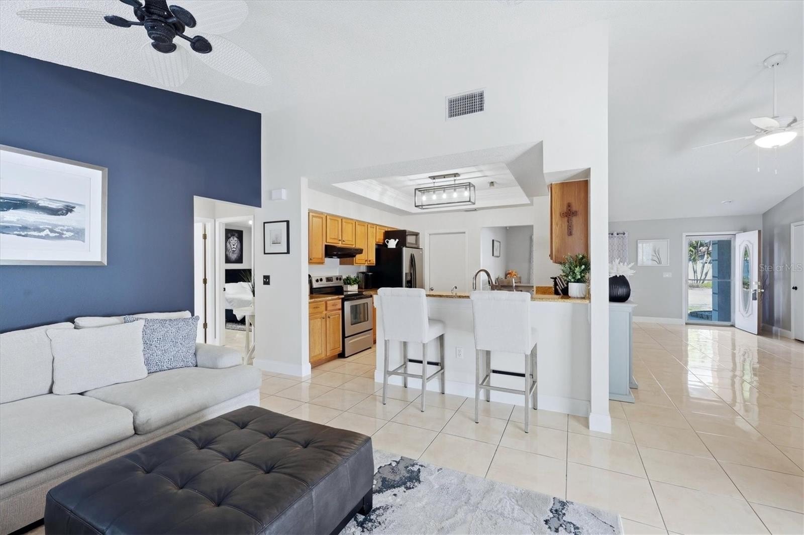 From the moment you step inside, you’ll notice the bright, open feel created by the vaulted ceilings and well-designed split floor plan, offering both comfort and privacy. The updated kitchen features granite countertops, stainless steel appliances, and opens to the main living space—perfect for everyday living and entertaining.