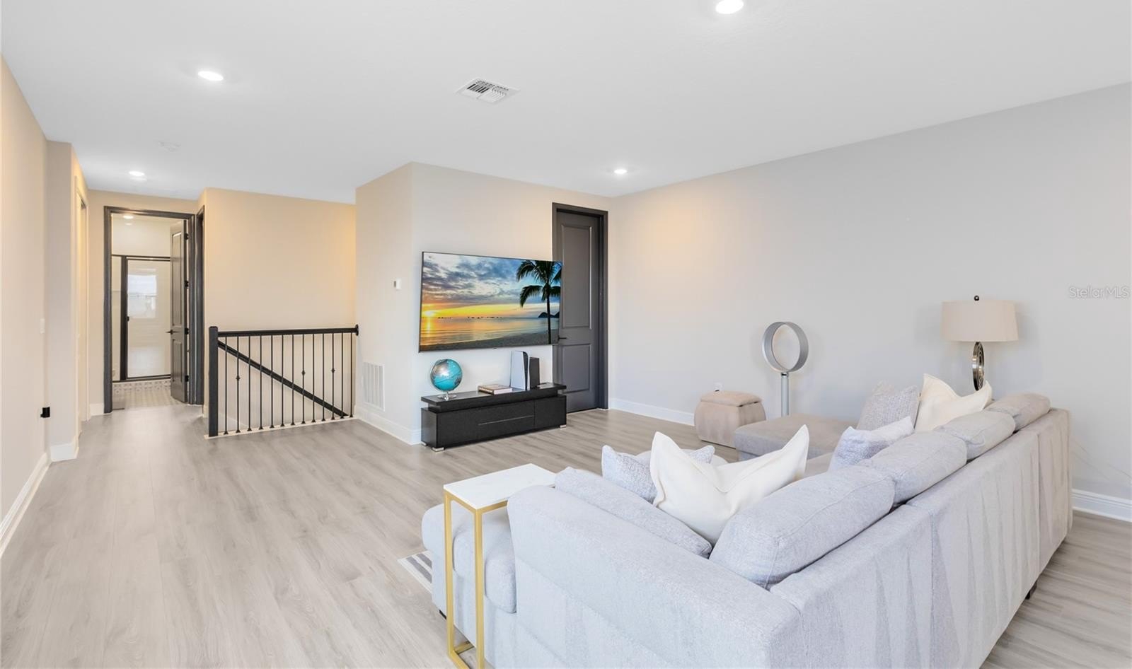 Upstairs, a spacious loft provides a secondary living or media space, along with three additional bedrooms and two full baths, creating plenty of room for family and guests.