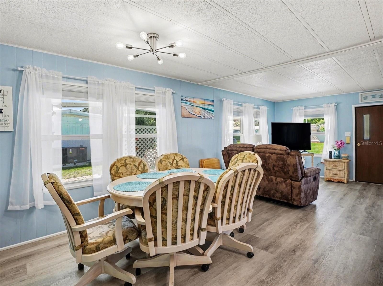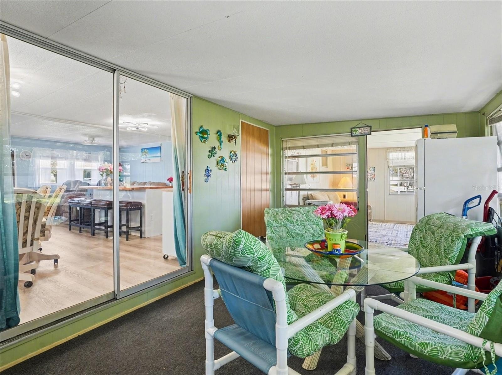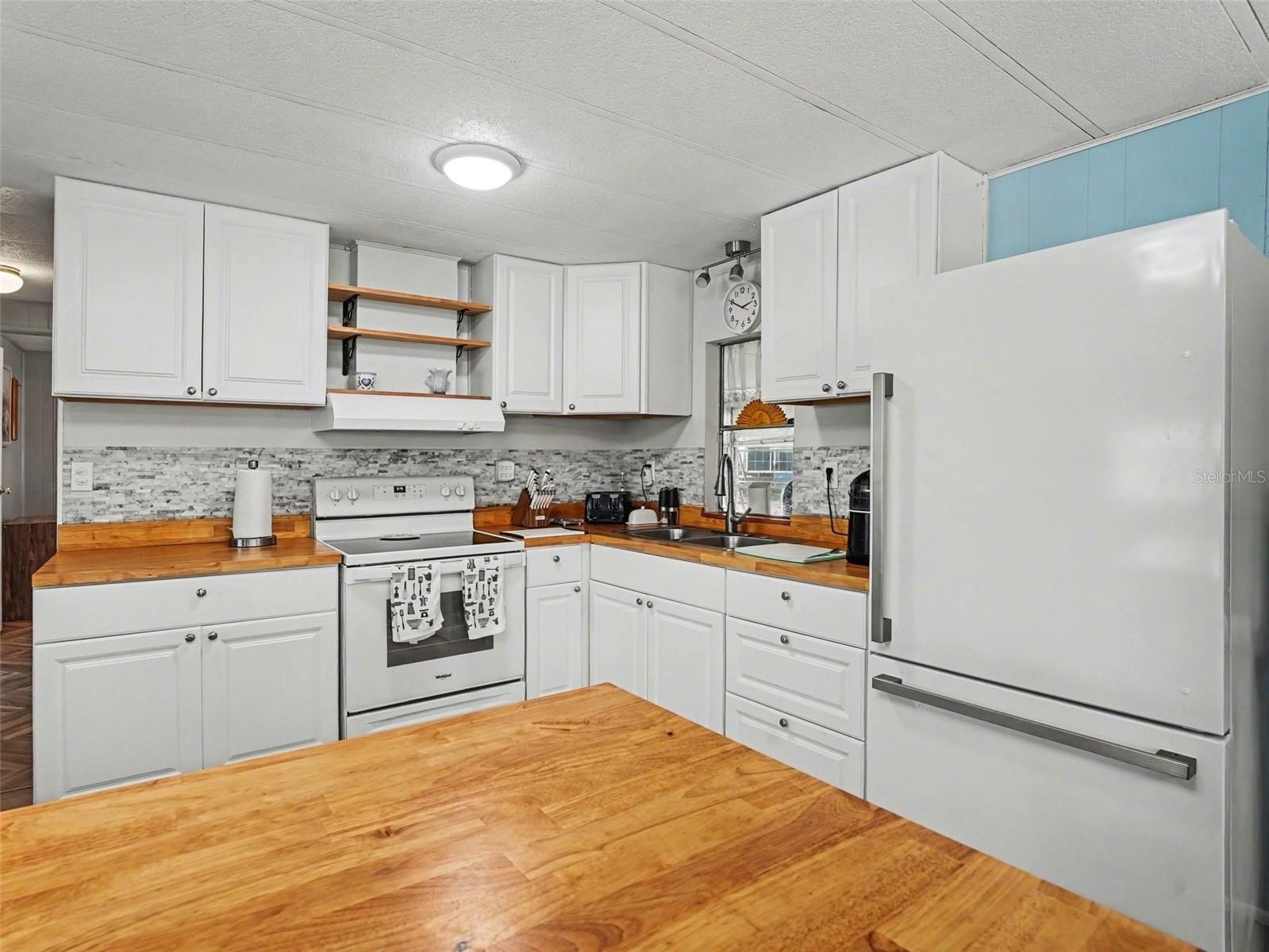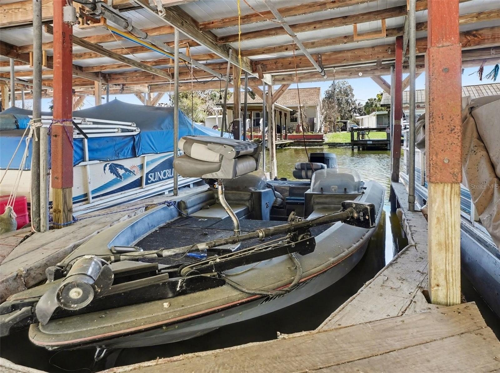 Located in a welcoming 55+ community in Tavares, this beautifully updated and truly move-in ready home is being sold fully furnished and fully equipped—and this goes far beyond furniture, as the sale also includes a boat, trailer, and golf cart, making it a true turnkey Florida lifestyle package. Remodeled in 2024, the home features new windows installed in 2025, new laminate flooring with reinforced subflooring for added stability, butcher block countertops, all new appliances, and fresh interior paint. Both bathrooms have been tastefully updated with walk-in showers, new shower inserts, and new vanities for easy, comfortable living. The primary bedroom offers three closets, while the guest bedroom includes double closets and built-in drawers, providing ample storage throughout. Additional living space includes a bright sunroom and two Florida room areas, perfect for relaxing or entertaining, plus a second refrigerator (approximately 3 years old) located in the Florida room for added convenience. The home also includes a covered carport with a laundry area in the attached shed. Major updates include a roof replaced in 2021 and a newer water heater. This property stands out with its included lifestyle extras: a 19-foot 1988 Bass Tracker boat with a 150 HP Evinrude, kept in the water year-round in a slip (annual fee $382), with trailer storage available on the east side for $75 each year; a 4-passenger 2008 golf cart with full enclosure and plug-in charging; and two bicycles, all included in the sale. The low HOA fee of $50 each month, affordable utilities costs, and availability of RV and additional storage within the community make this an ideal low-maintenance option. This is a rare opportunity to own a fully furnished, well-updated home with boating and recreational amenities included, offering a seamless transition into relaxed Florida living.