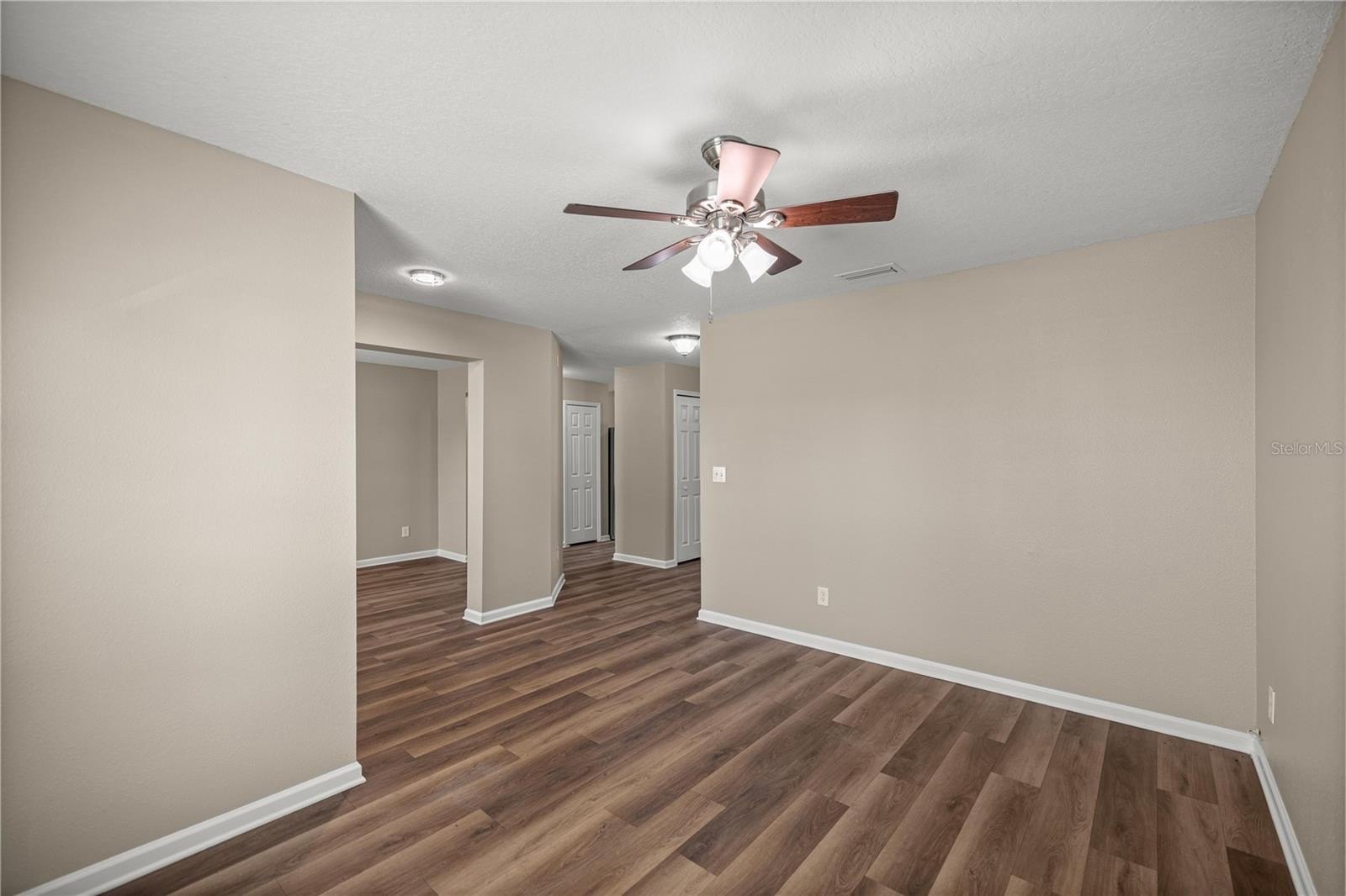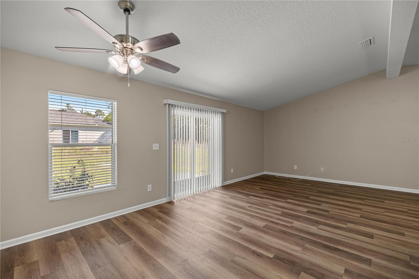 Impressively spacious, well maintained 4 bedroom, 2 bath home with bonus room, formal dining and breakfast dining area with over 2,100 sq ft of living space under heat and air. Concrete Block and Stucco construction. When you walk through the front door, you will find a formal dining room on the left, and a bonus sitting room on the right, just past that you will find the coat closet and the inside laundry room and from there the home really opens up - you will enter a huge open concept living room, kitchen and another dining area/breakfast area. From the living room you will find the sliders that lead out to the grilling patio. Off the living room you will find an expansive primary suite that is 20x14 feet, not including the dual walk in closets (about 85 sq ft total), and a very large ensuite bathroom featuring dual sinks, a seated vanity area, wrap around mirrors, a new step in shower, PLUS a large soaking tub. On the other side of this split bedroom plan home you will find two bedrooms near the front side of the house with a bathroom between them featuring a tub/shower combo and in the back of the home off the kitchen you will find the fourth bedroom. Bedrooms 2, 3 and 4 all feature reach in closets. All bedrooms have upgraded ceiling fans. In the kitchen you will find plenty of all wood cabinetry, a closet pantry, NEW Whirlpool Stainless Appliances to include: glass top stove, built-in microwave, dishwasher and refrigerator with ice/water in the door and a large wrap around bar height area countertop. Seamless LVP wood look flooring throughout the home with no thresholds for easy maintenance and cleaning that is only 2 years old. NEW Windows throughout including the sliding doors, NEW Blinds throughout, Fresh Paint, NEW Water Heater, Roof is August of 2024. A/C has received yearly maintenance. Custom removable Stainless Steel Hurricane Shutters included as well. 20x20 2 Car Garage with Garage Door Opener. Home is a short drive to the new Wal-Mart and Publix that are going in on 484, Unit 10 in North Marion Oaks gives you easy access to both Hwy 200 or CR 484.