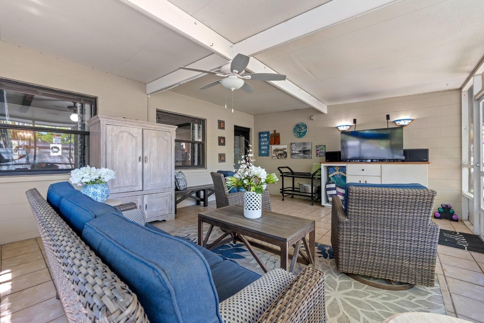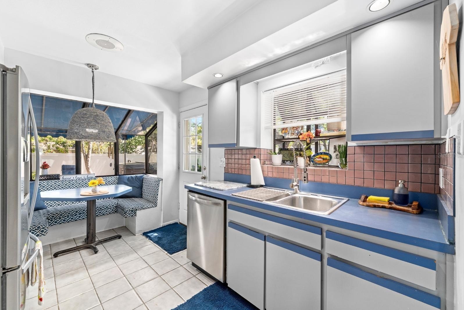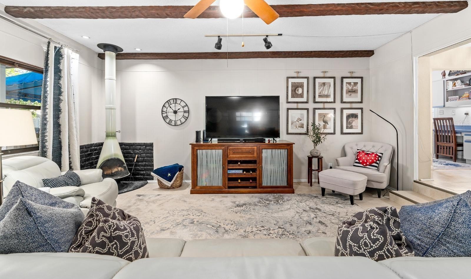 Built in 1963, this well-maintained block construction home does not require flood insurance. It features two bedrooms, two bathrooms, and a dedicated office area. The spacious screened porch boasts a structural insulated panel roof, and the newly designed backyard includes decking, pavers, and a new vinyl fence. The galley kitchen offers a cozy breakfast nook with peaceful views of the backyard, while the large sunken great room is perfect for entertaining guests. Additionally, there is a workshop/storage room at the back of the home.