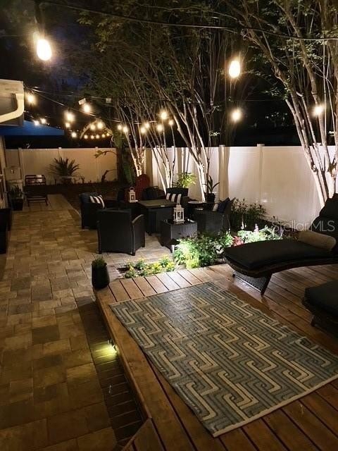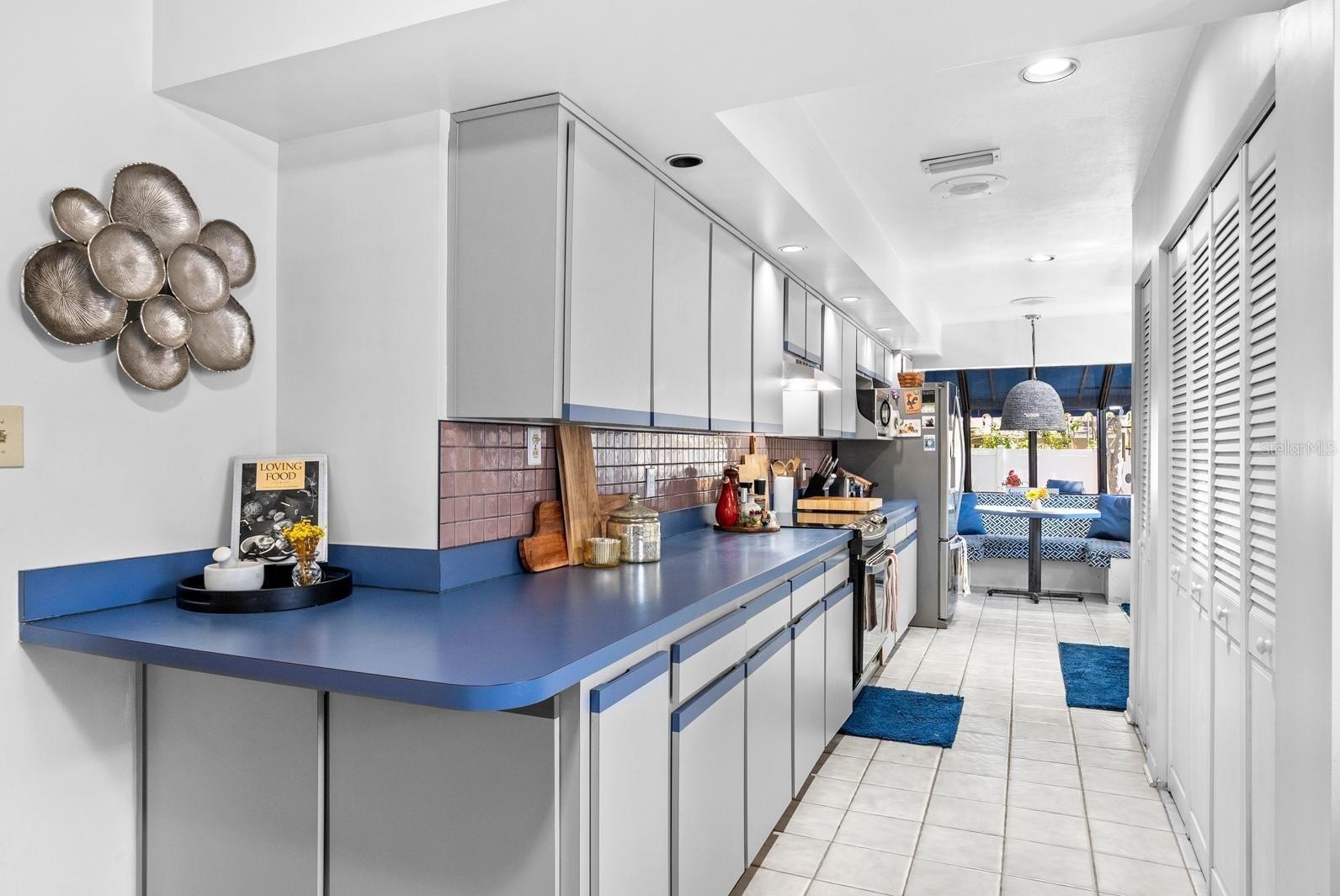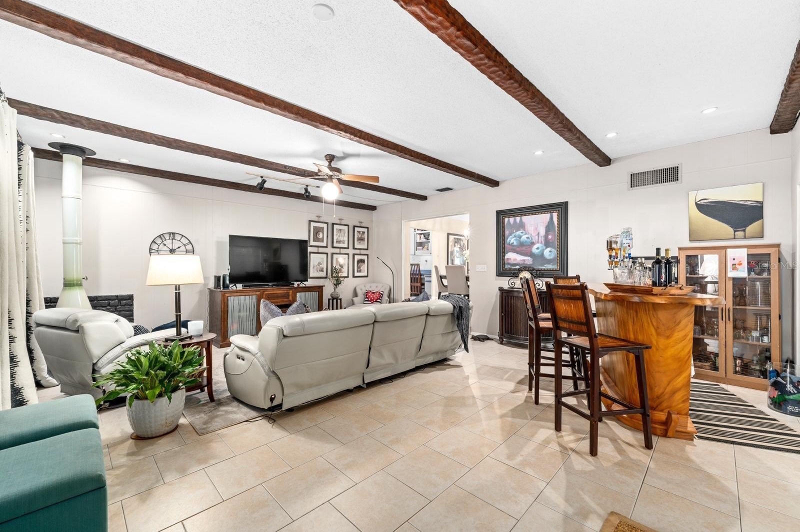 Built in 1963, this well-maintained block construction home does not require flood insurance. It features two bedrooms, two bathrooms, and a dedicated office area. The spacious screened porch boasts a structural insulated panel roof, and the newly designed backyard includes decking, pavers, and a new vinyl fence. The galley kitchen offers a cozy breakfast nook with peaceful views of the backyard, while the large sunken great room is perfect for entertaining guests. Additionally, there is a workshop/storage room at the back of the home.