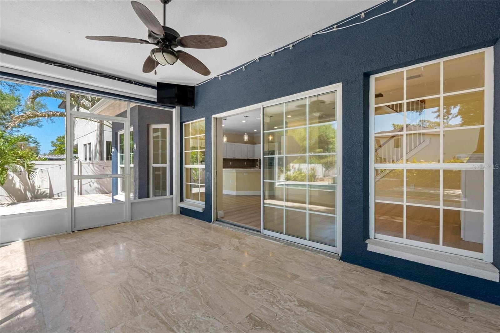 re-screened lanai with motorized, hurricane-resistant Kevlar screens, the space offers